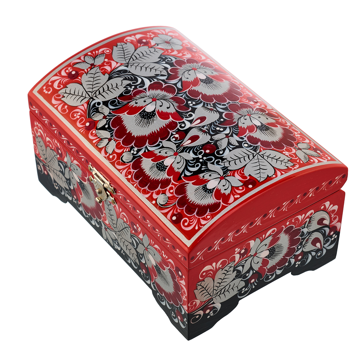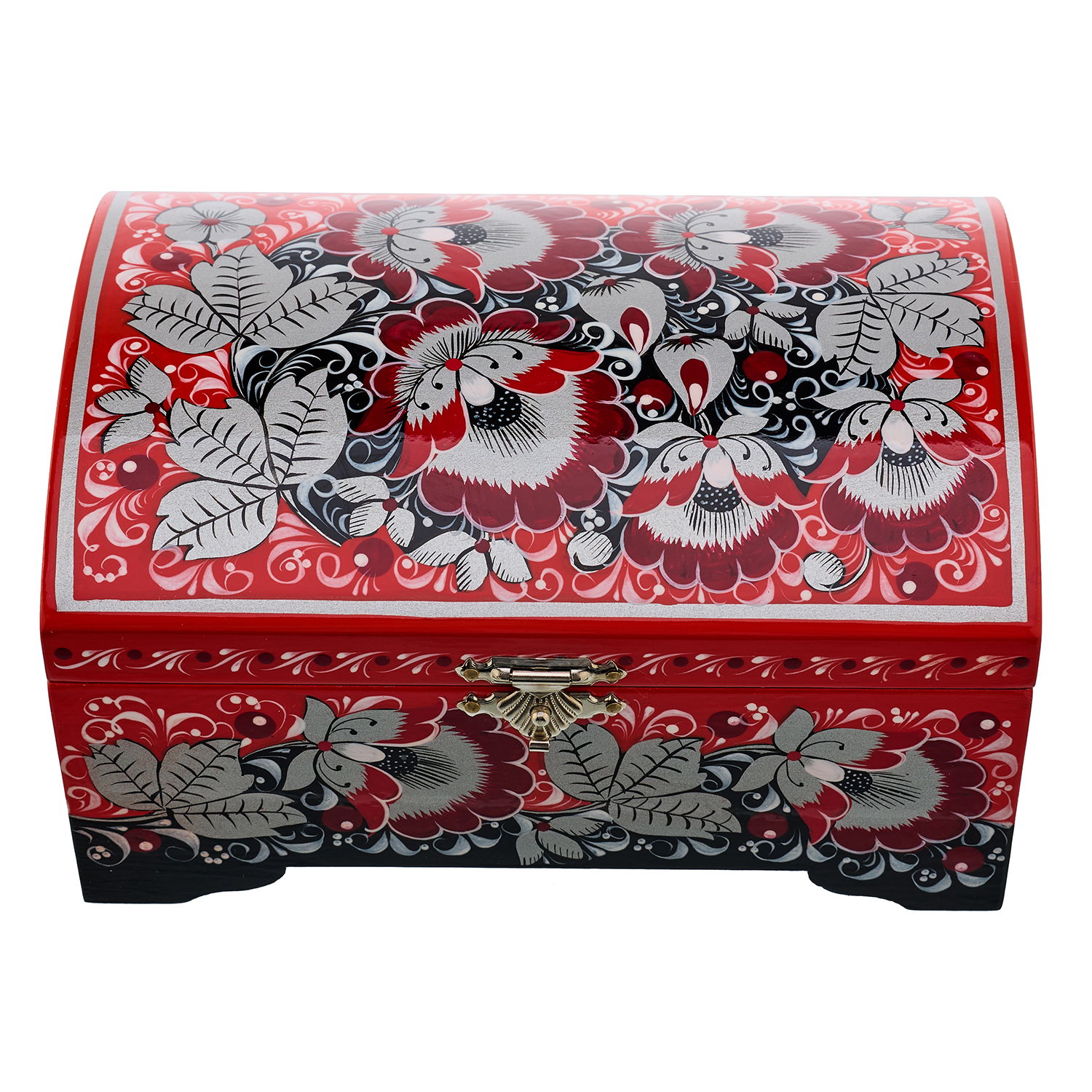 Шкатулка-сундучок "Цветы". Хохлома