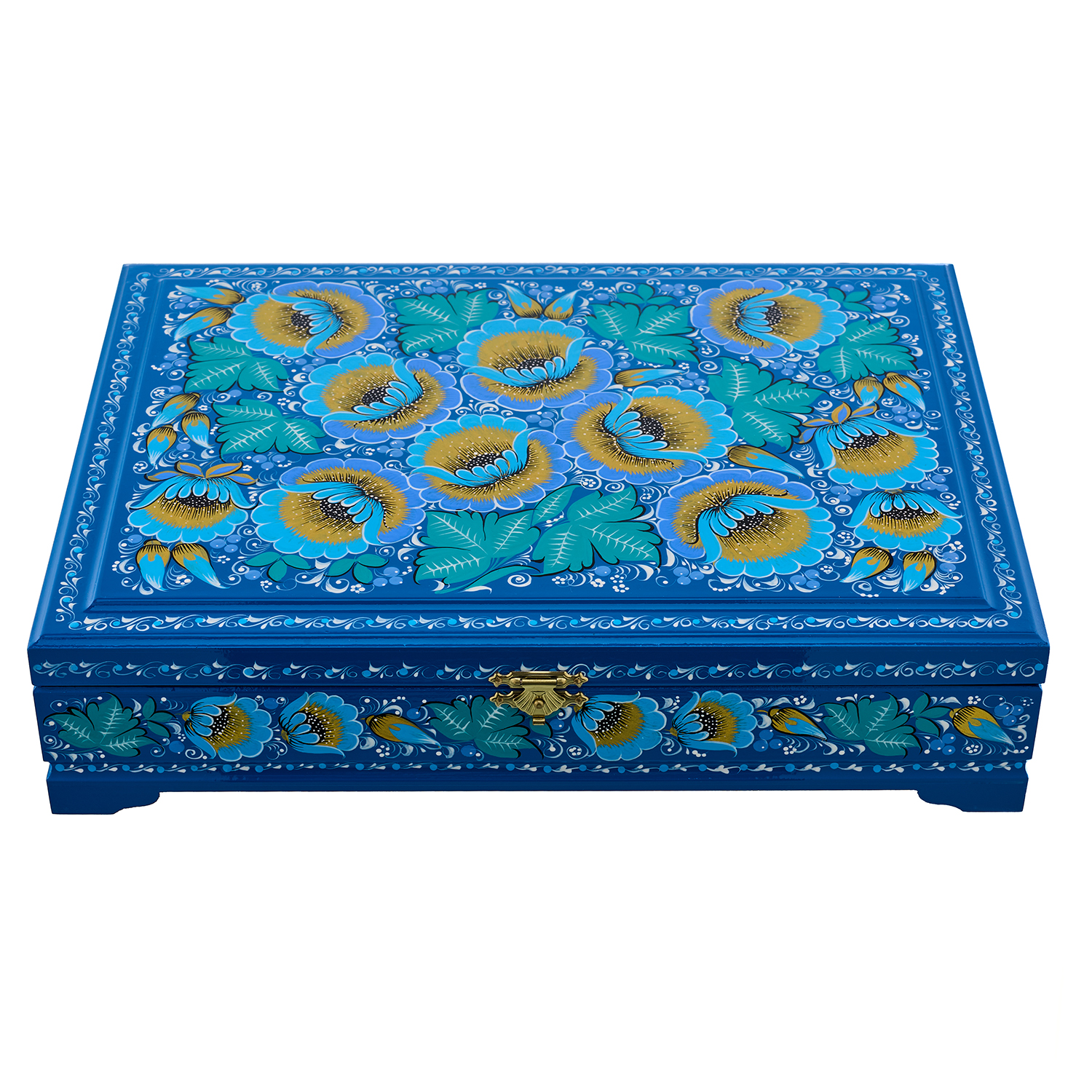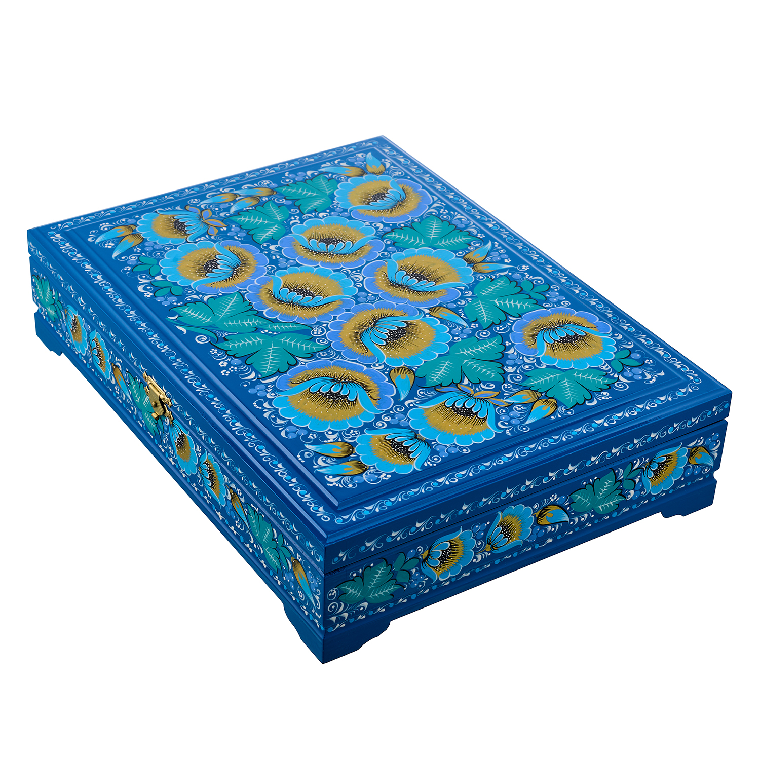 Русские подарки и сувениры → Хохлома → Шкатулки Хохлома → Шкатулка для документов А4 "Цветы". Хохлома