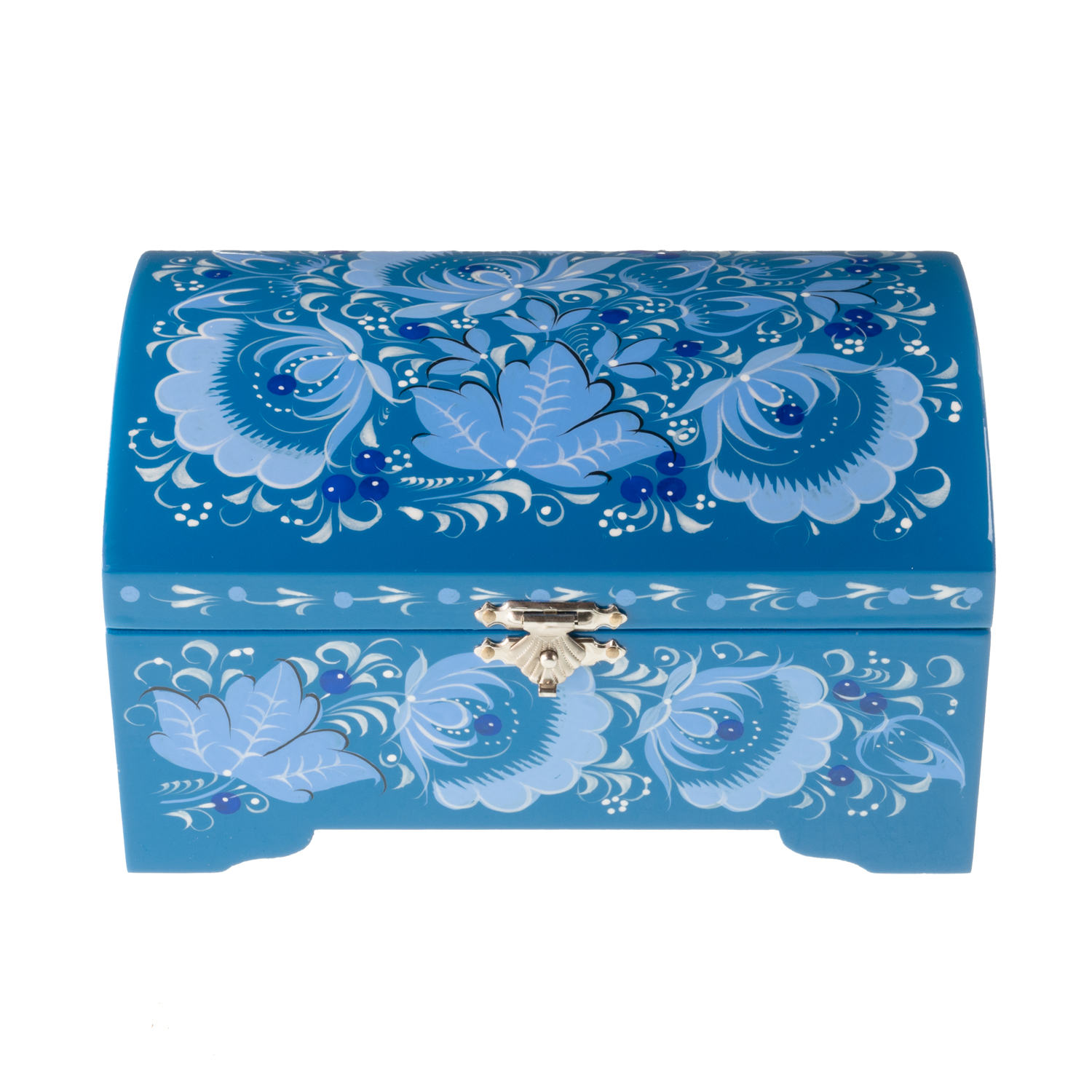 Русские подарки и сувениры → Хохлома → Шкатулки Хохлома → Деревянная шкатулка-сундучок "Зимние цветы". Хохлома