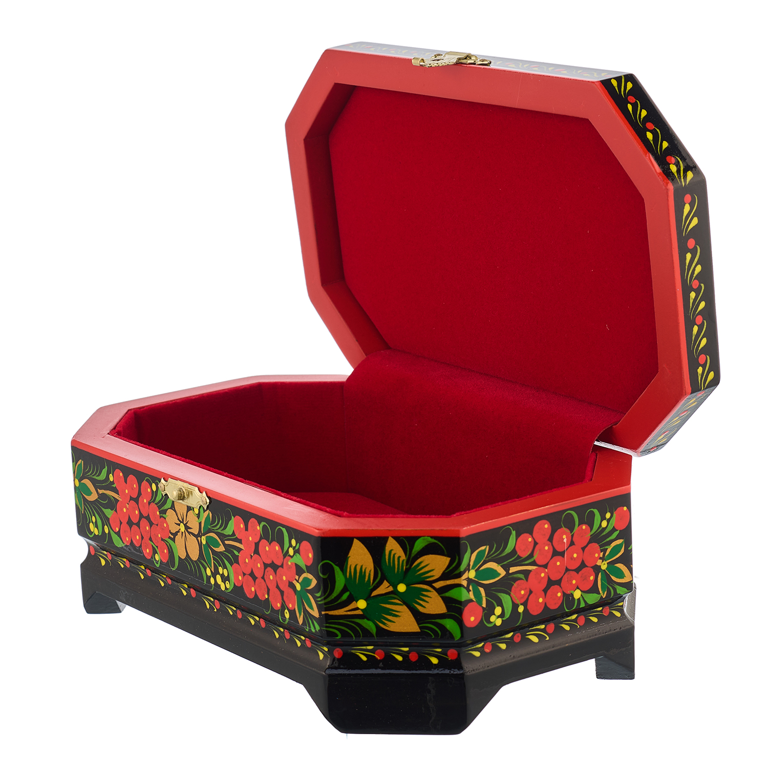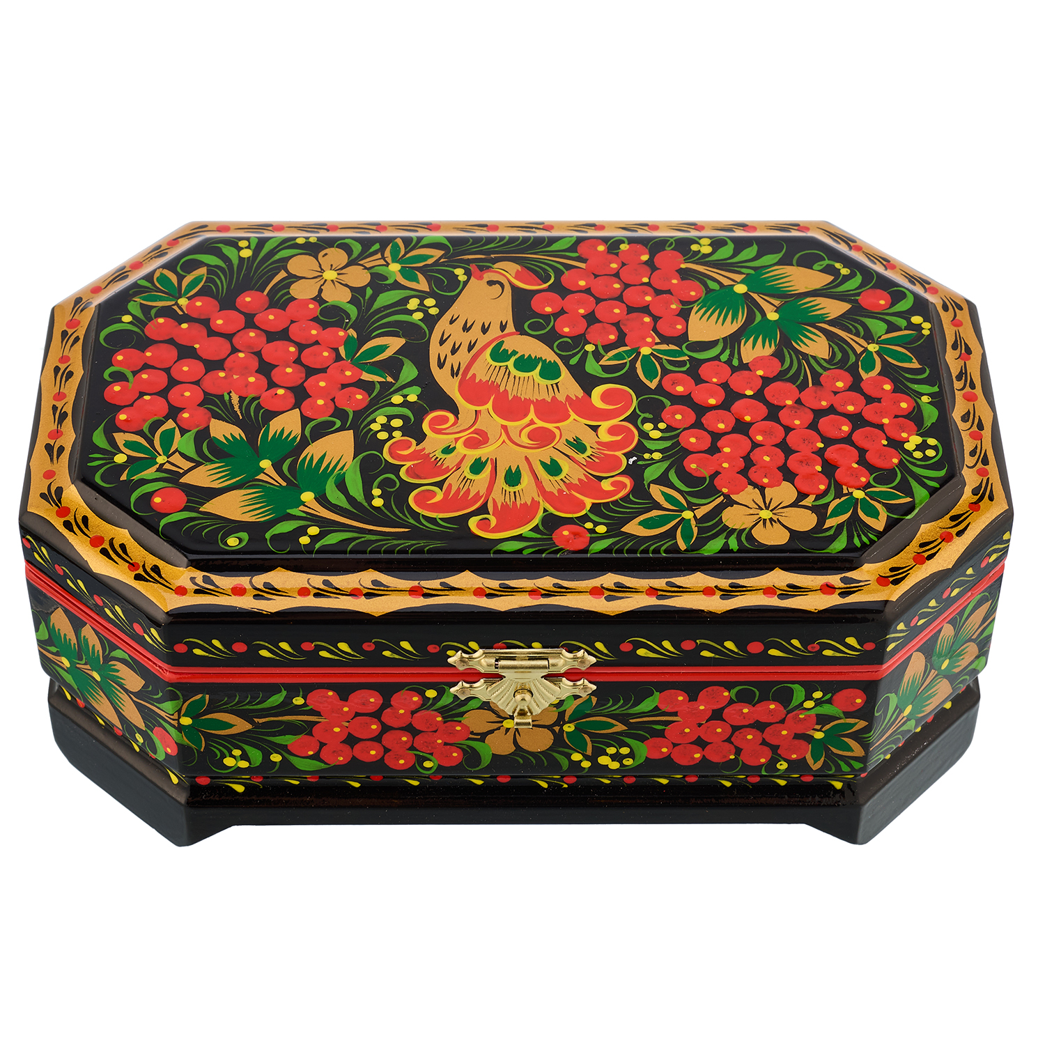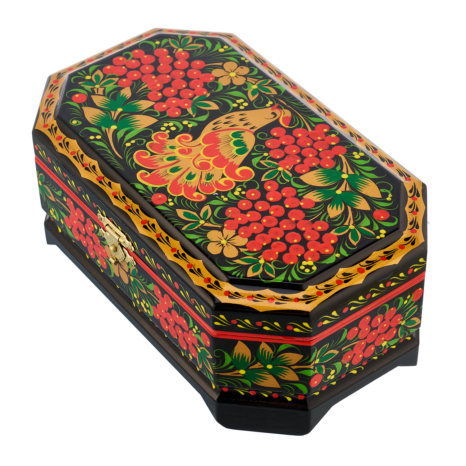 Русские подарки и сувениры → Хохлома → Шкатулки Хохлома → Деревянная шкатулка-сундучок "Птица и рябина". Хохлома
