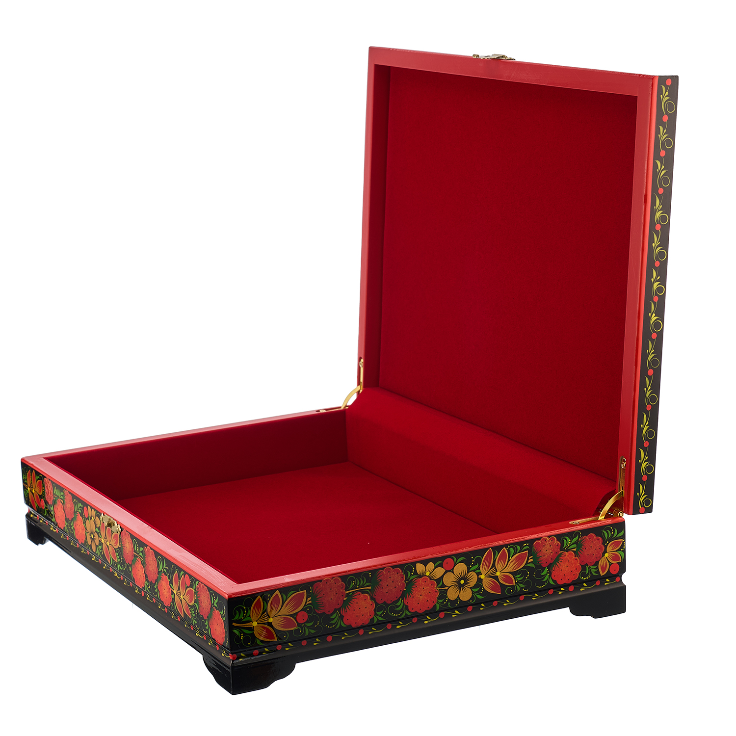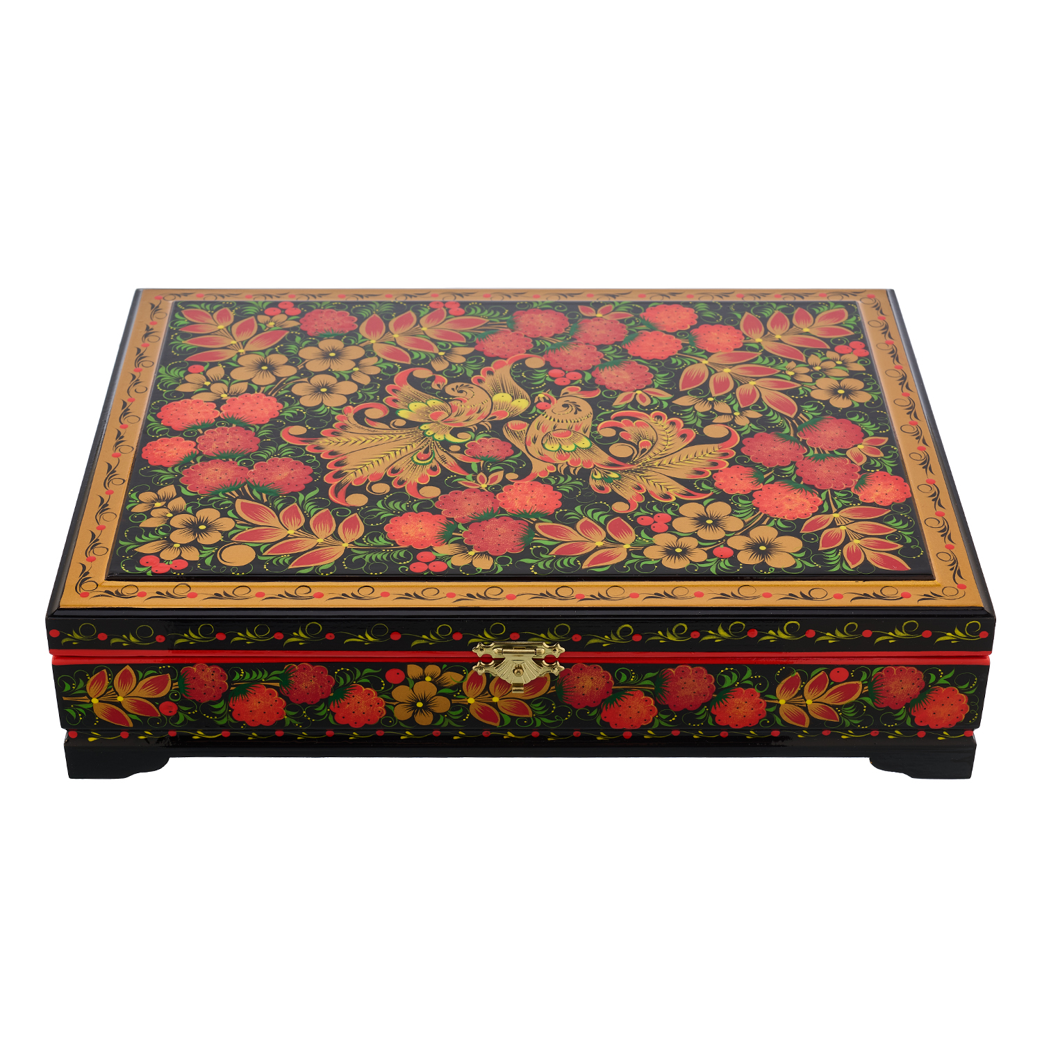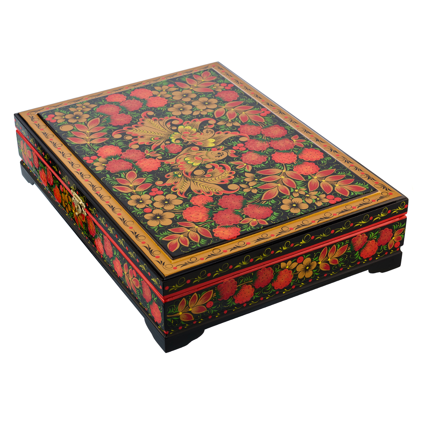 Русские подарки и сувениры → Хохлома → Шкатулки Хохлома → Шкатулка для документов "Птица и малина". Хохлома