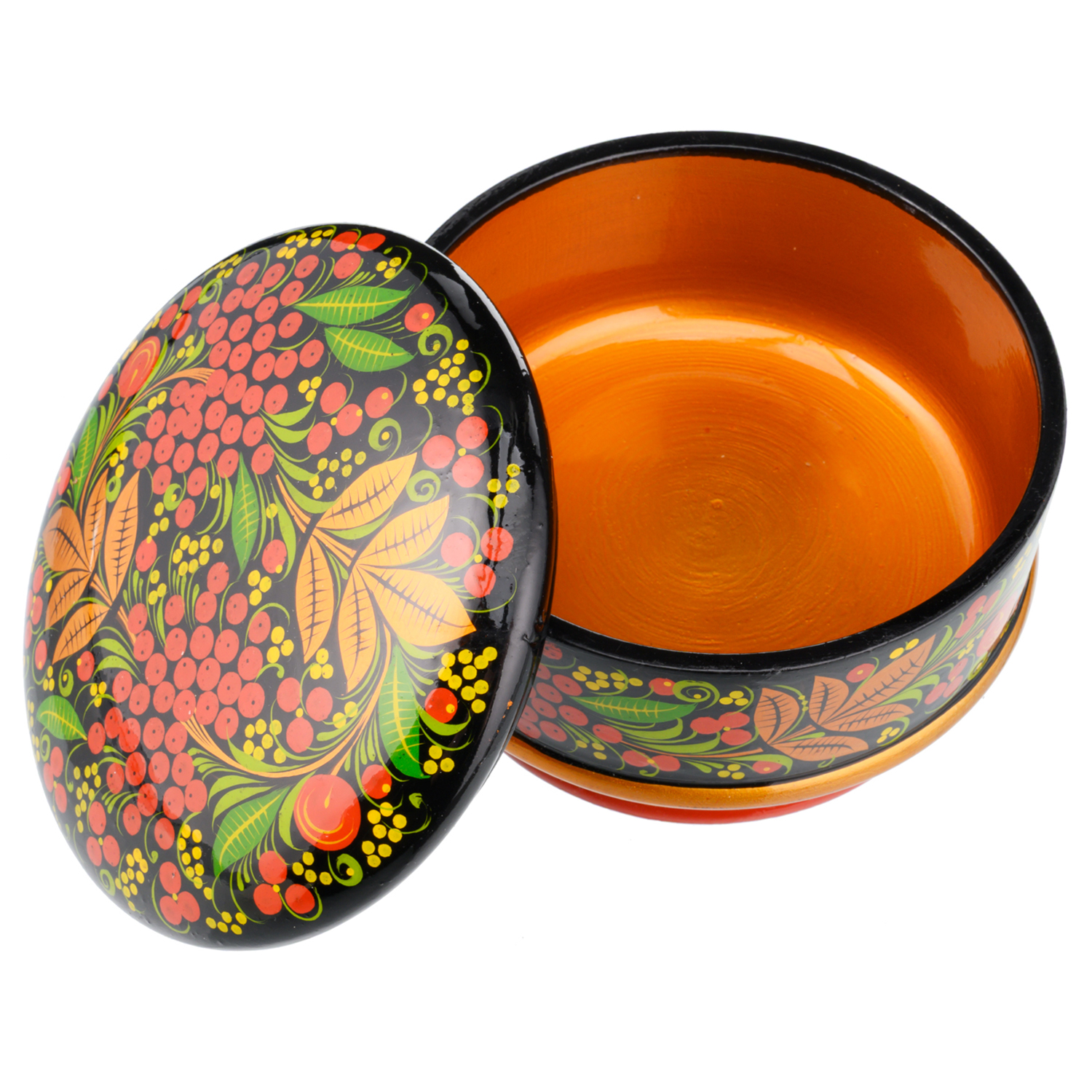 Деревянная круглая шкатулка с росписью "Рябина". Хохлома