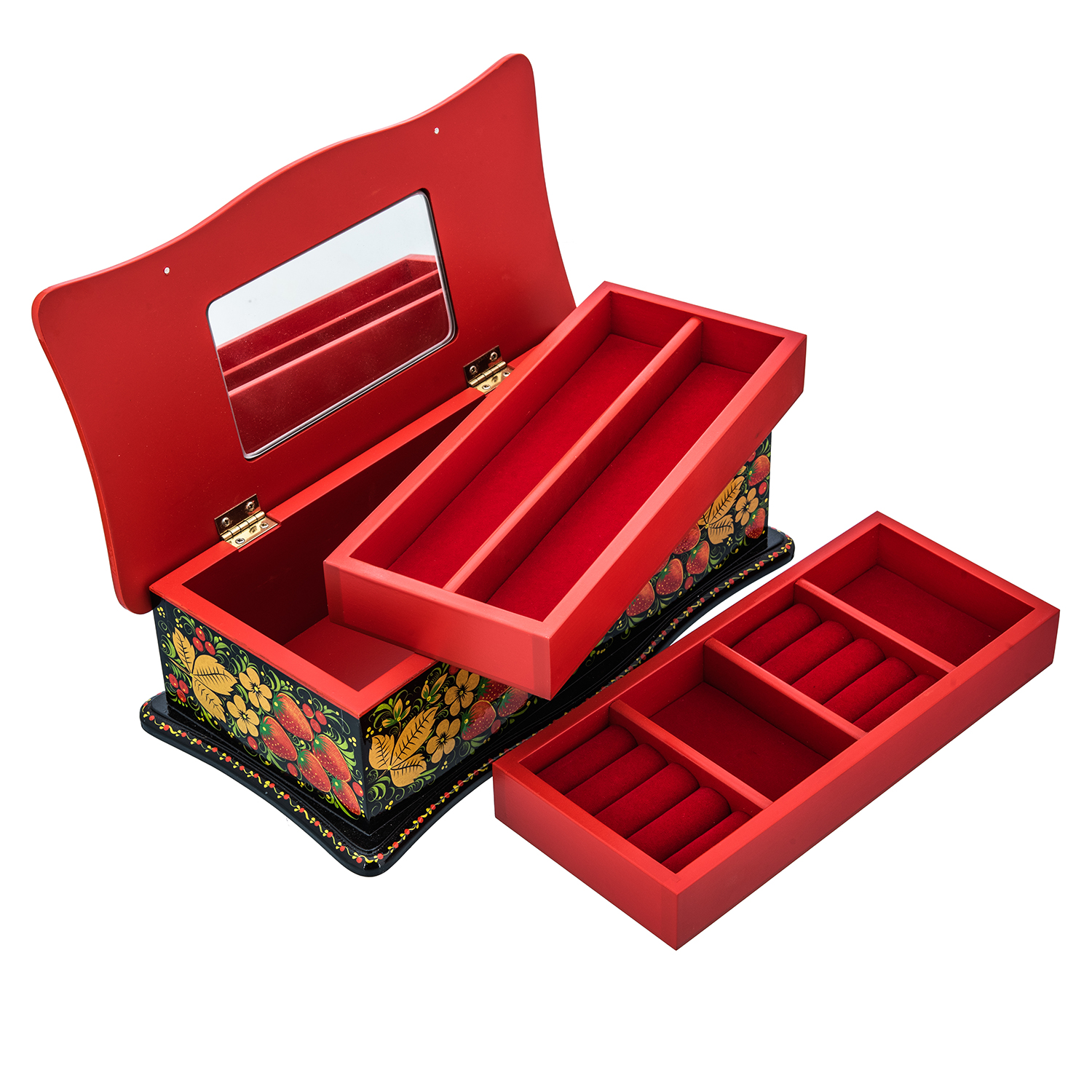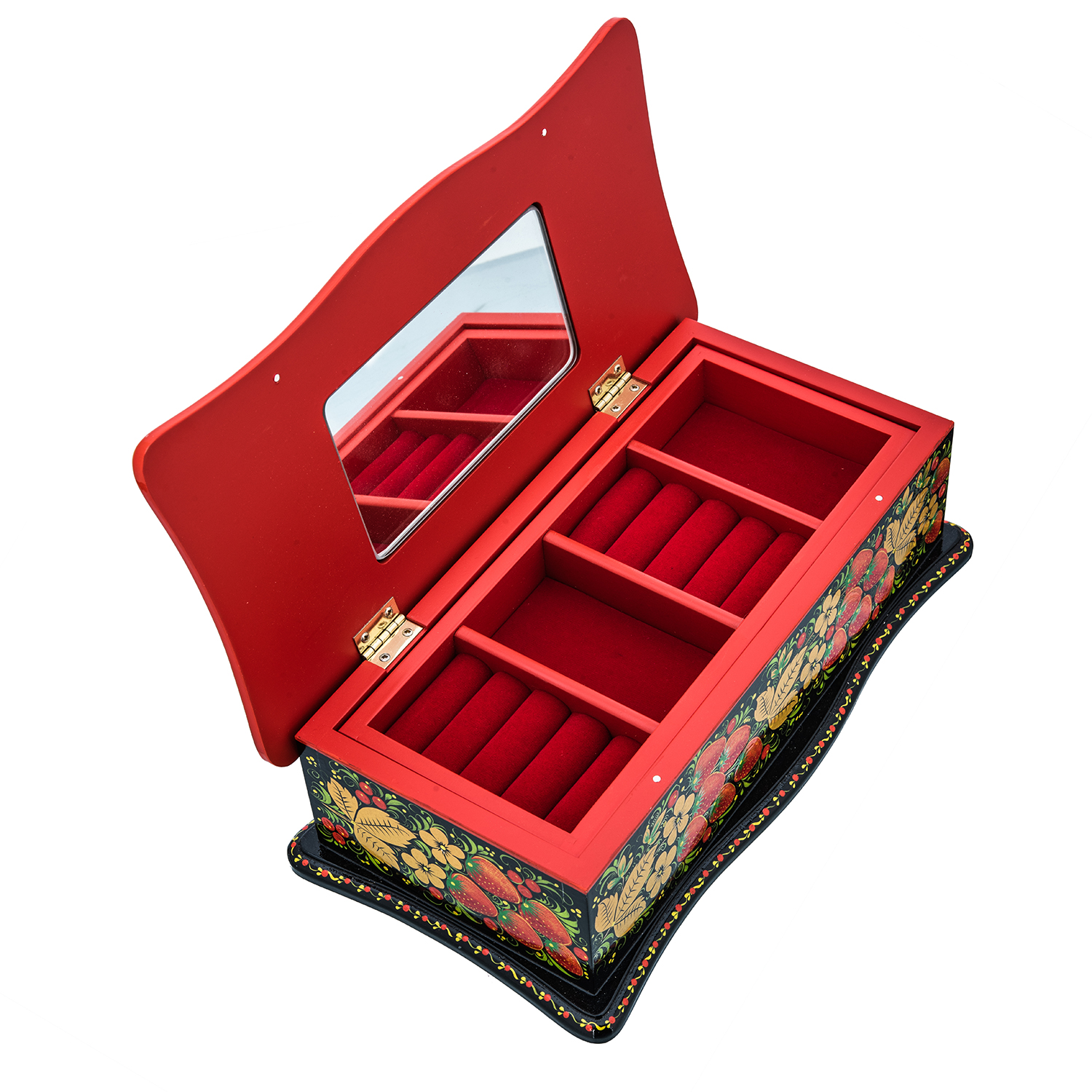 Русские подарки и сувениры → Хохлома → Шкатулки Хохлома → Шкатулка для украшений "Клубника". Хохлома