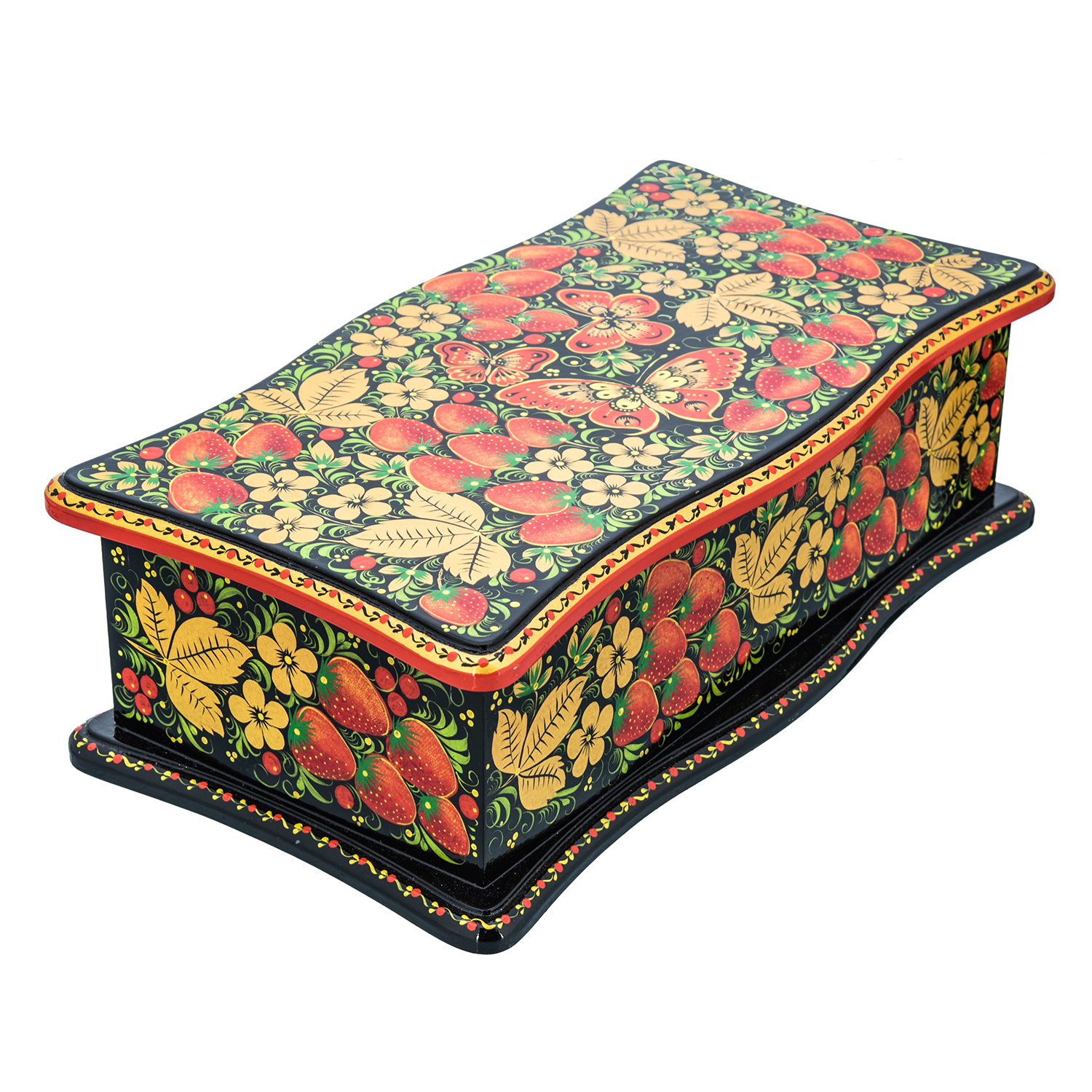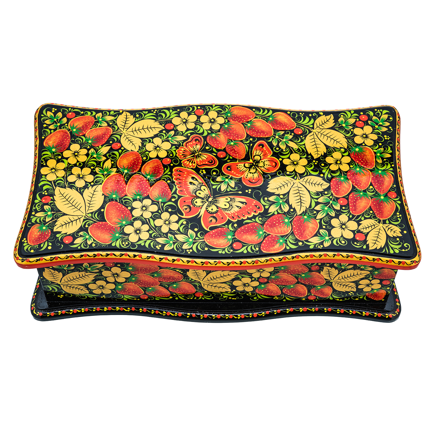 Шкатулка для украшений "Клубника". Хохлома