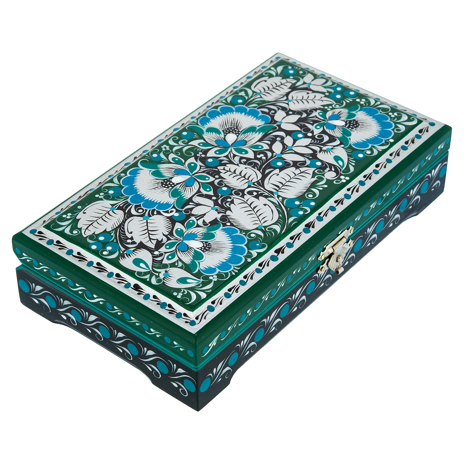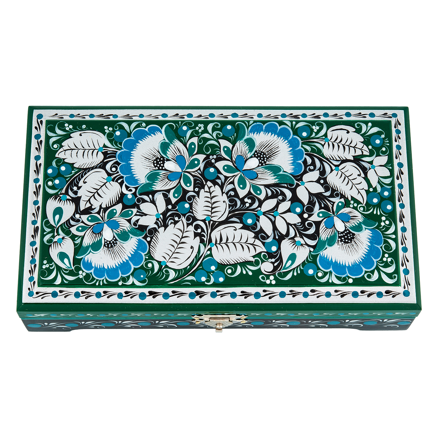 Деревянная шкатулка "Серебряные цветы". Хохлома
