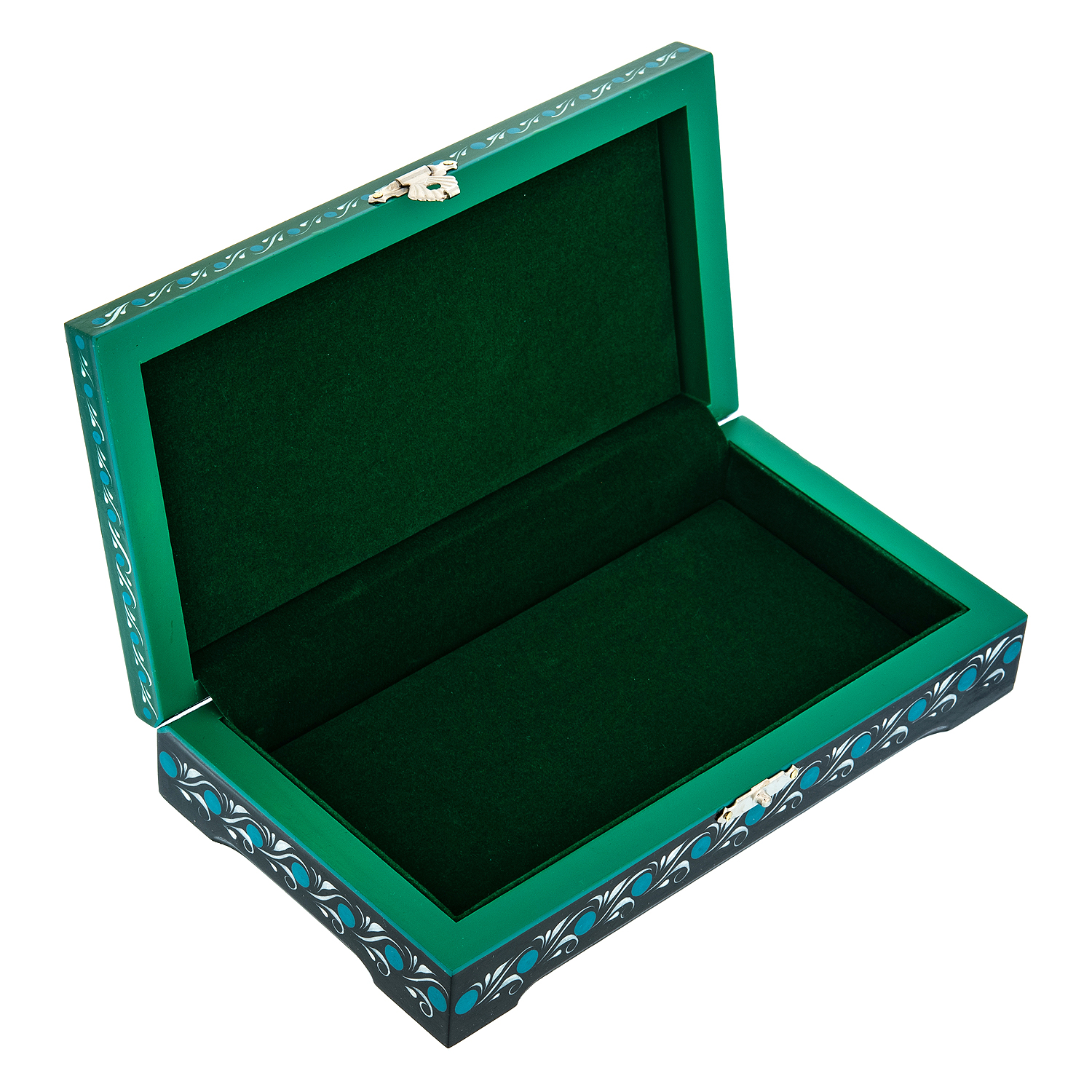 Русские подарки и сувениры → Хохлома → Шкатулки Хохлома → Деревянная шкатулка "Серебряные цветы". Хохлома