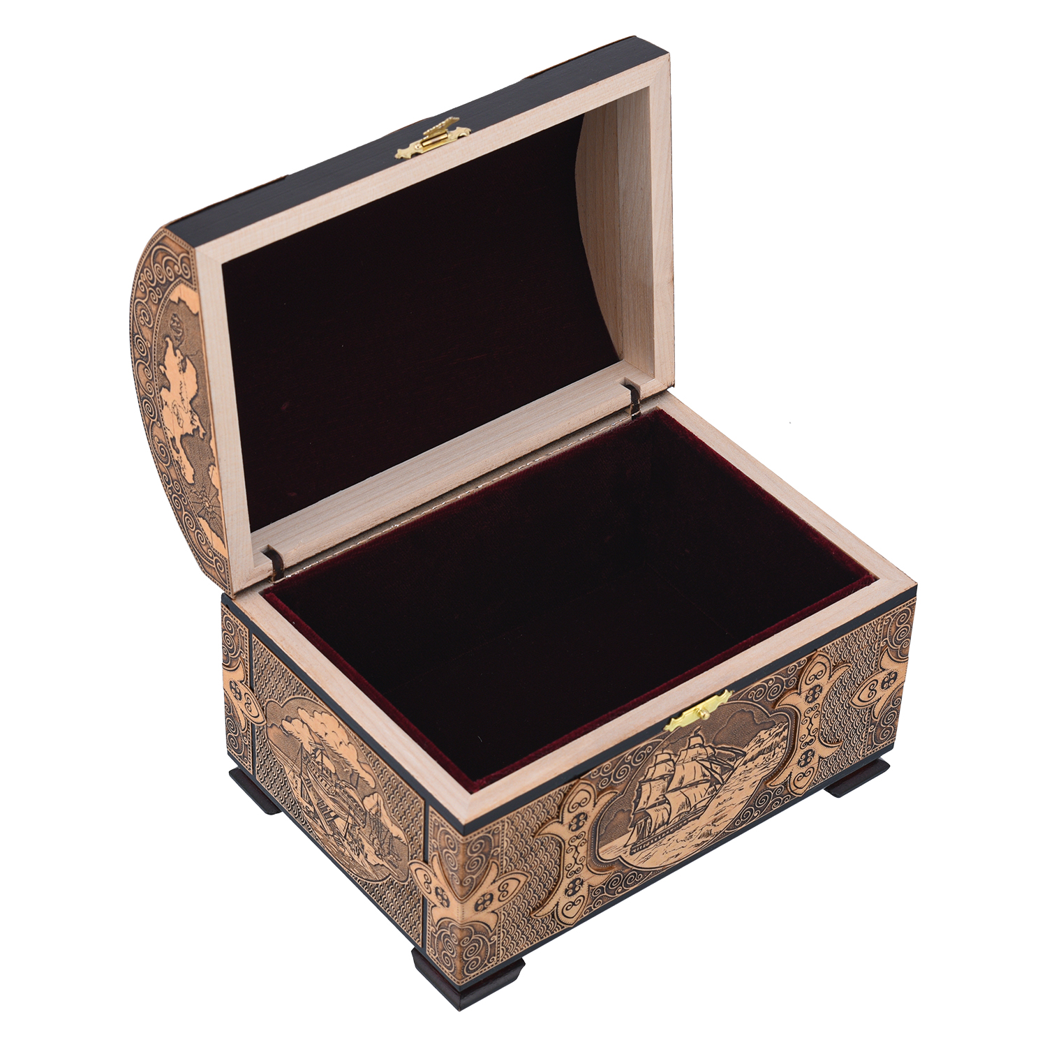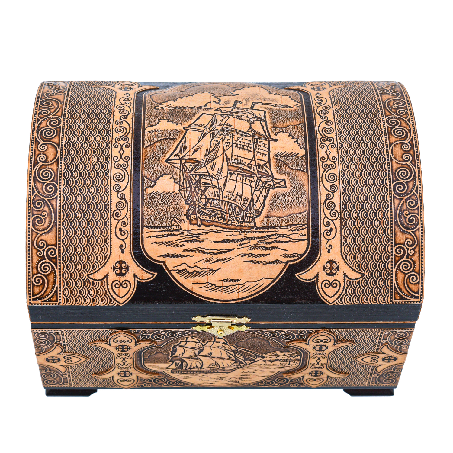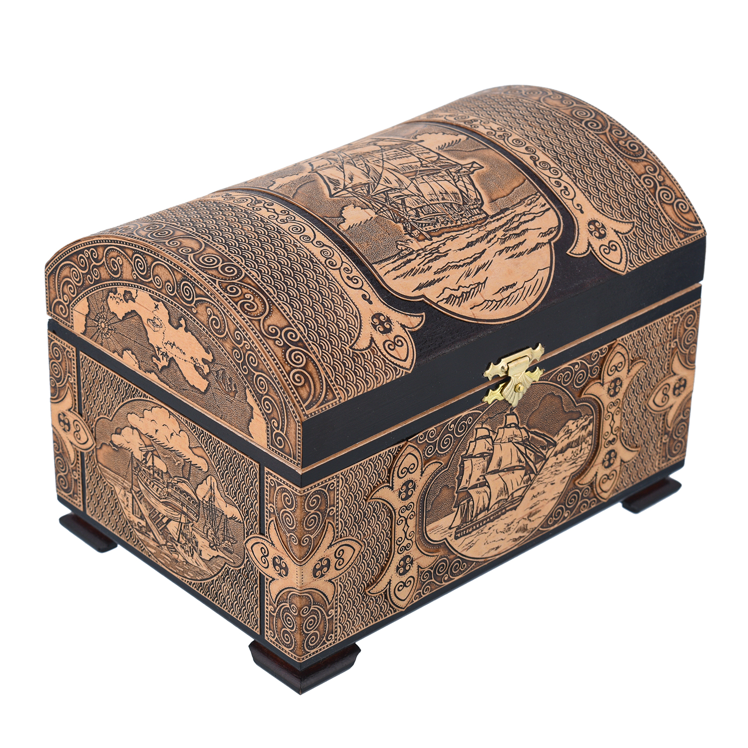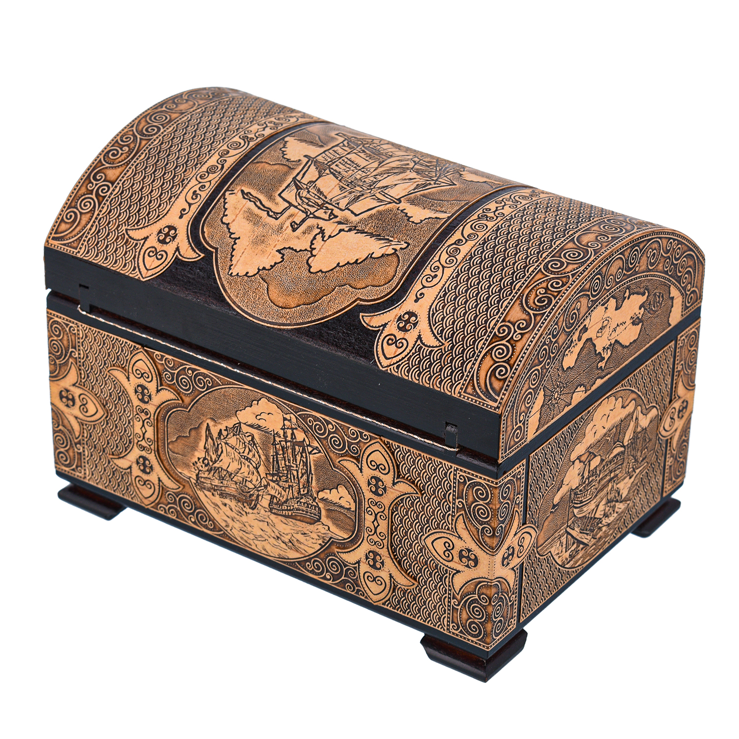 Русские подарки и сувениры → Шкатулки → Шкатулки из бересты → Деревянная шкатулка из бересты "Корабль"