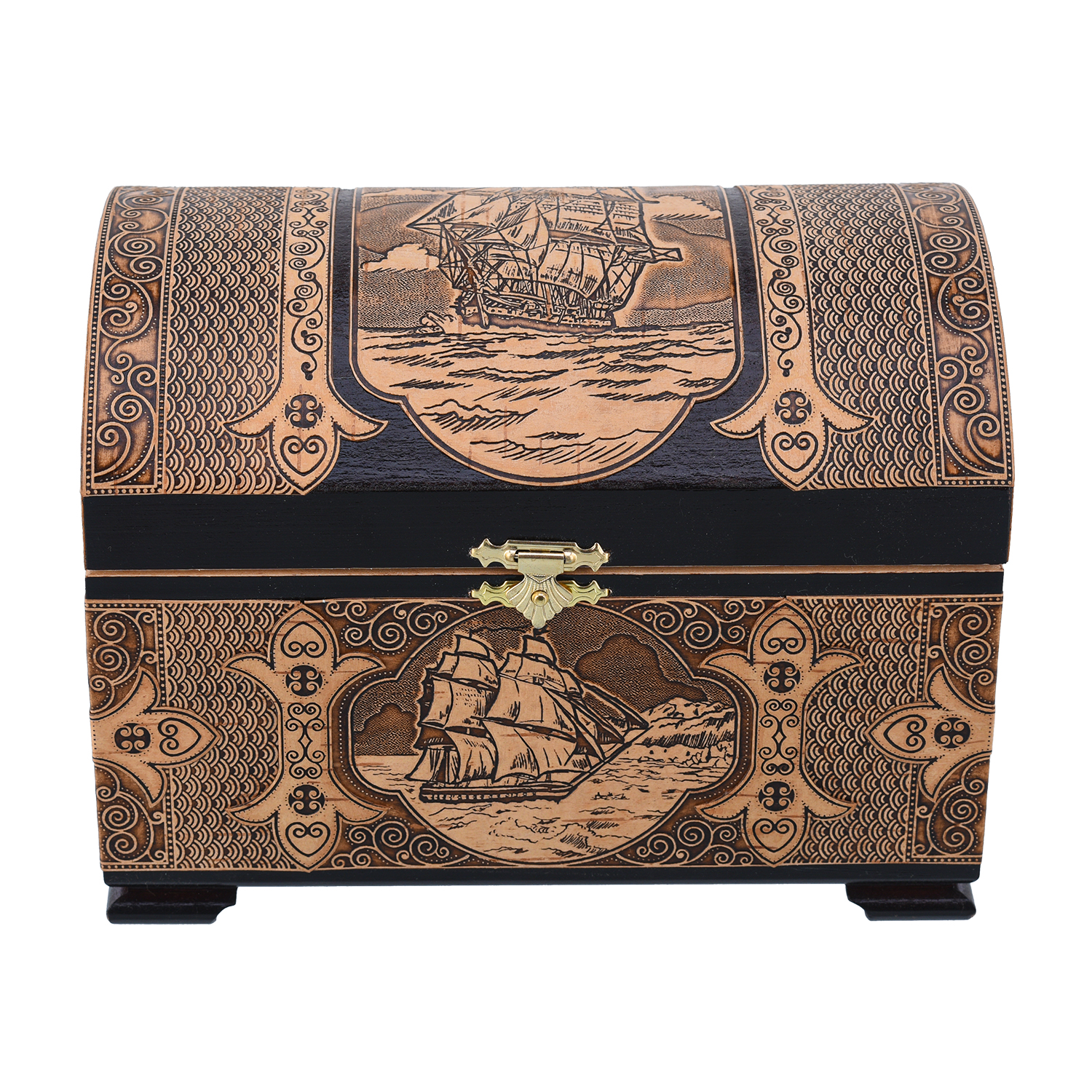Деревянная шкатулка из бересты "Корабль"