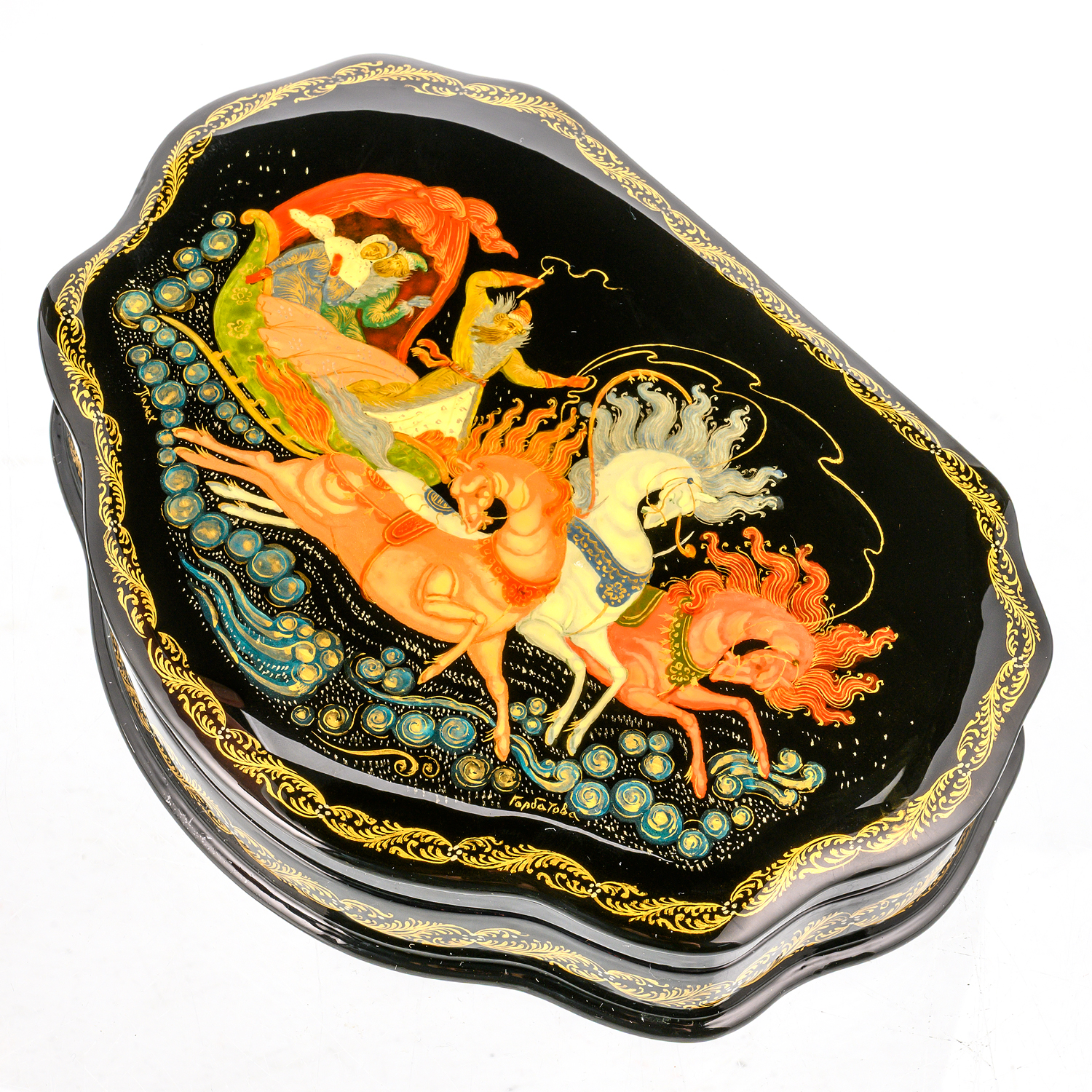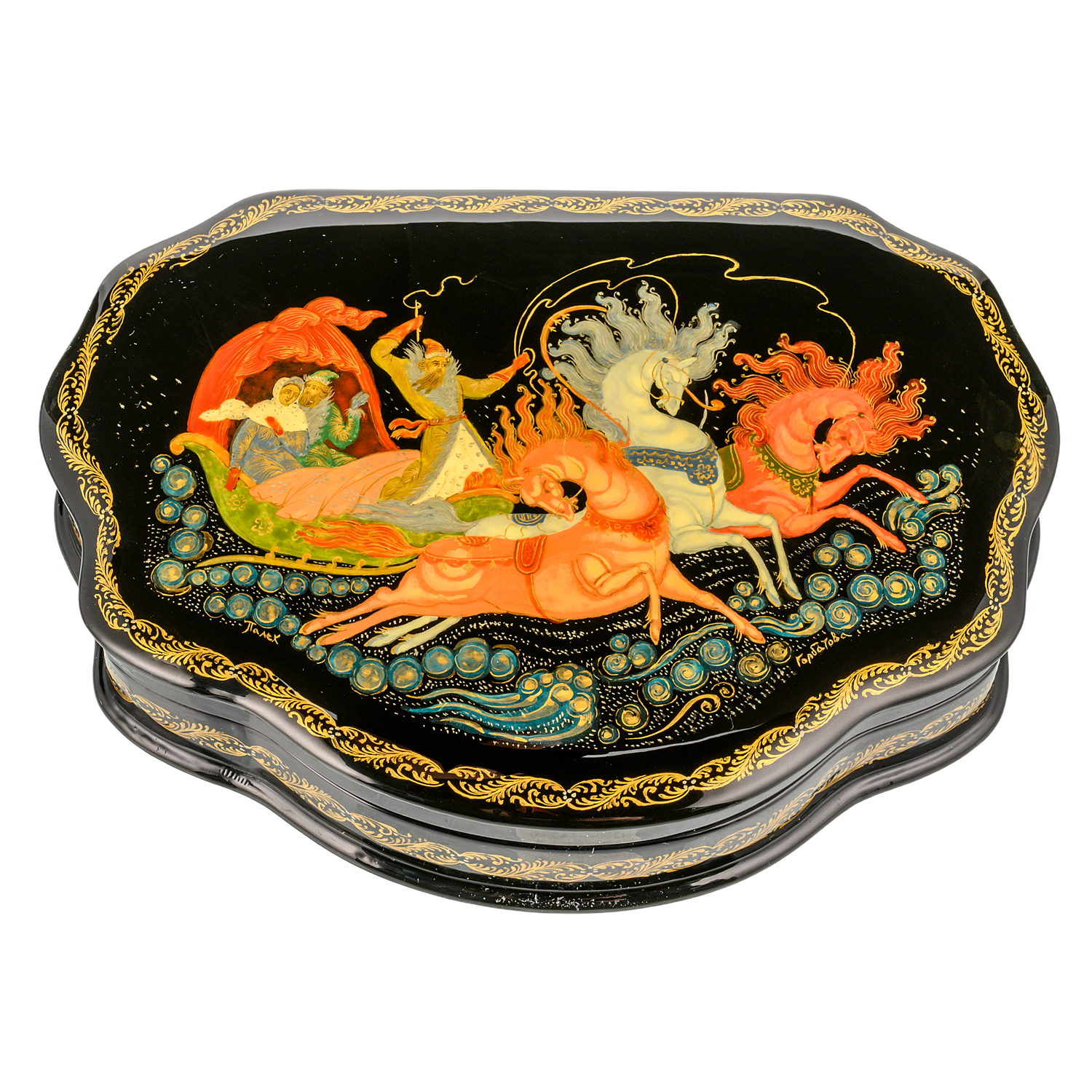 Русские подарки и сувениры → Шкатулки → Шкатулки Палех → Шкатулка с художественной росписью "Тройка"
