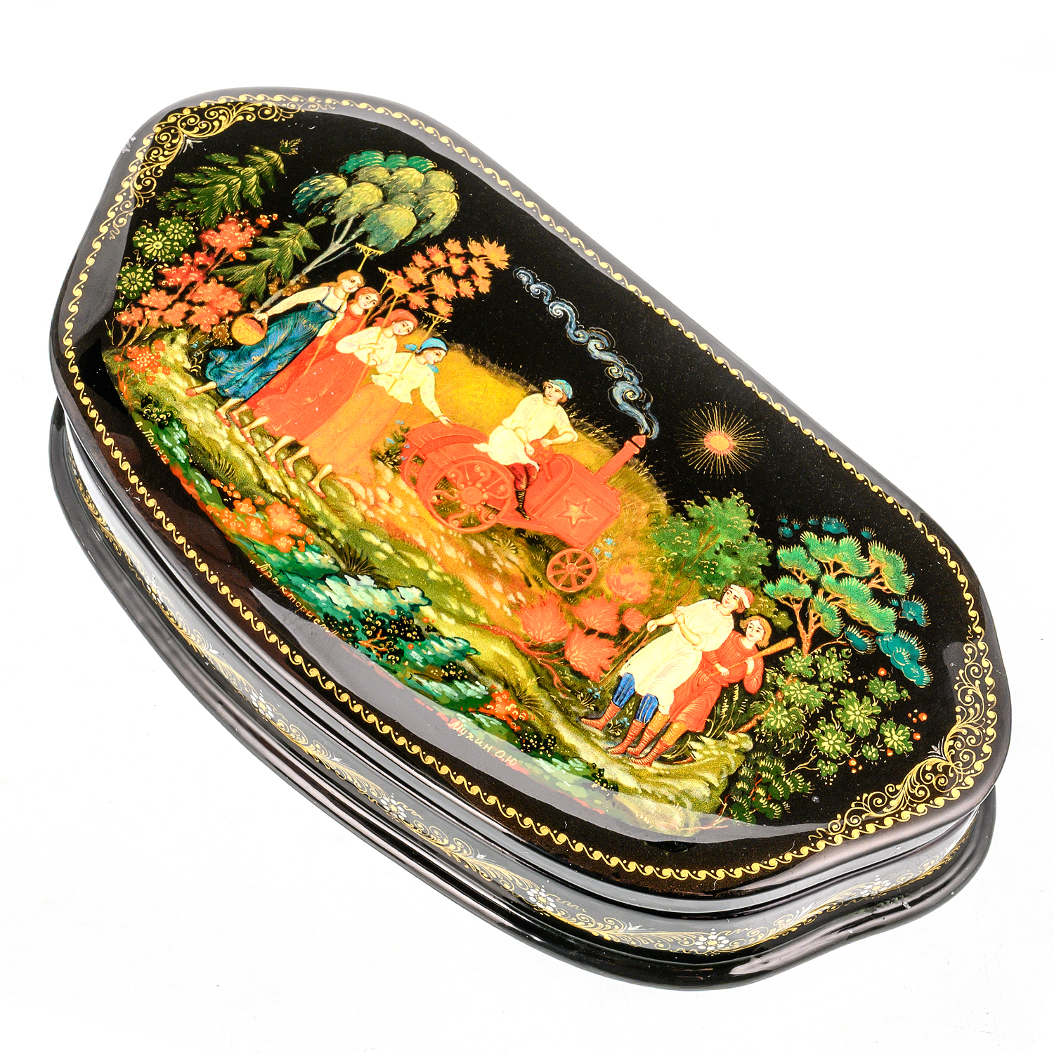 Русские подарки и сувениры → Шкатулки → Шкатулки Палех → Шкатулка с художественной росписью "Прокати нас, Петруша"