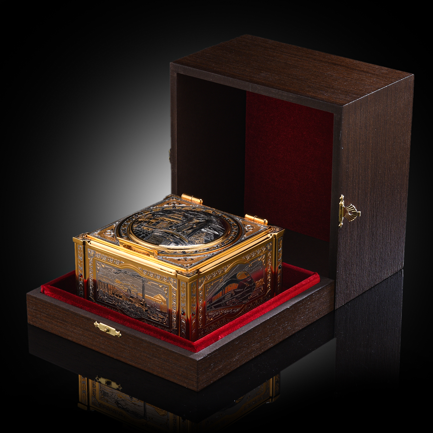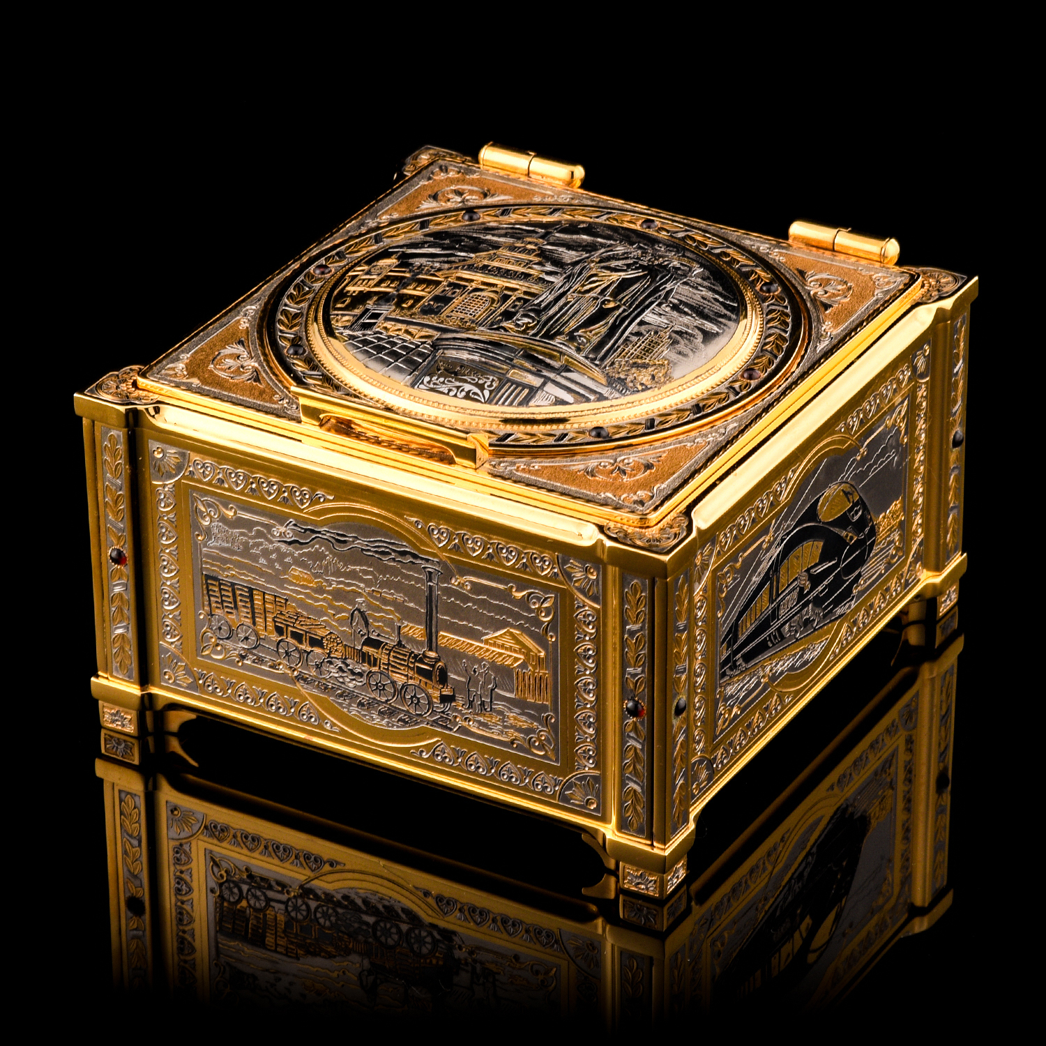 Шкатулка "Казанский вокзал". Златоуст.Материалы: латунь, никель, золото 999,9*, чернение.