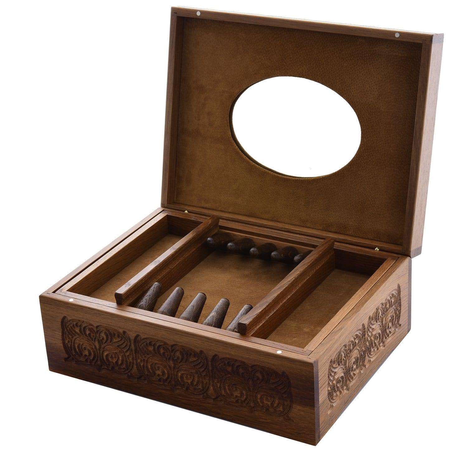 Во второй половине 17 века в России появилась фигурная немецкая резьба с готическими мотивами. В 1660 году ею была украшена царская столовая, построенная по проекту немецкого архитектора Декенпина. Стали популярны новые инструменты и немецкие термины: гзымьзумбь, шерхебель, шархебень, нашлихтебль. В резьбе мебели появились карнисы, гзымзы, шпленгери, кракштыны (кронштейн), фрамуги, каптели, цыротные травы, фруфты. Рези расписывали красками, покрывали сусальным золотом.