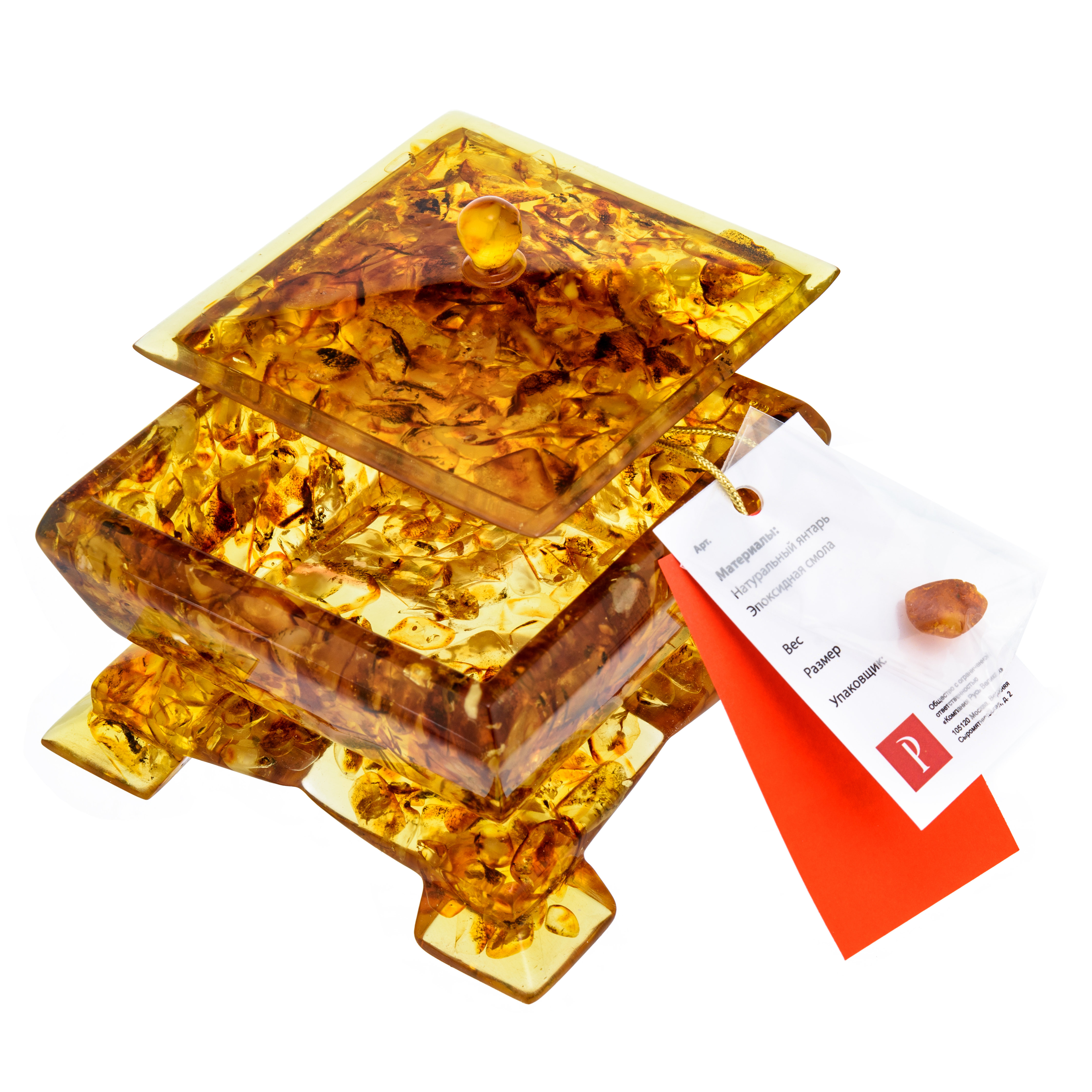 Шкатулка из янтаря "Квадратная"