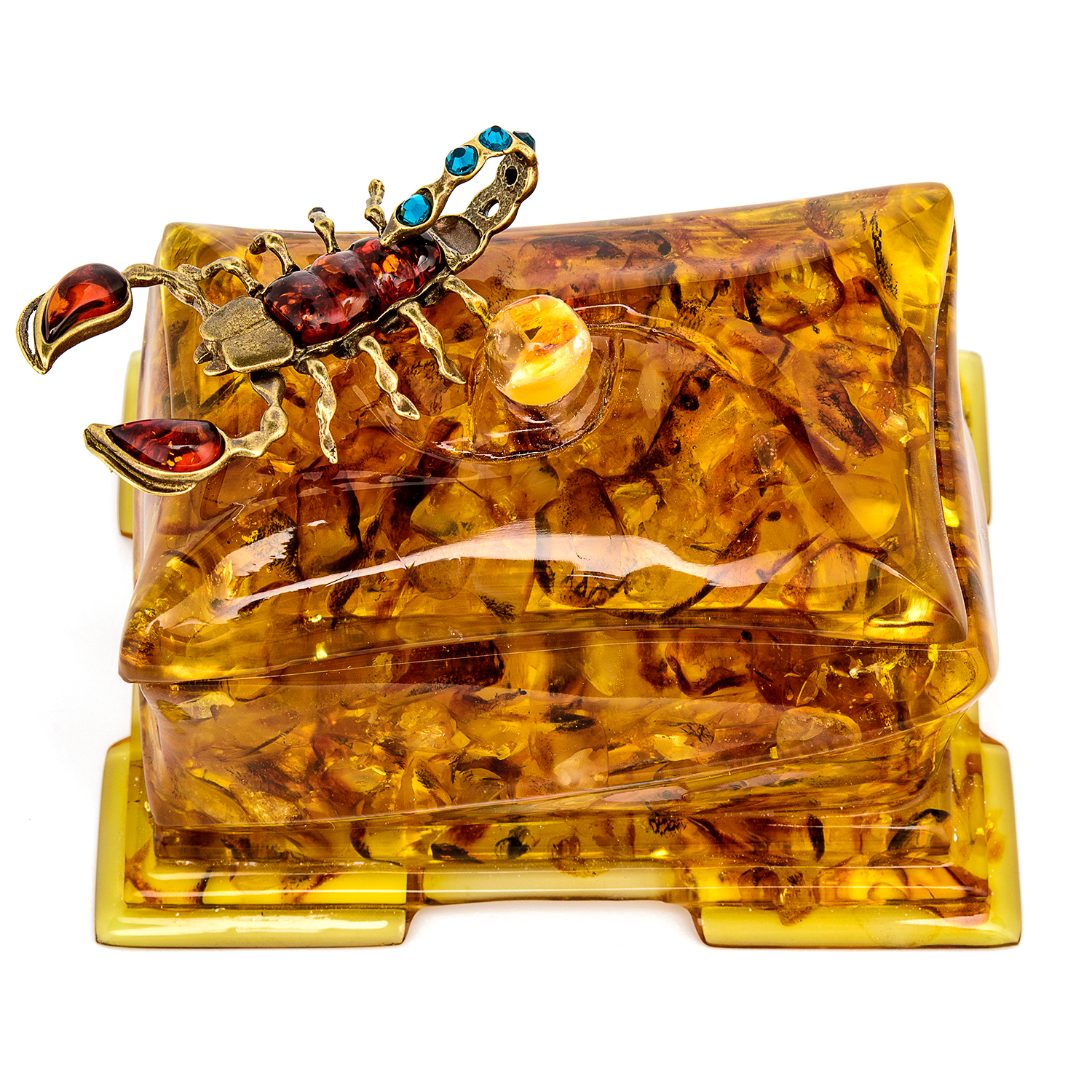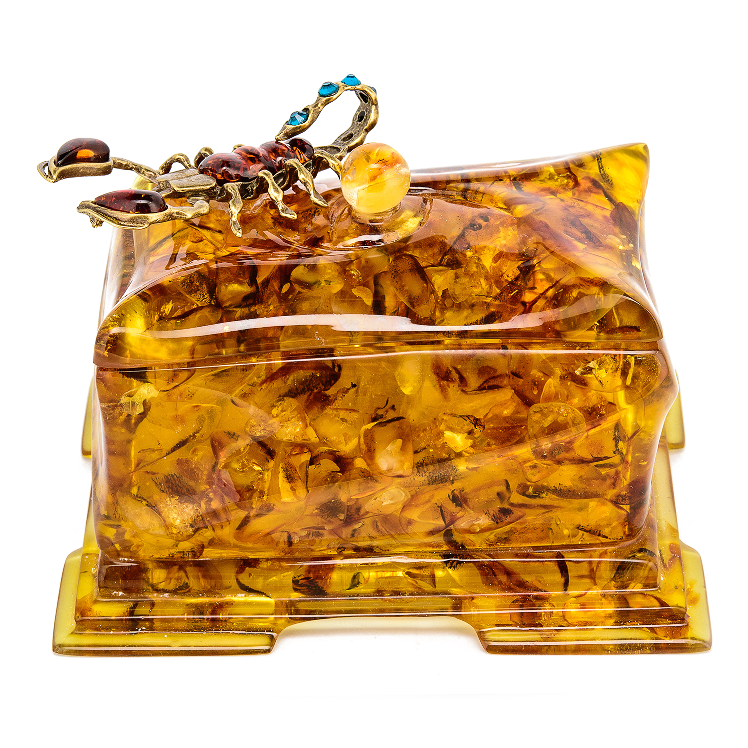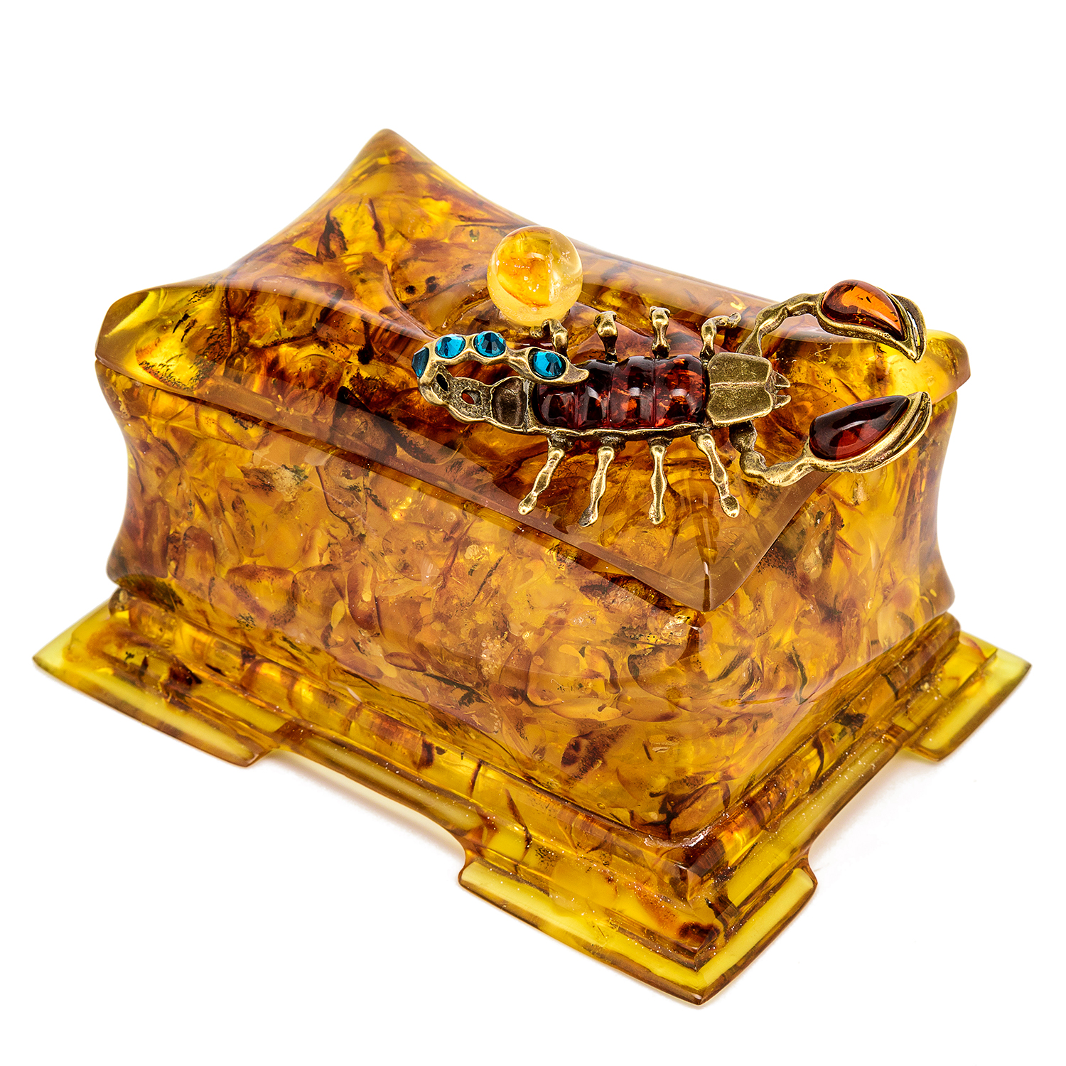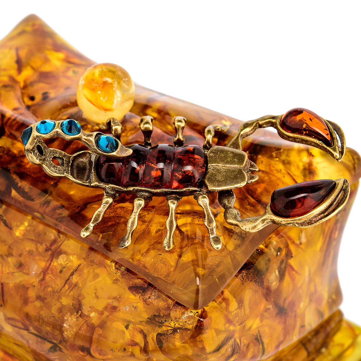 Шкатулка из янтаря прямоугольная "Скорпион"