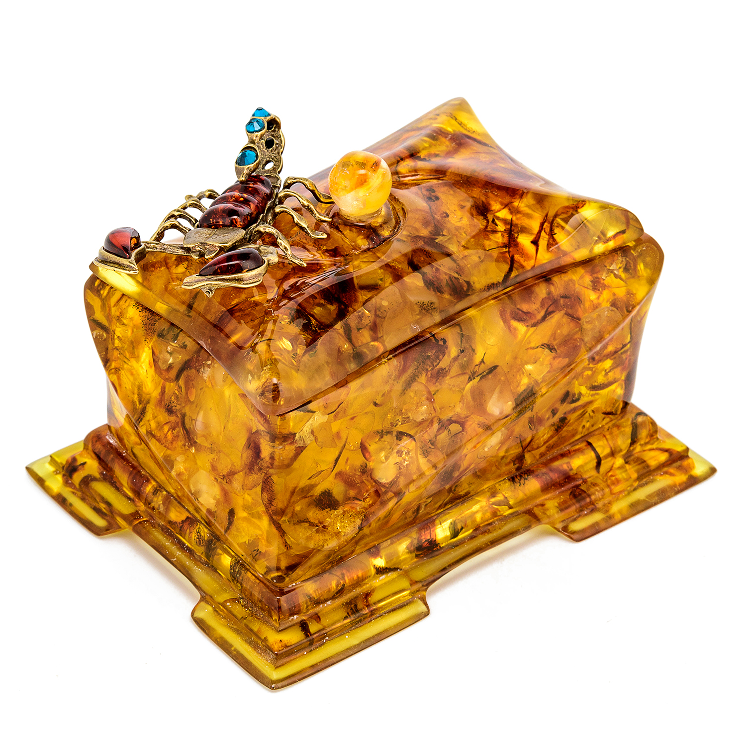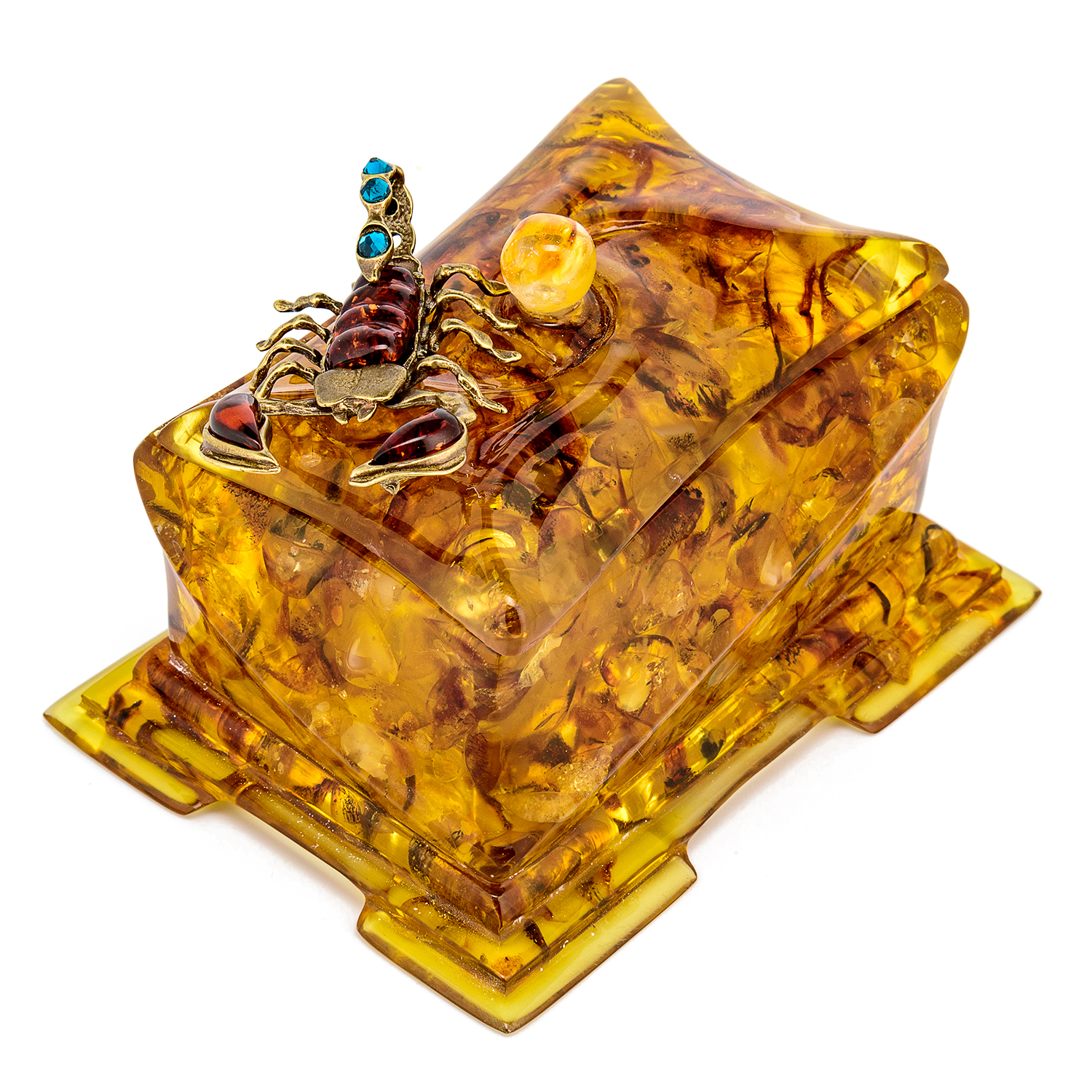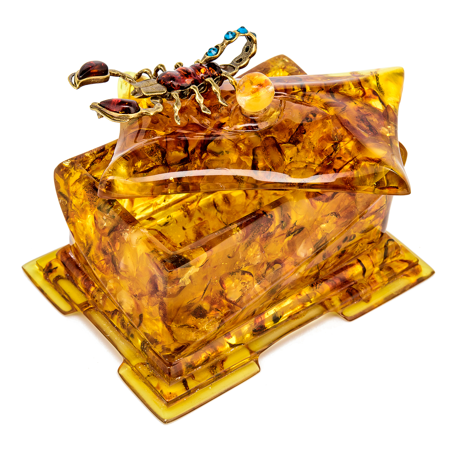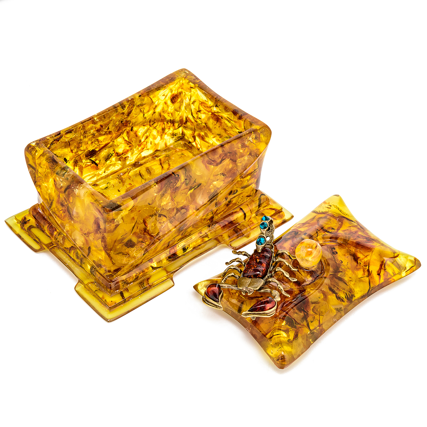 Шкатулка из янтаря прямоугольная "Скорпион"