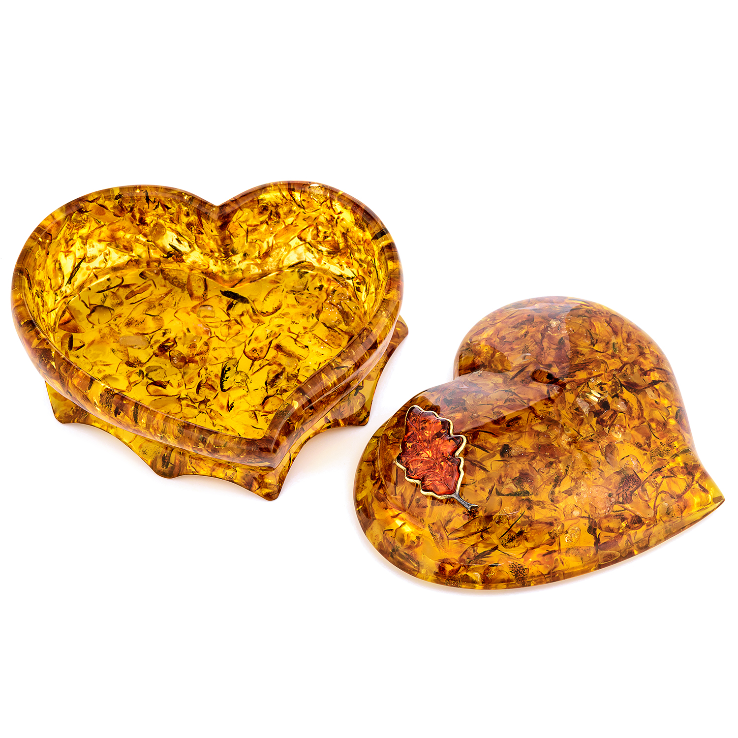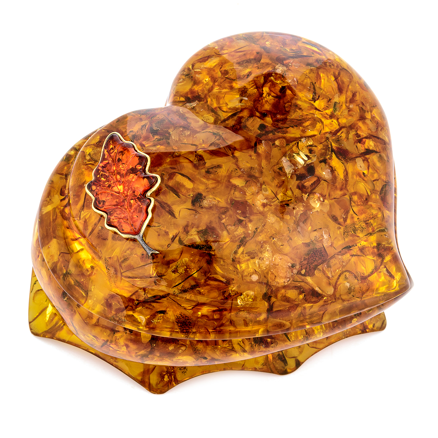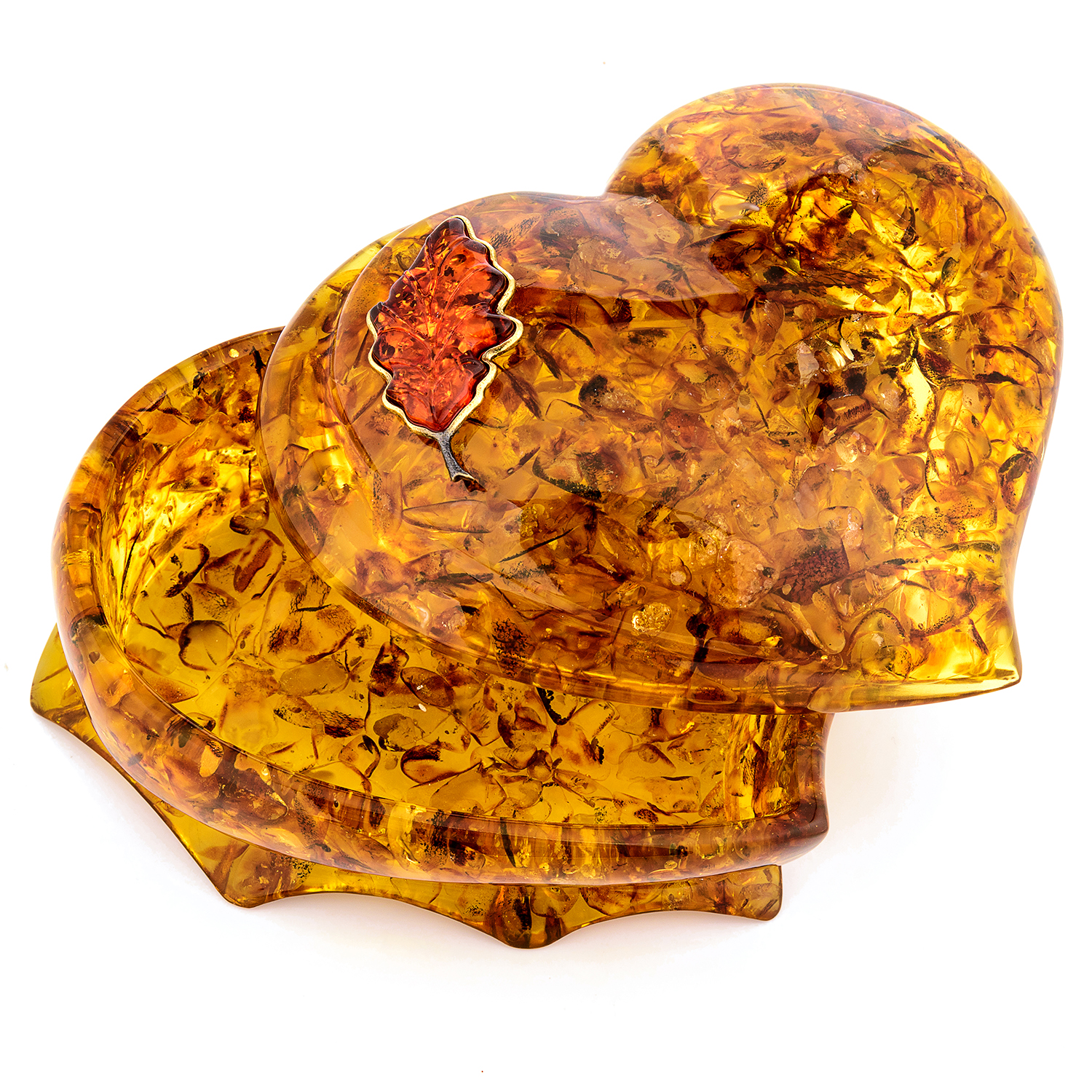Шкатулка из янтаря "Сердце. Дубовый лист"