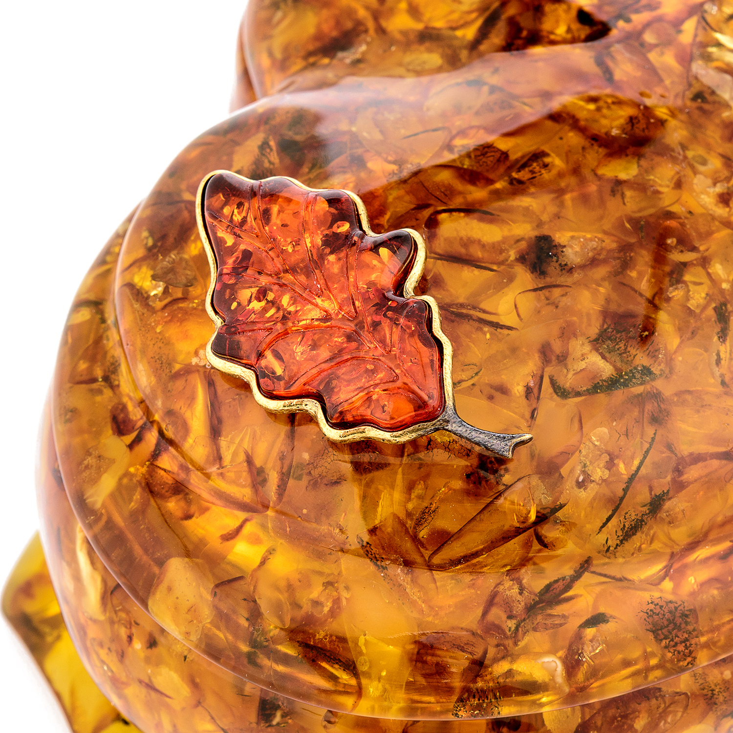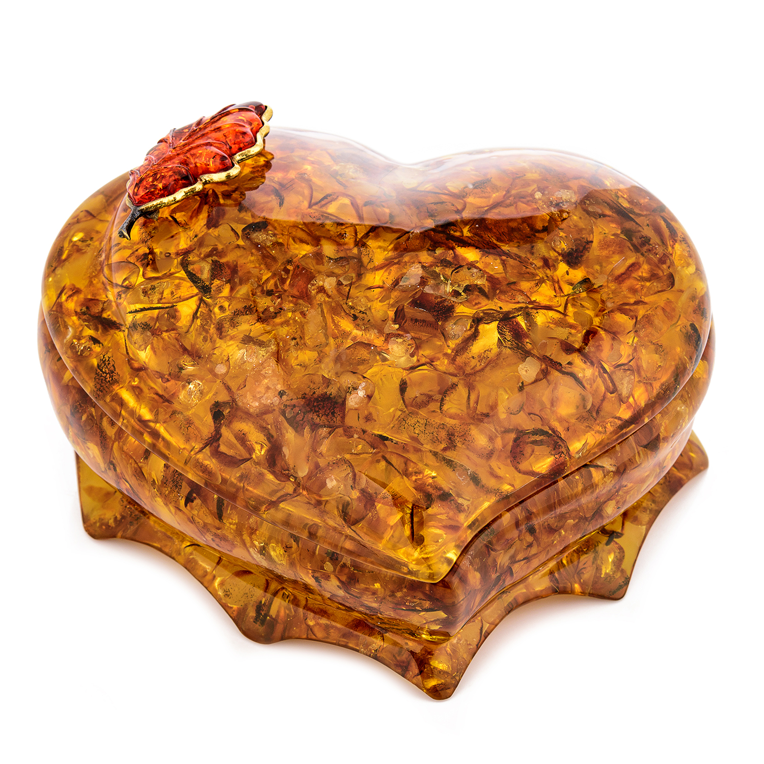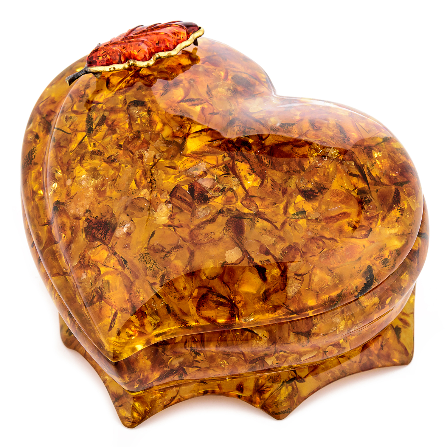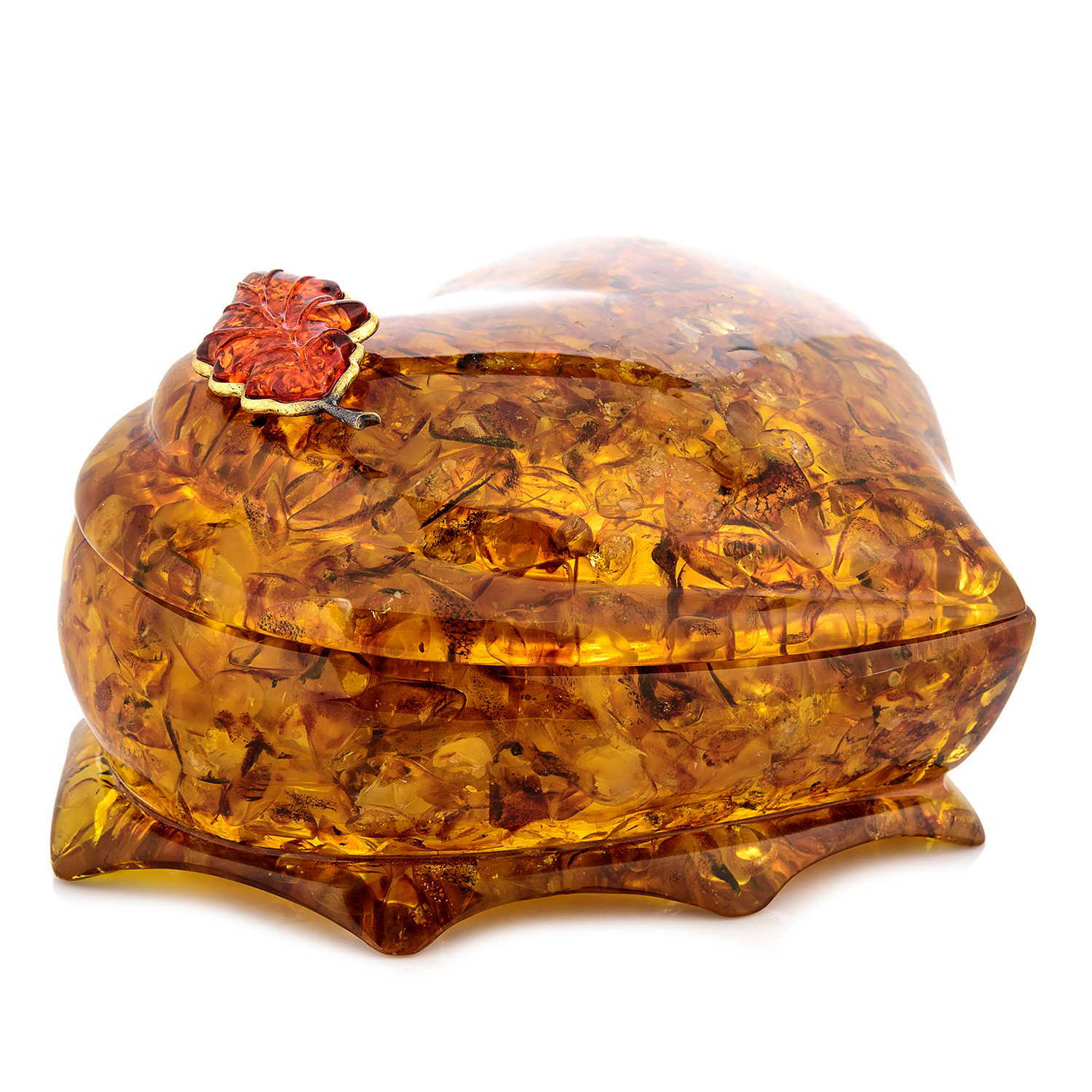 Шкатулка из янтаря "Сердце. Дубовый лист"