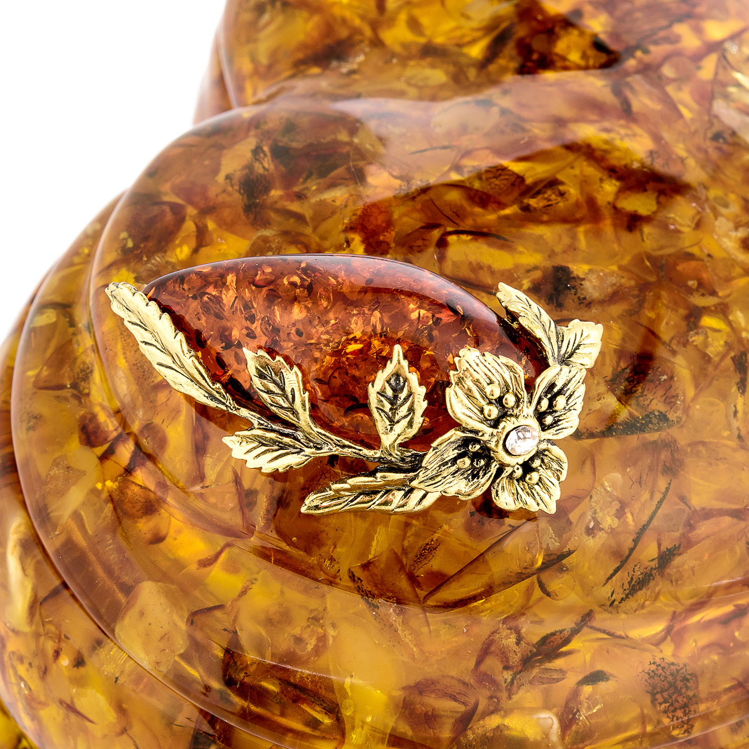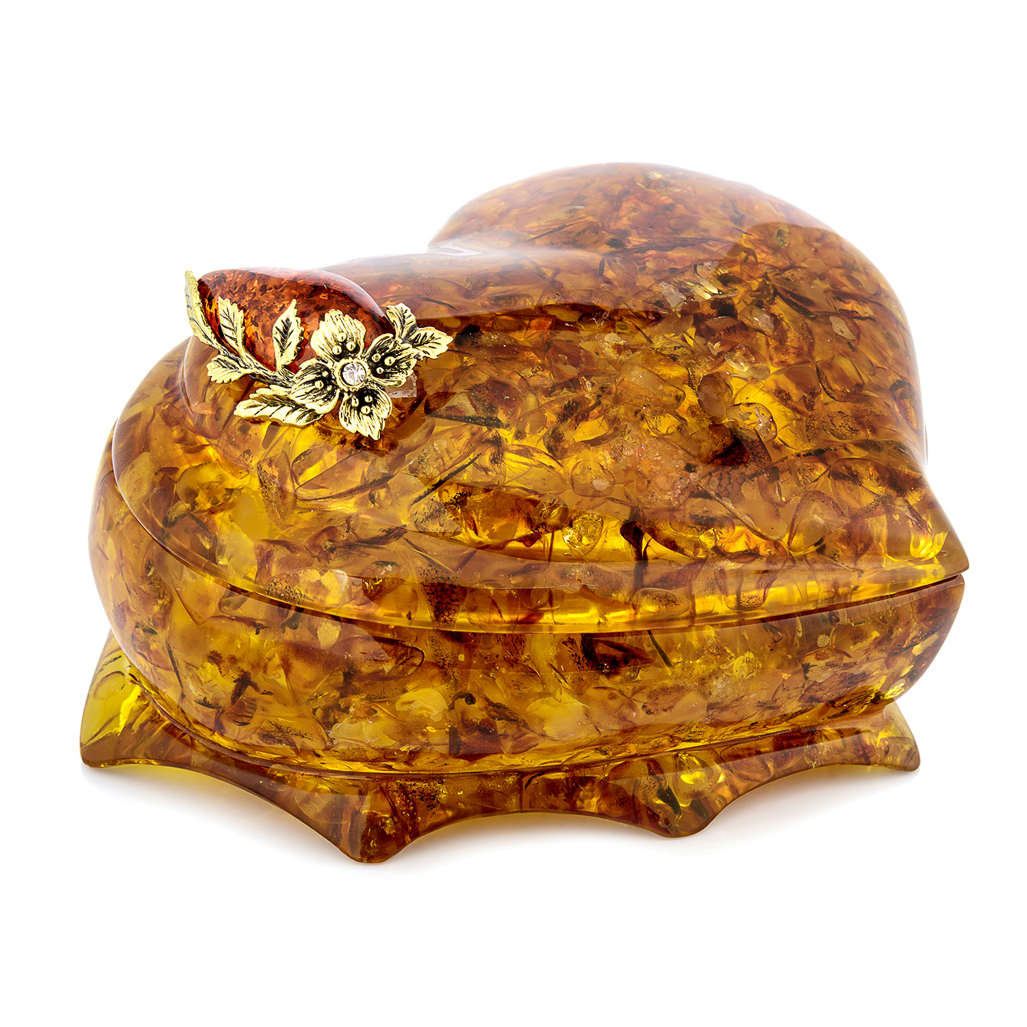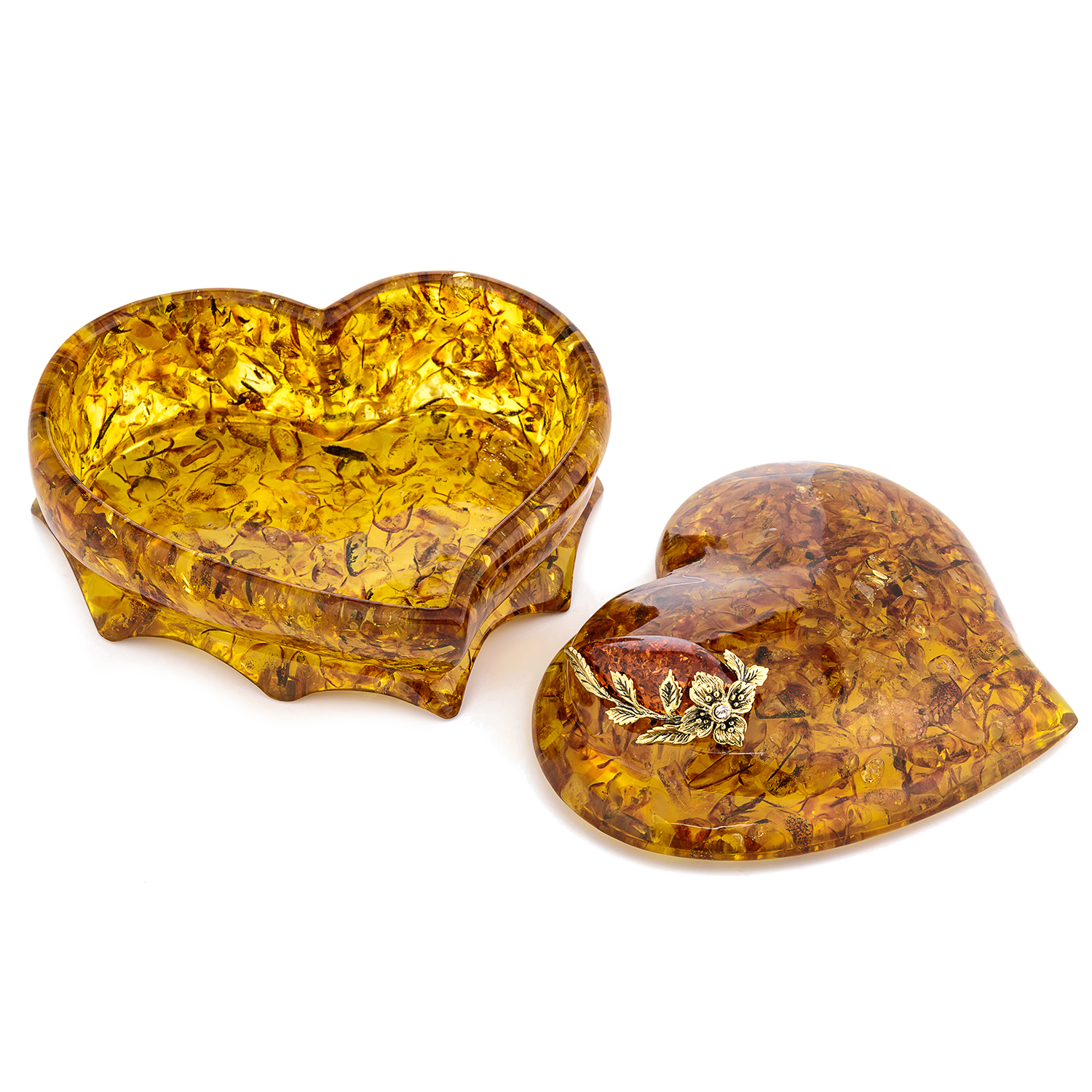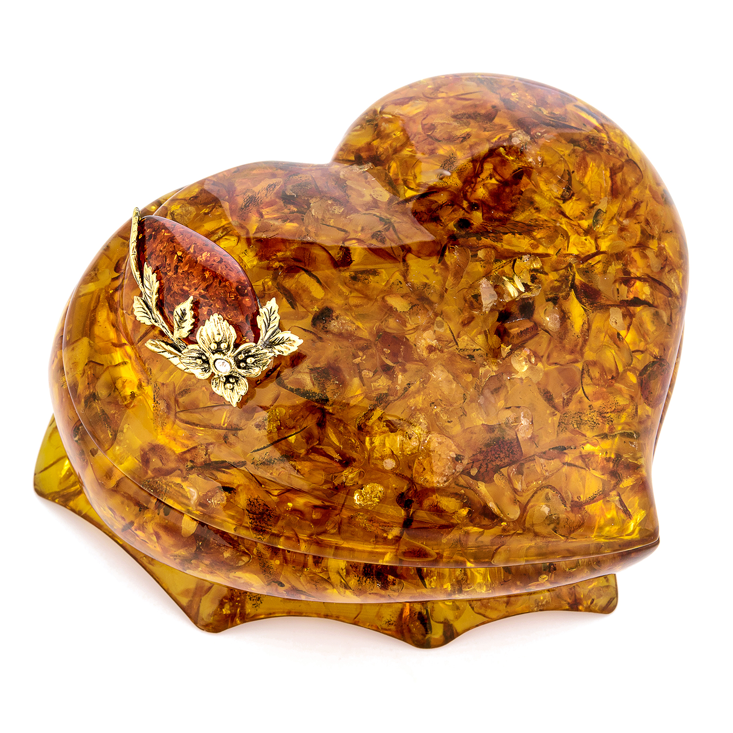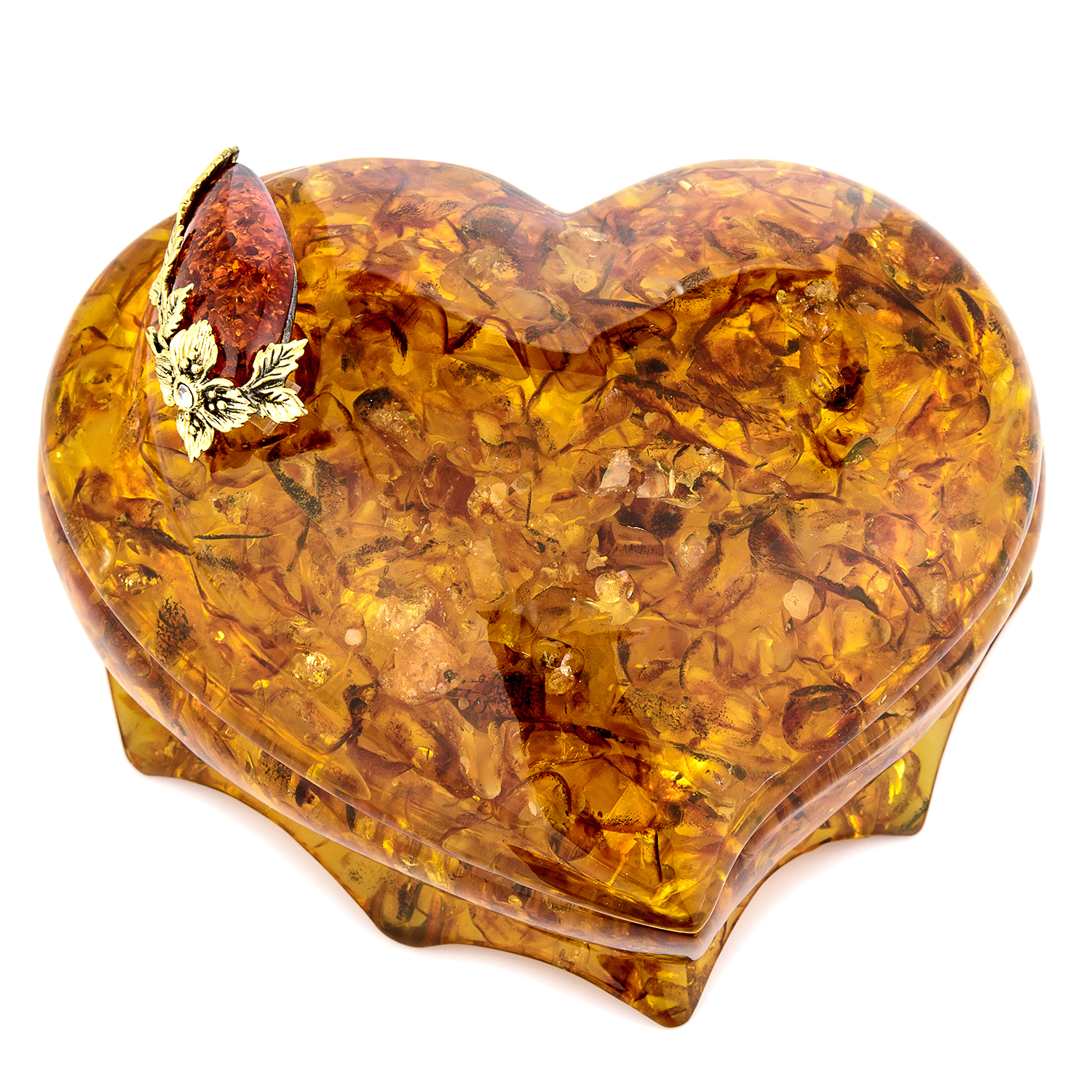 Шкатулка из янтаря "Сердце. Ветка адониса"