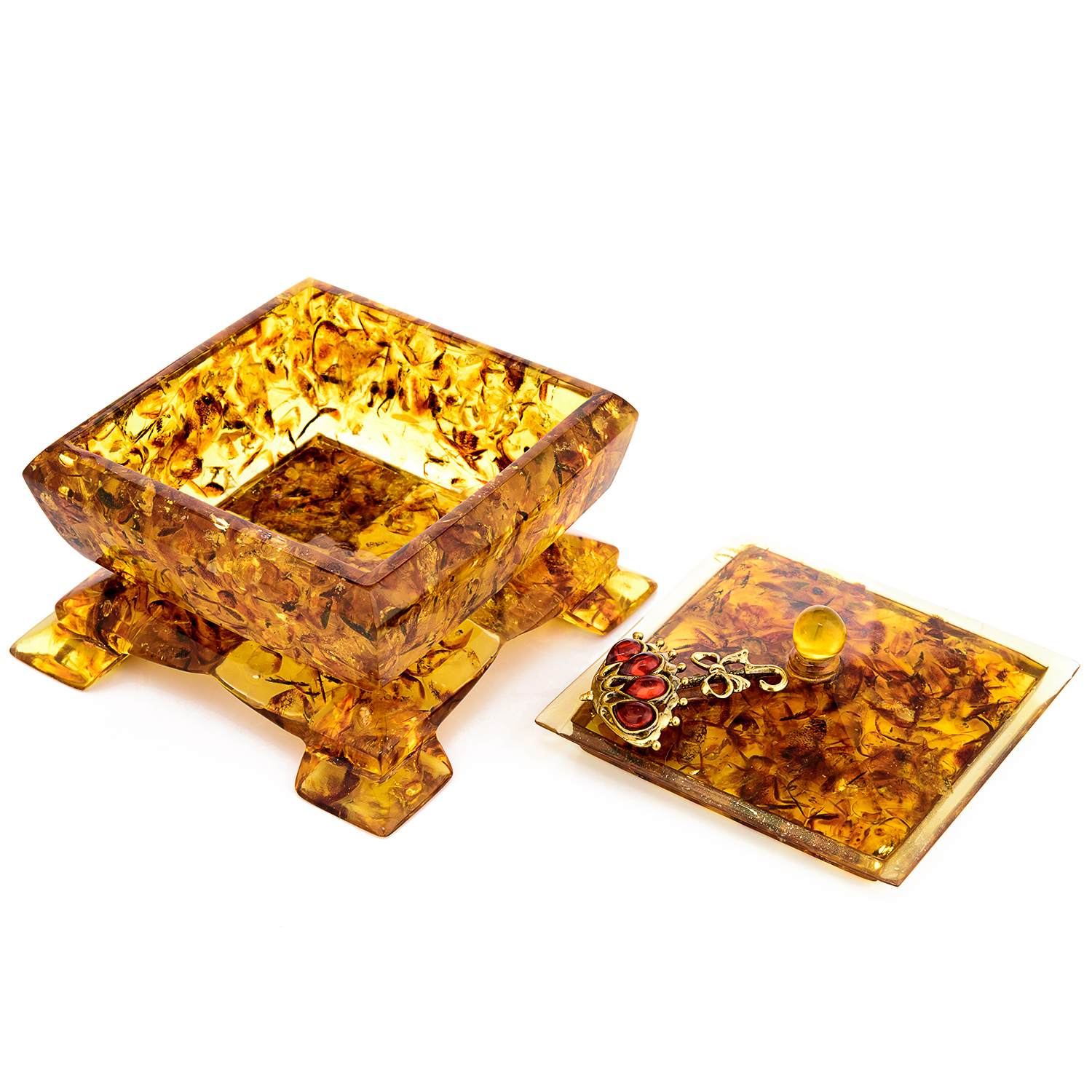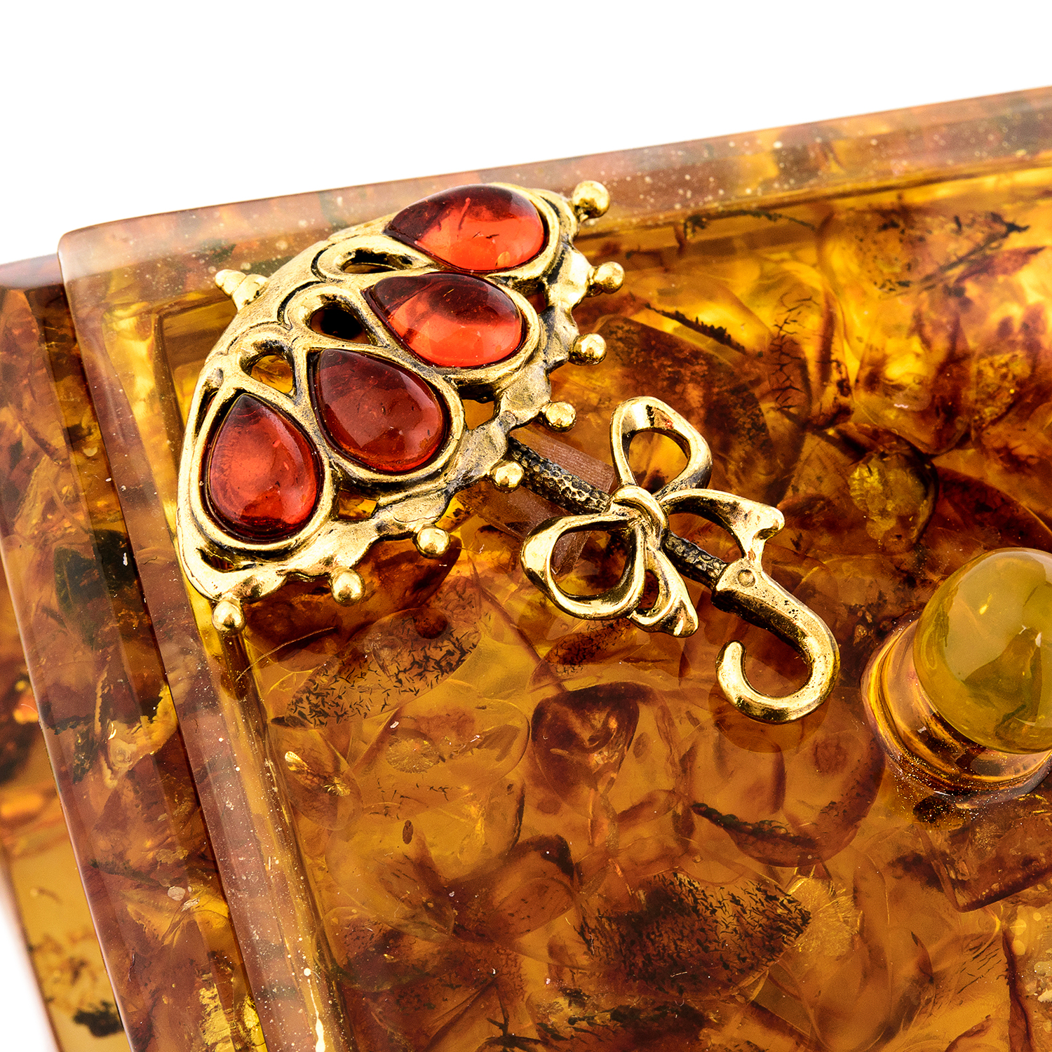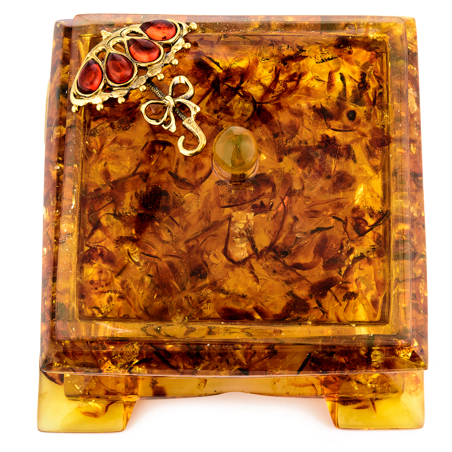 Шкатулка из янтаря квадратная "Зонтик"