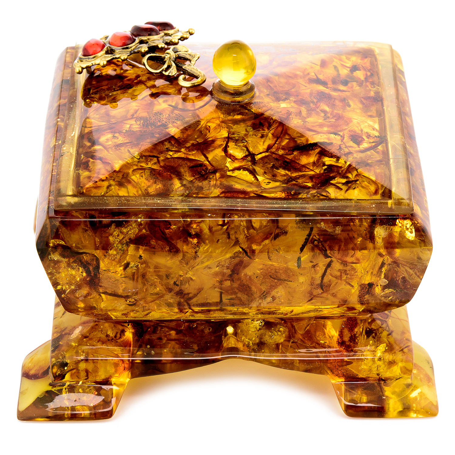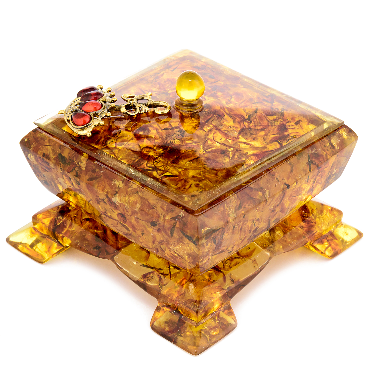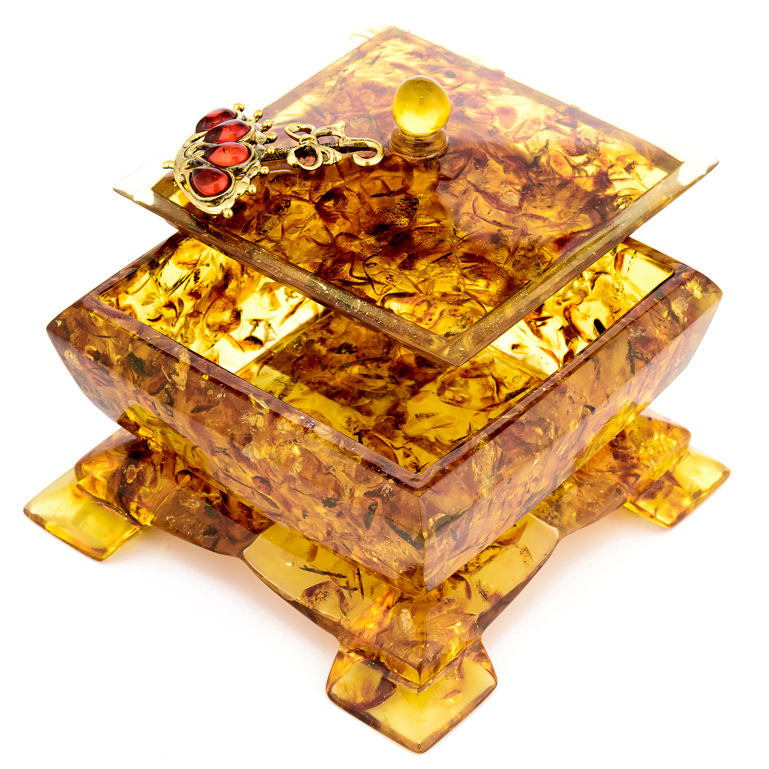 Шкатулка из янтаря квадратная "Зонтик"