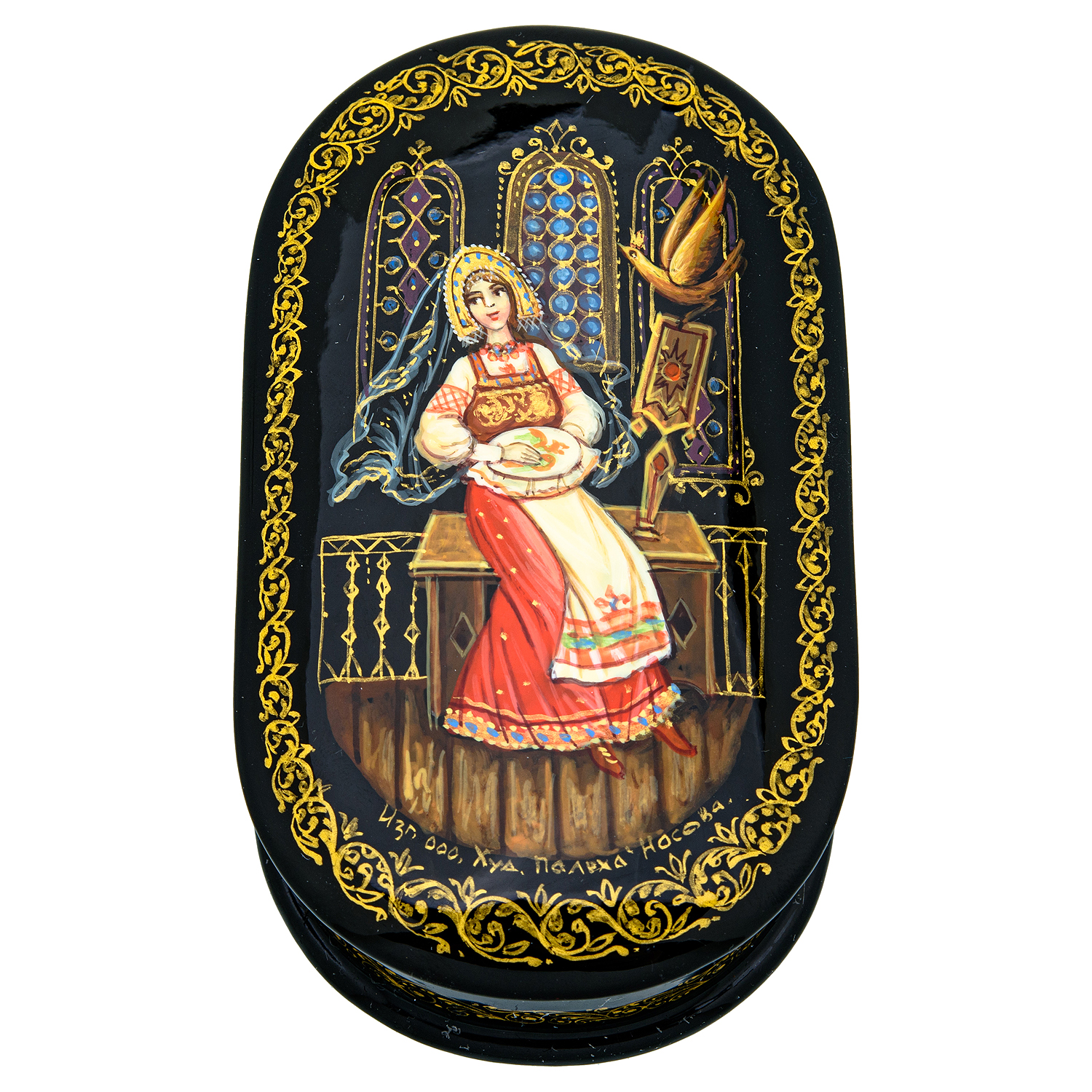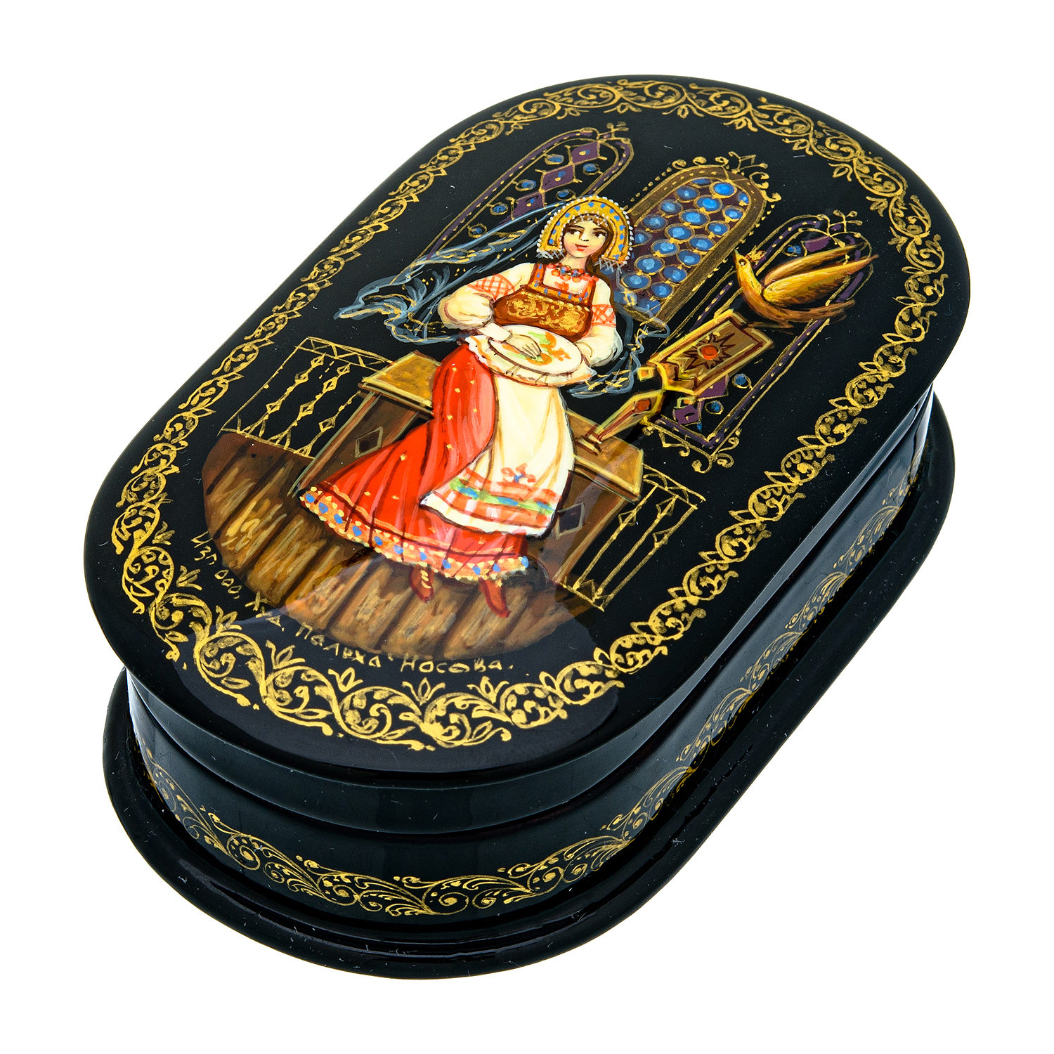 Шкатулка с художественной росписью "Вышивальщица"