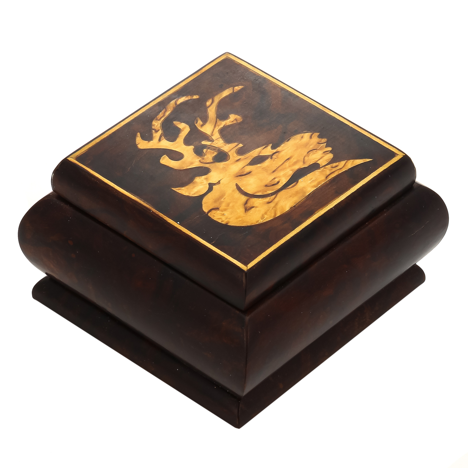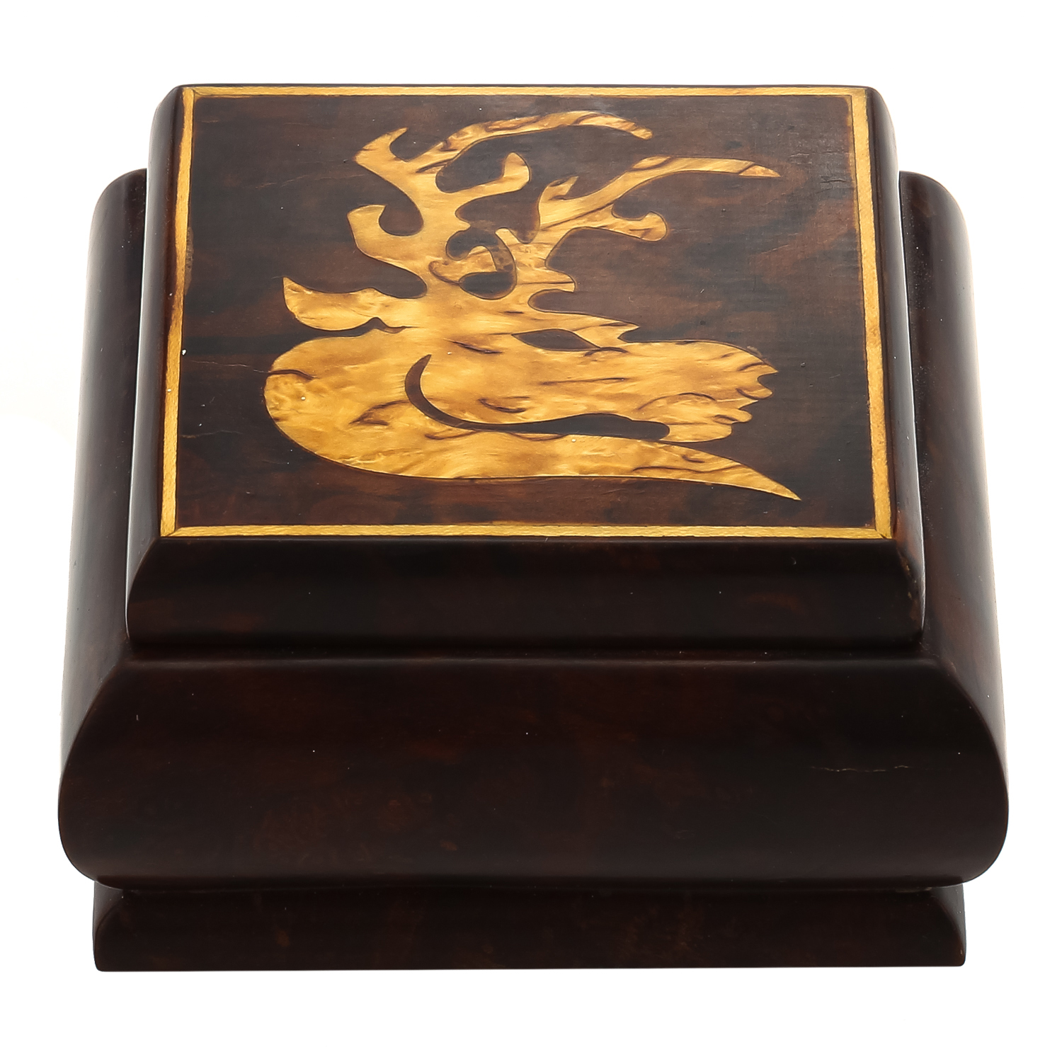 Русские подарки и сувениры → Шкатулки → Деревянная шкатулка "Олень". Карельская береза, корень ореха