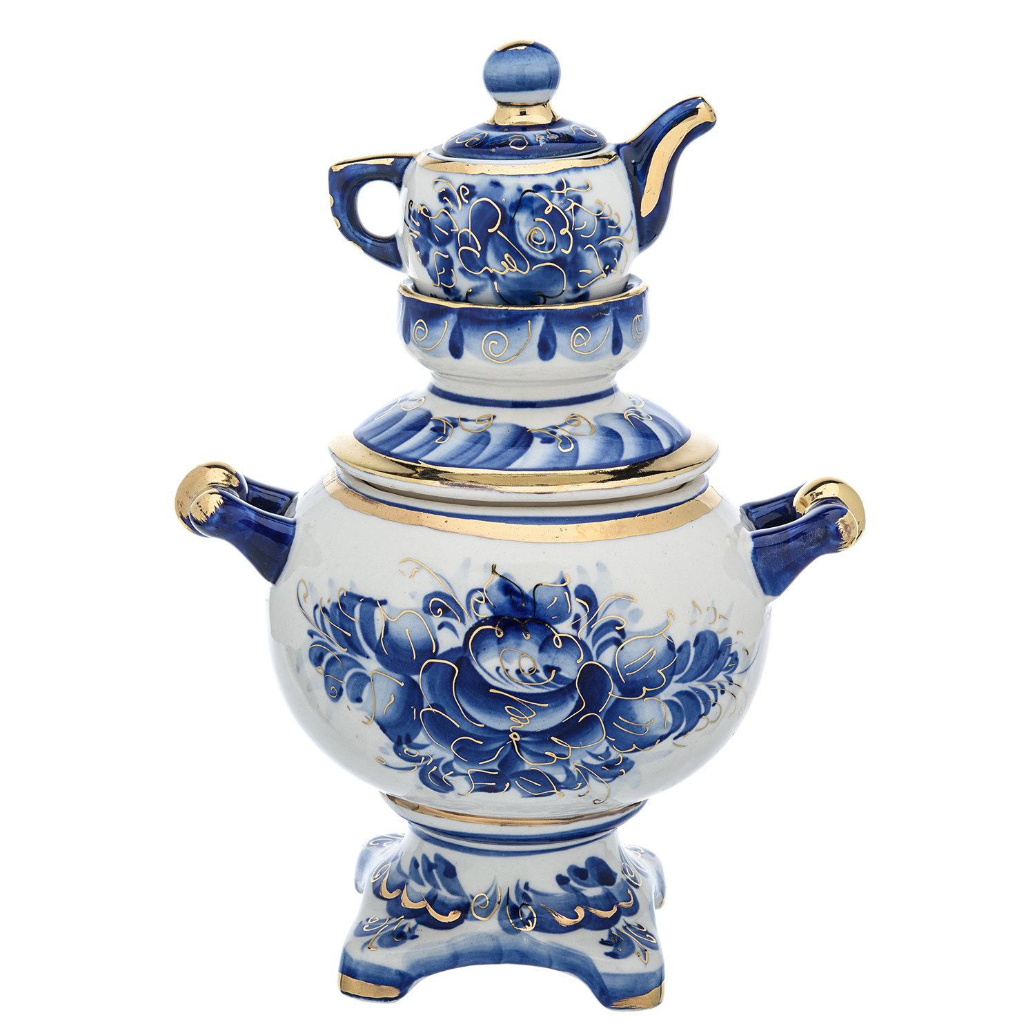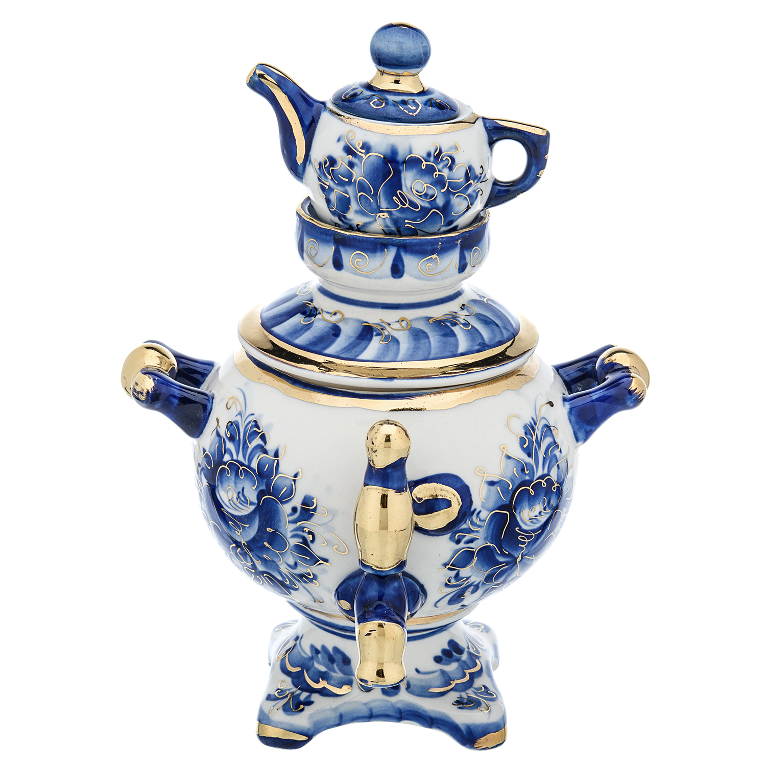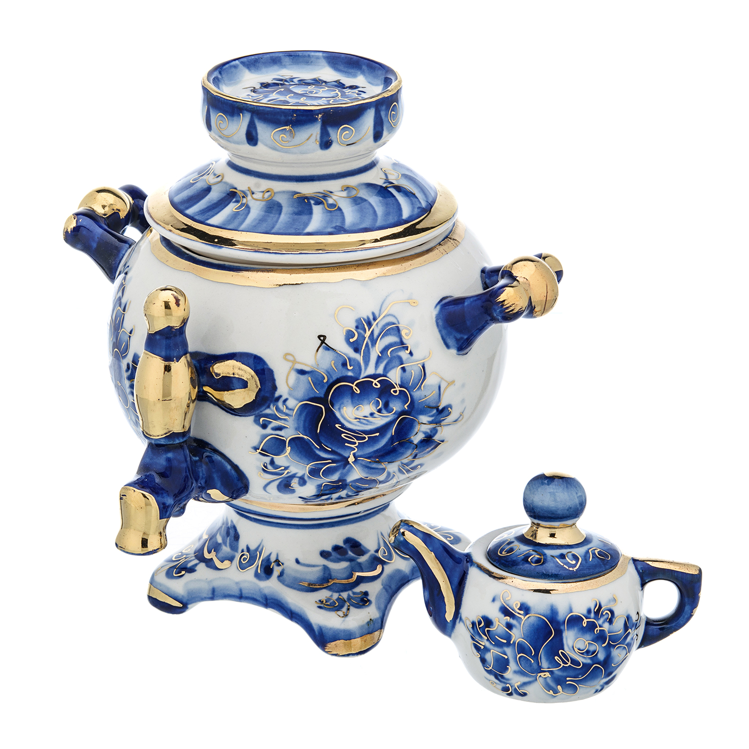Сувенирный самовар-шкатулка. Гжель в золоте