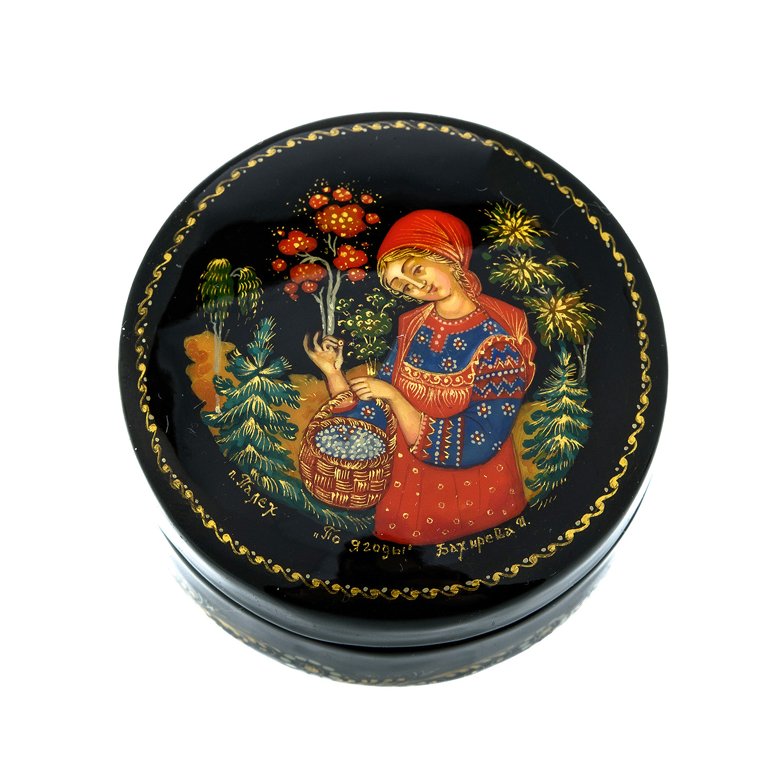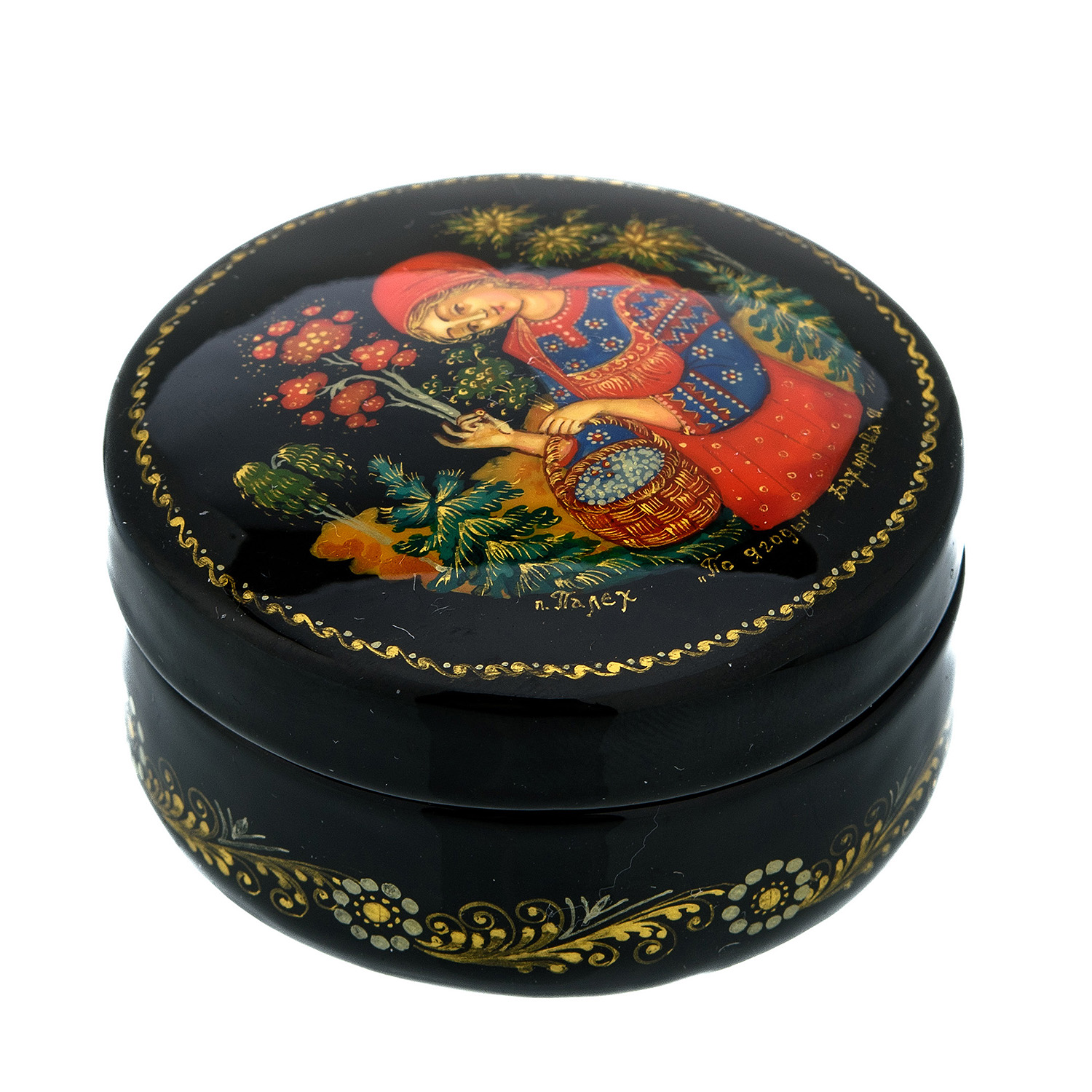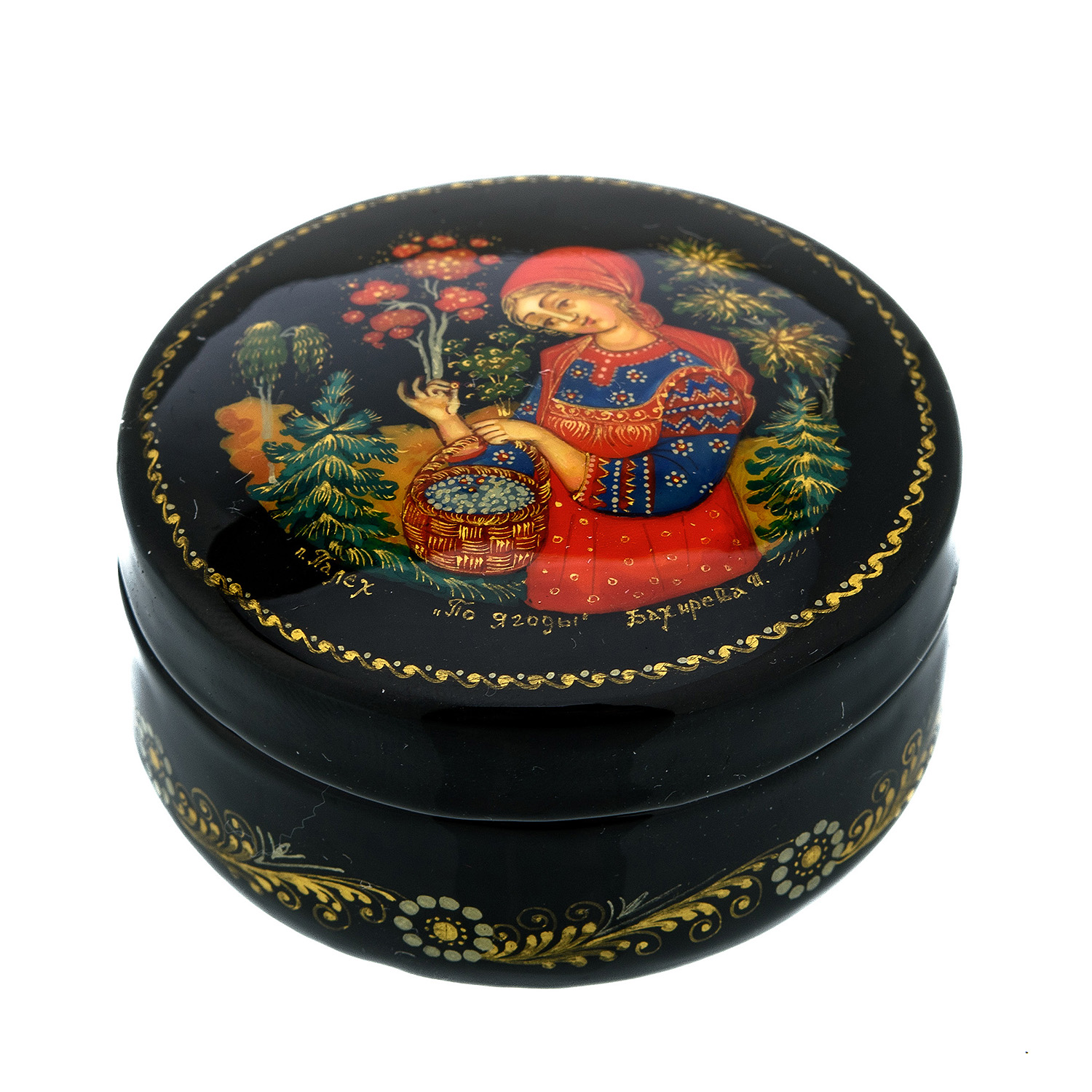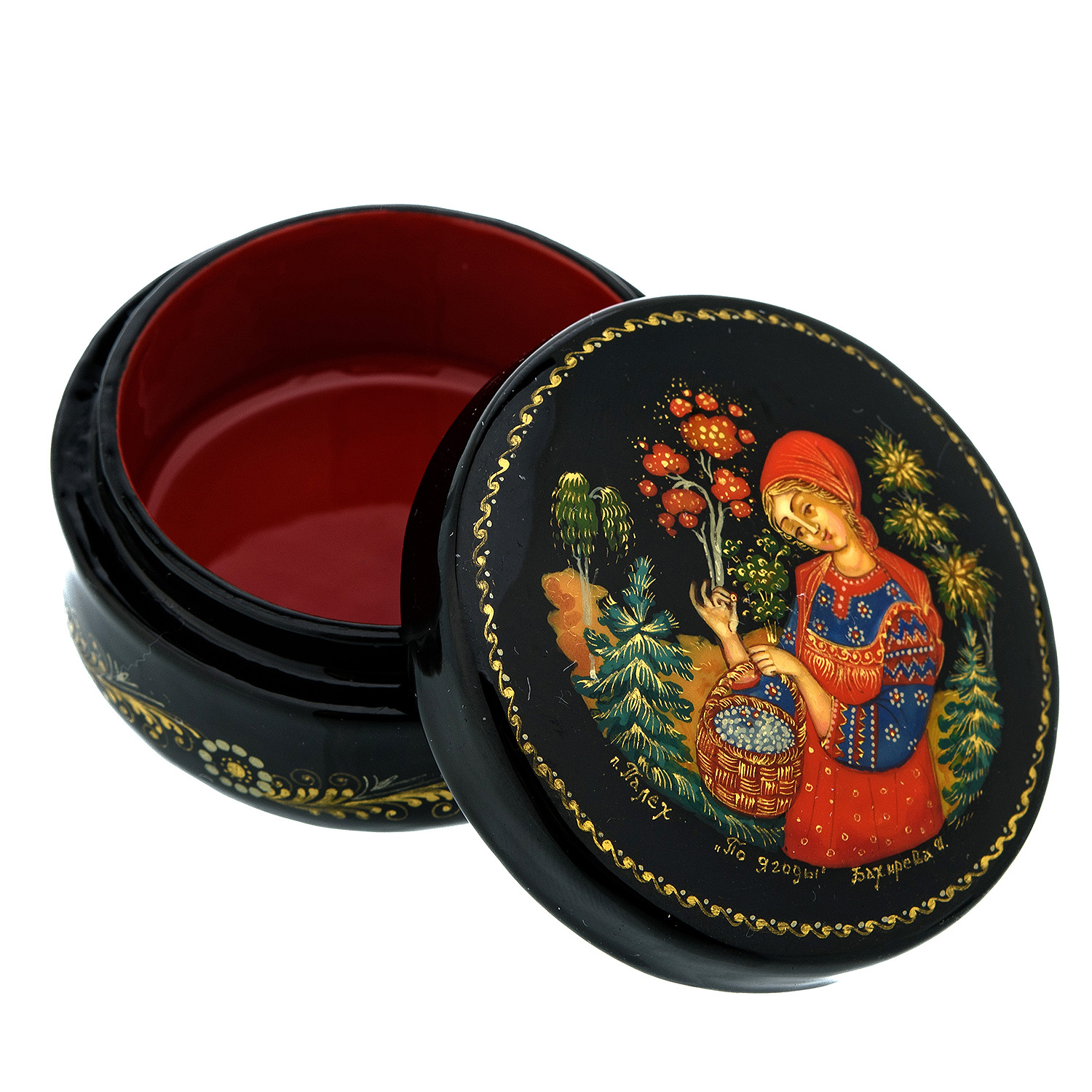 Шкатулка с художественной росписью "По ягоды".Материалы: папье-маше, краски, лак.