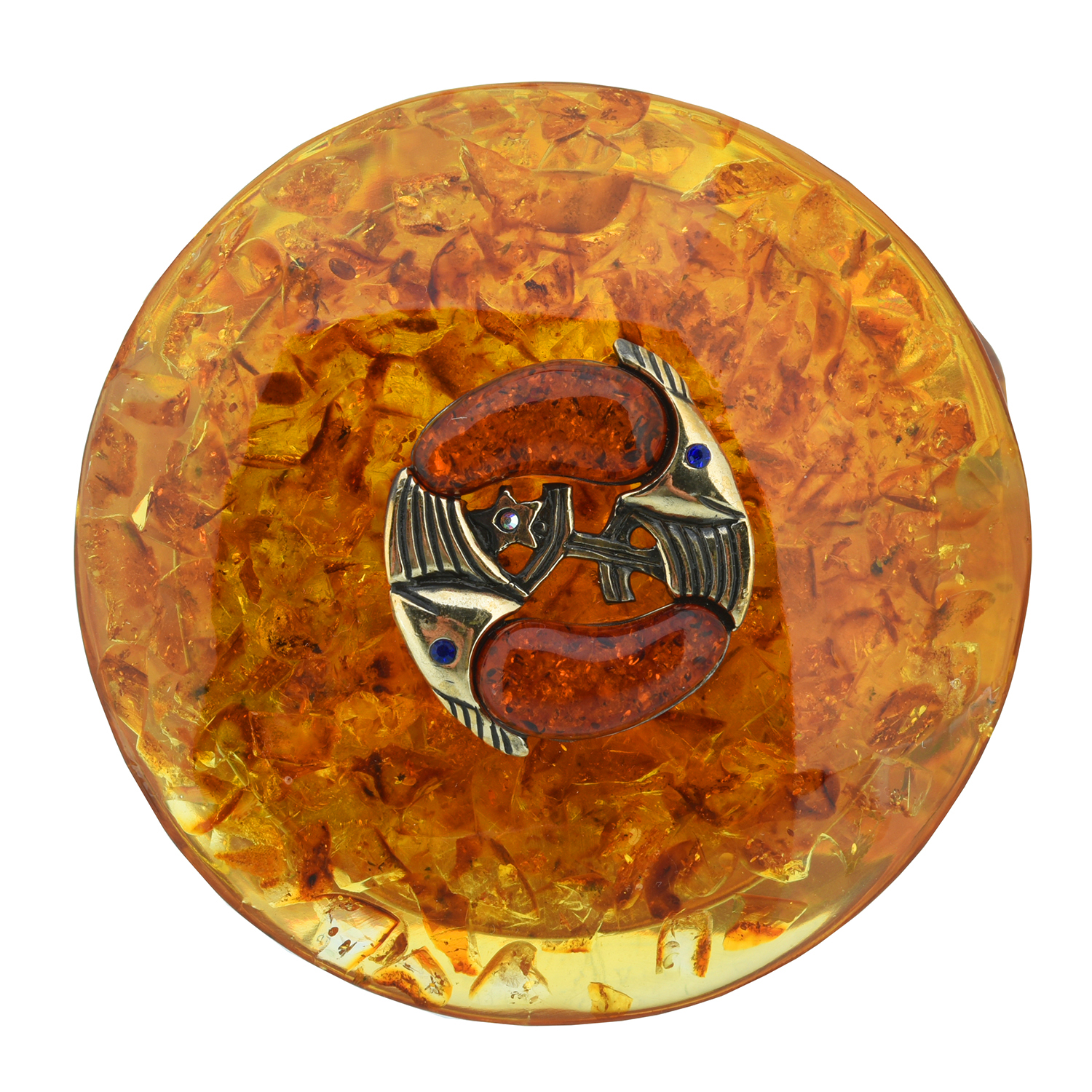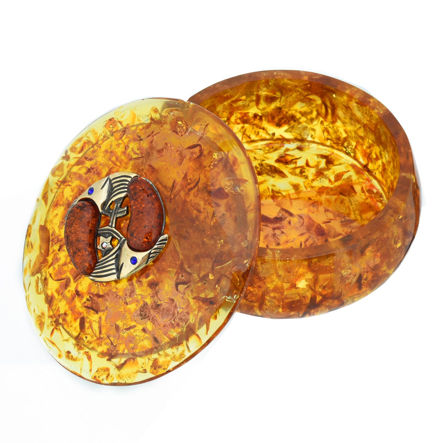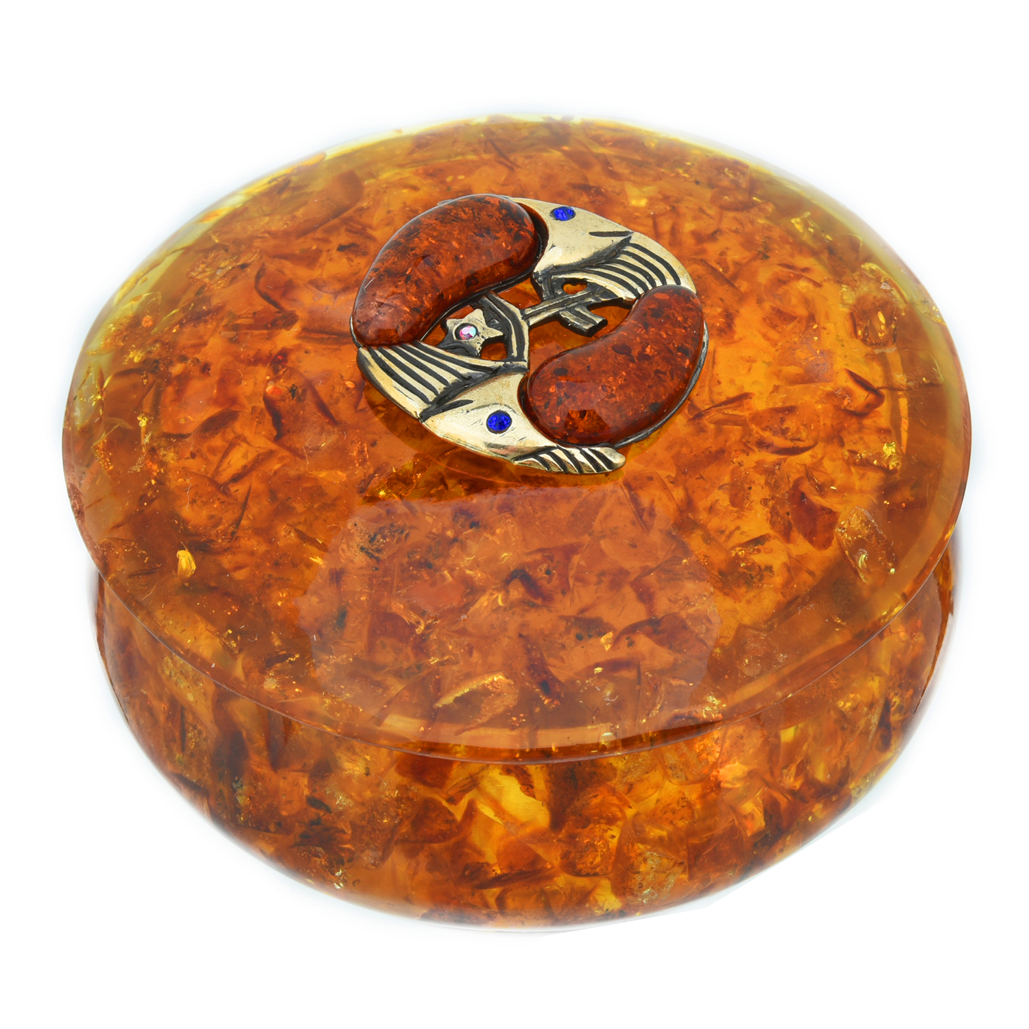 Круглая шкатулка из янтаря "Знак зодиака Рыбы"