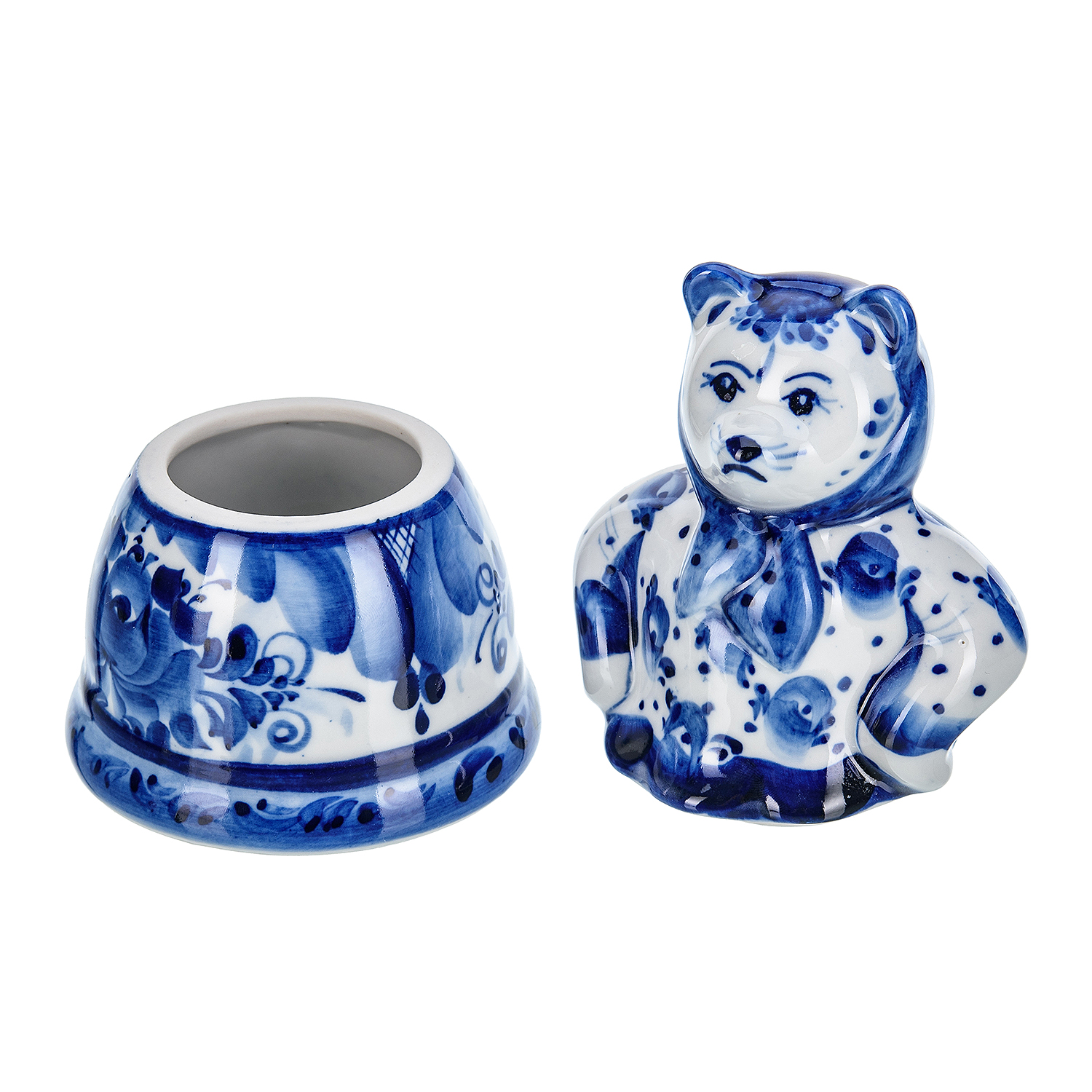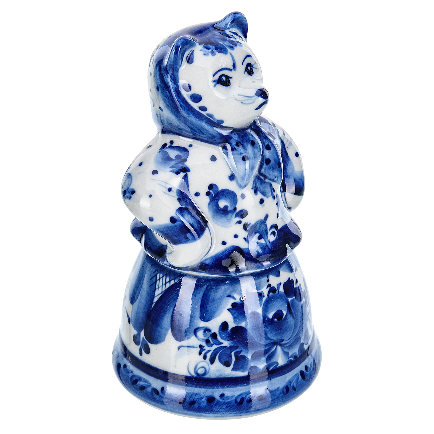 Фарфоровая шкатулка "Медведица в платочке". Гжель