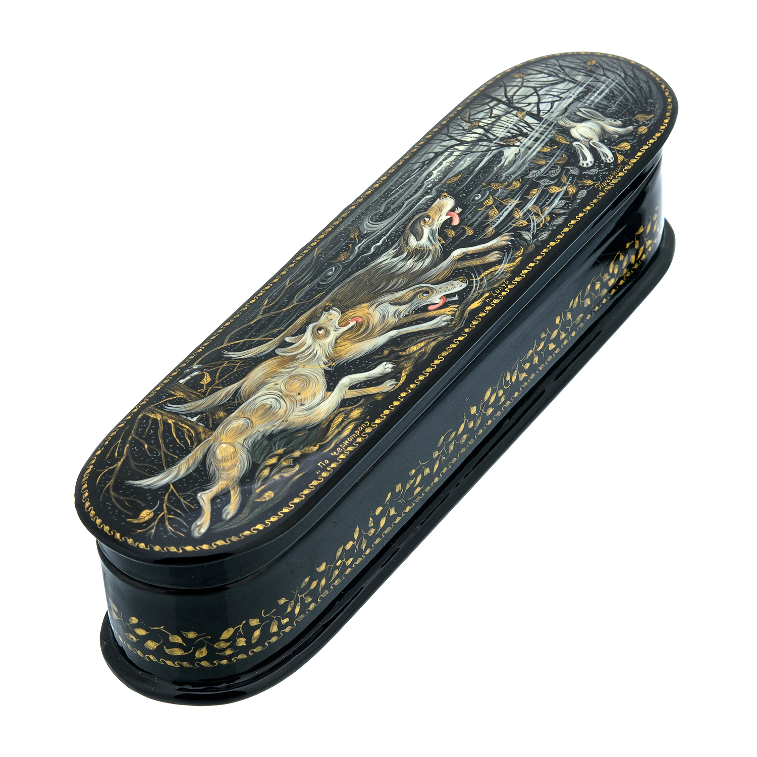 Шкатулка с художественной росписью "Охота. По чернотропу""