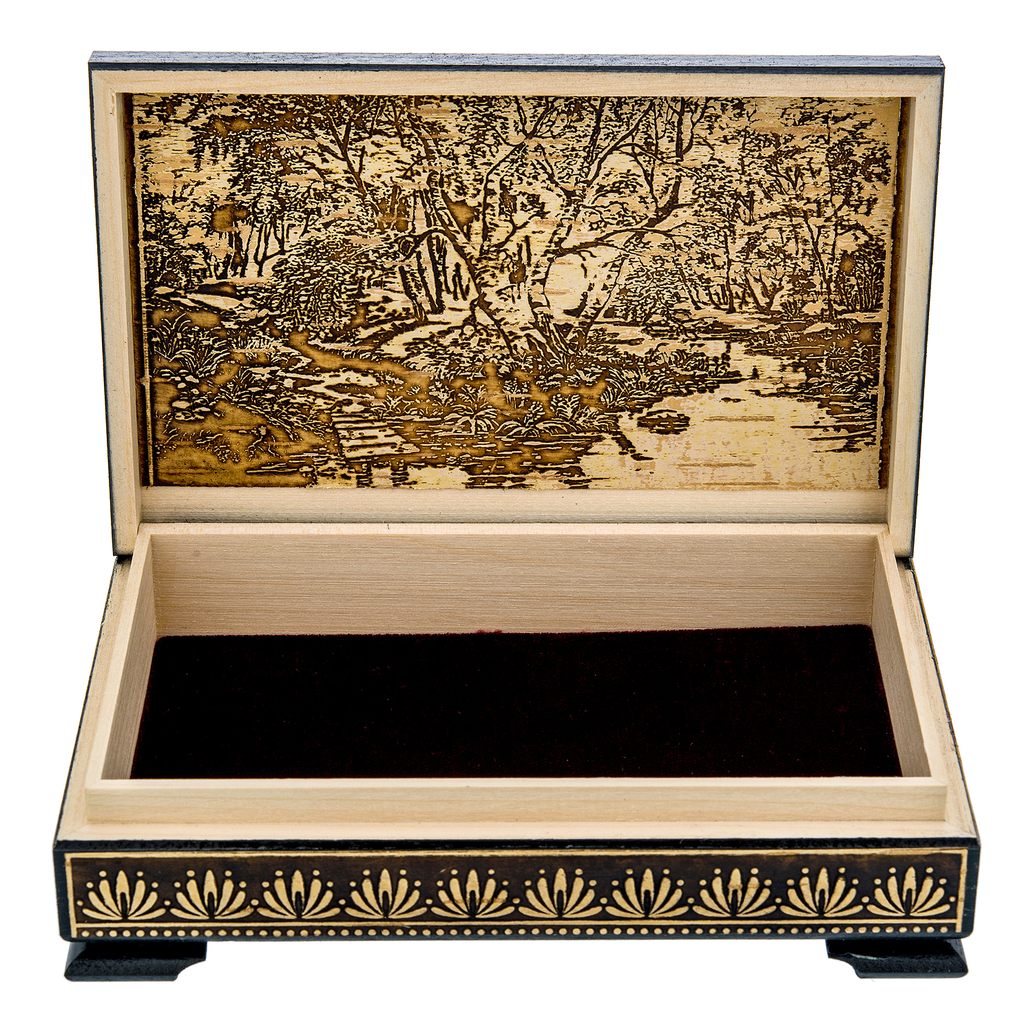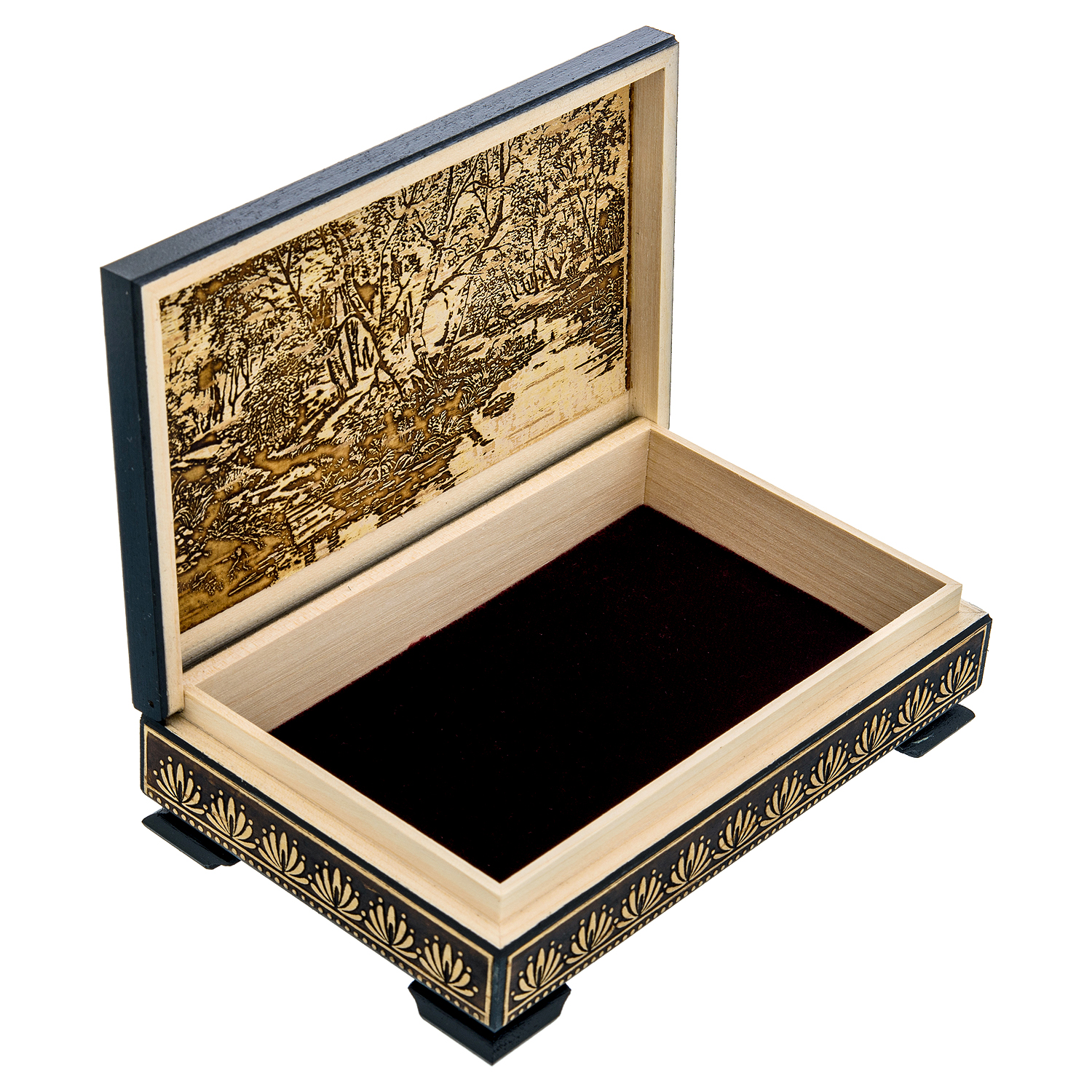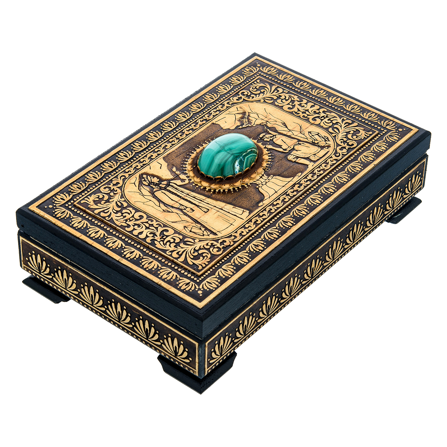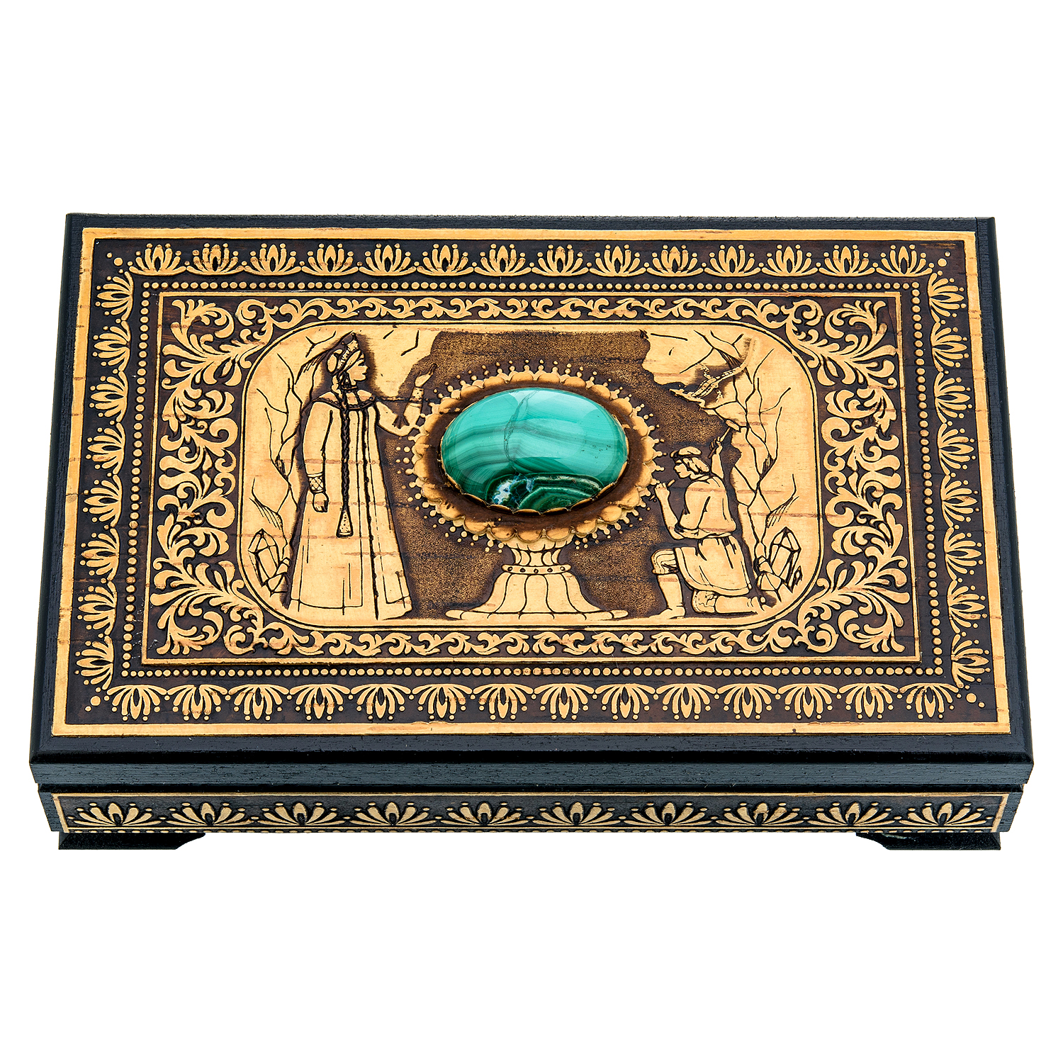 Шкатулка из бересты с малахитом "Каменный цветок"