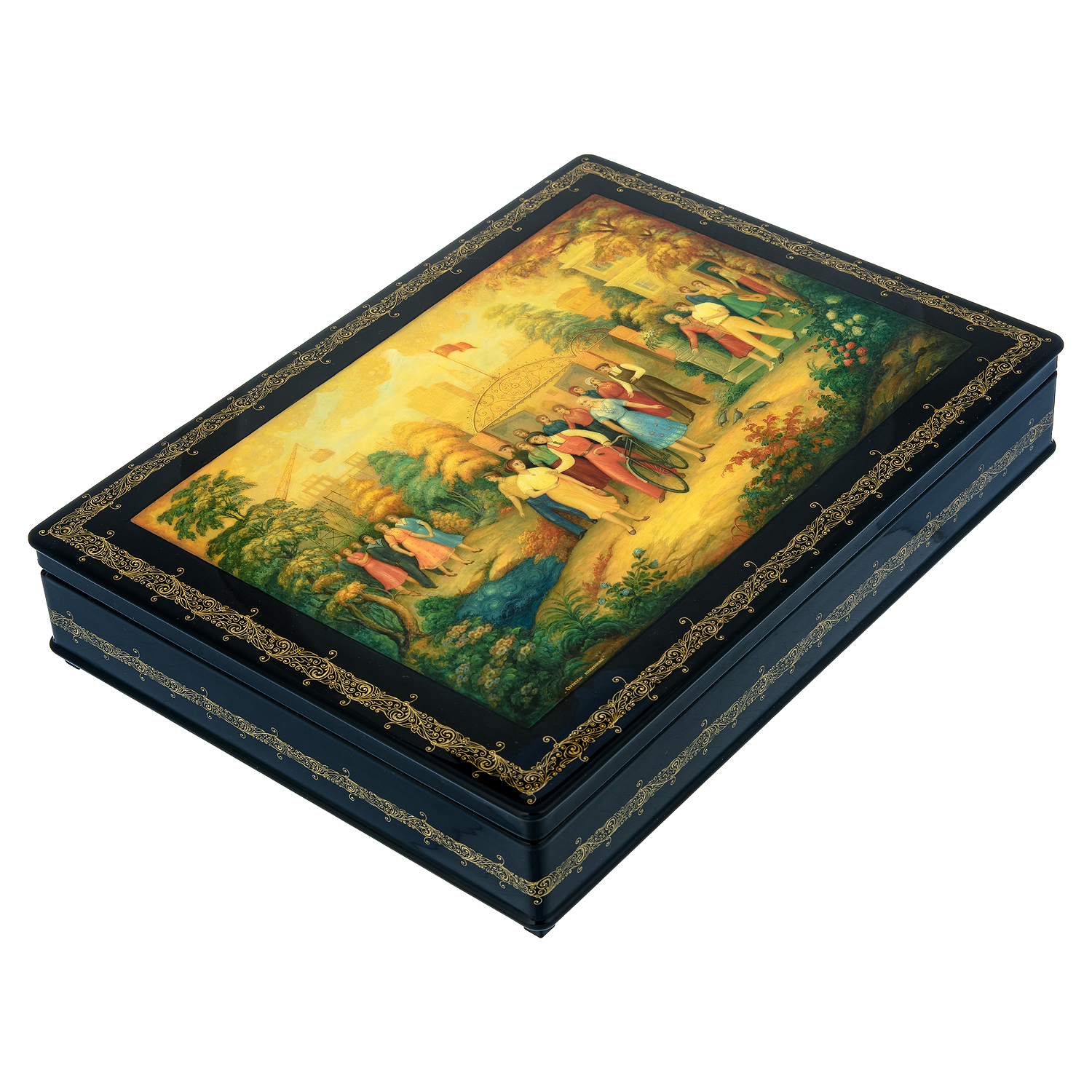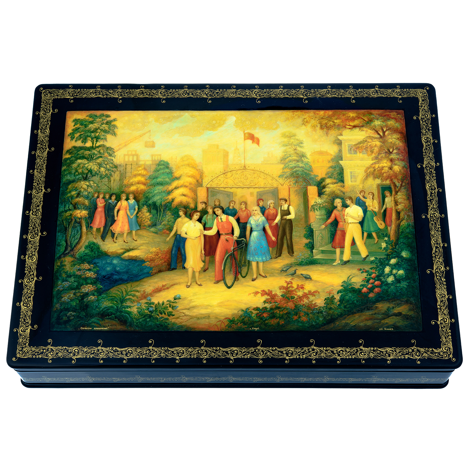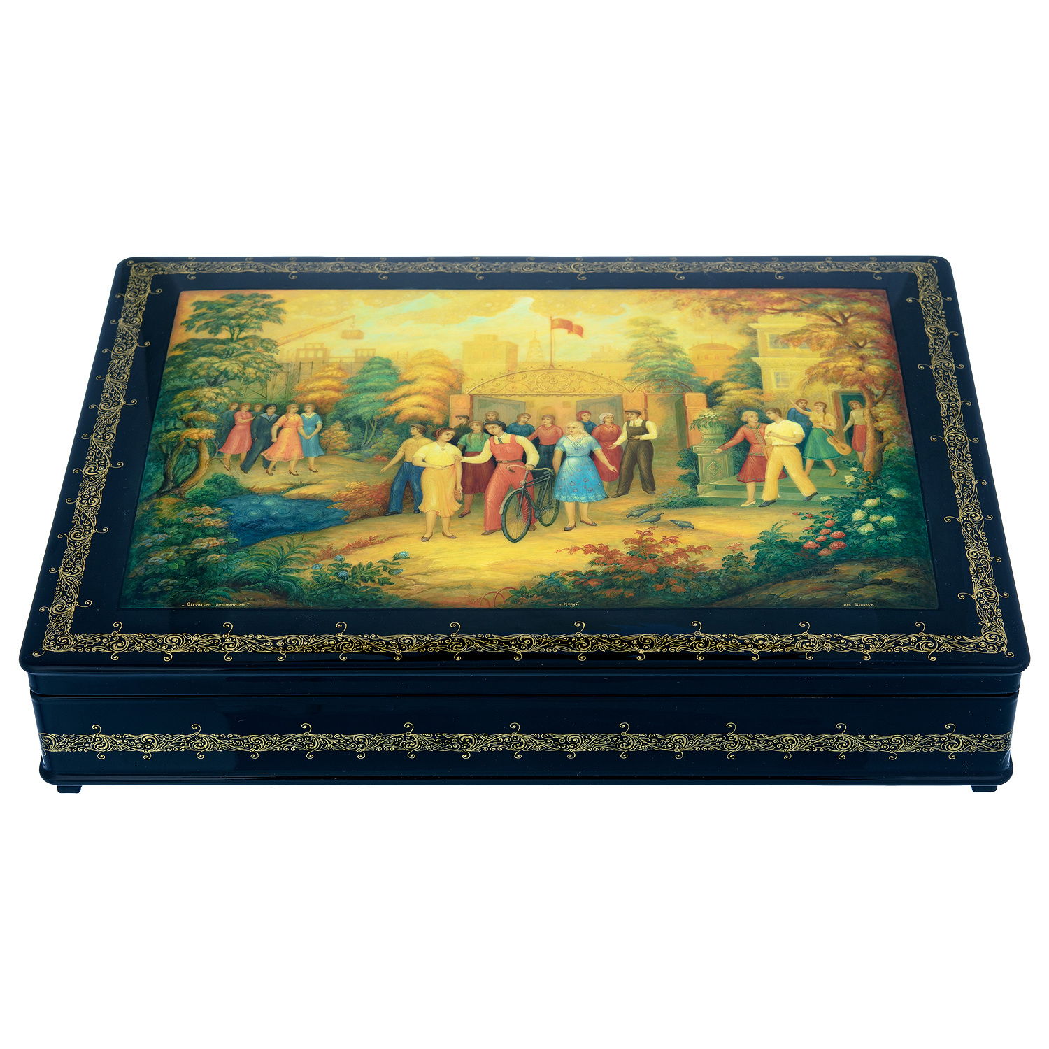 Шкатулка с художественной росписью "Строители коммунизма"