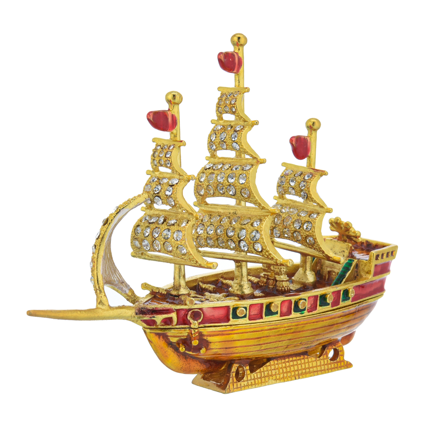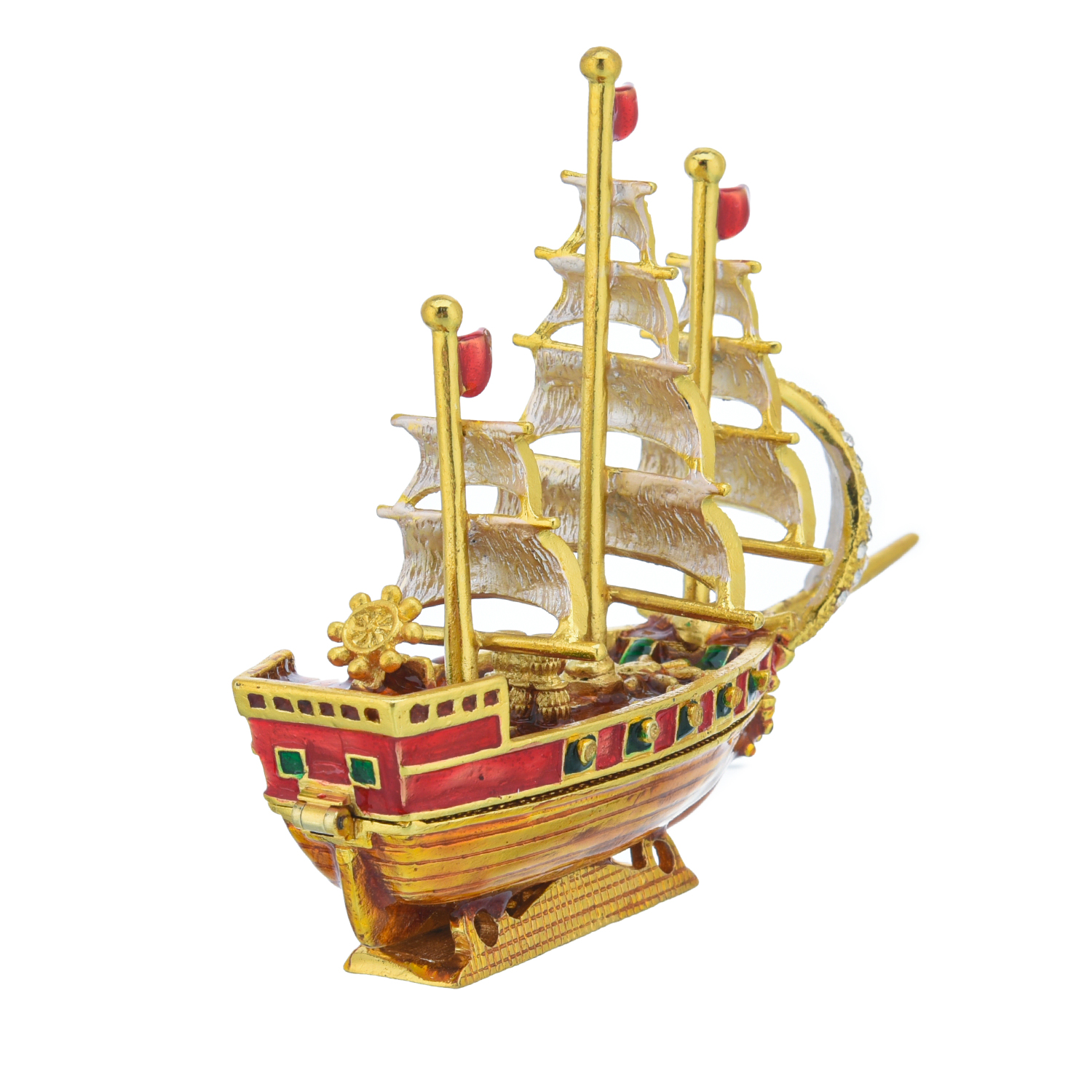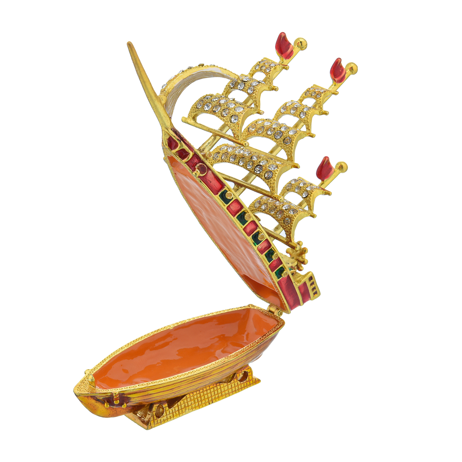 Шкатулка "Корабль". Традиции Фаберже.Материалы: латунь, золочение, эмаль, стразы.