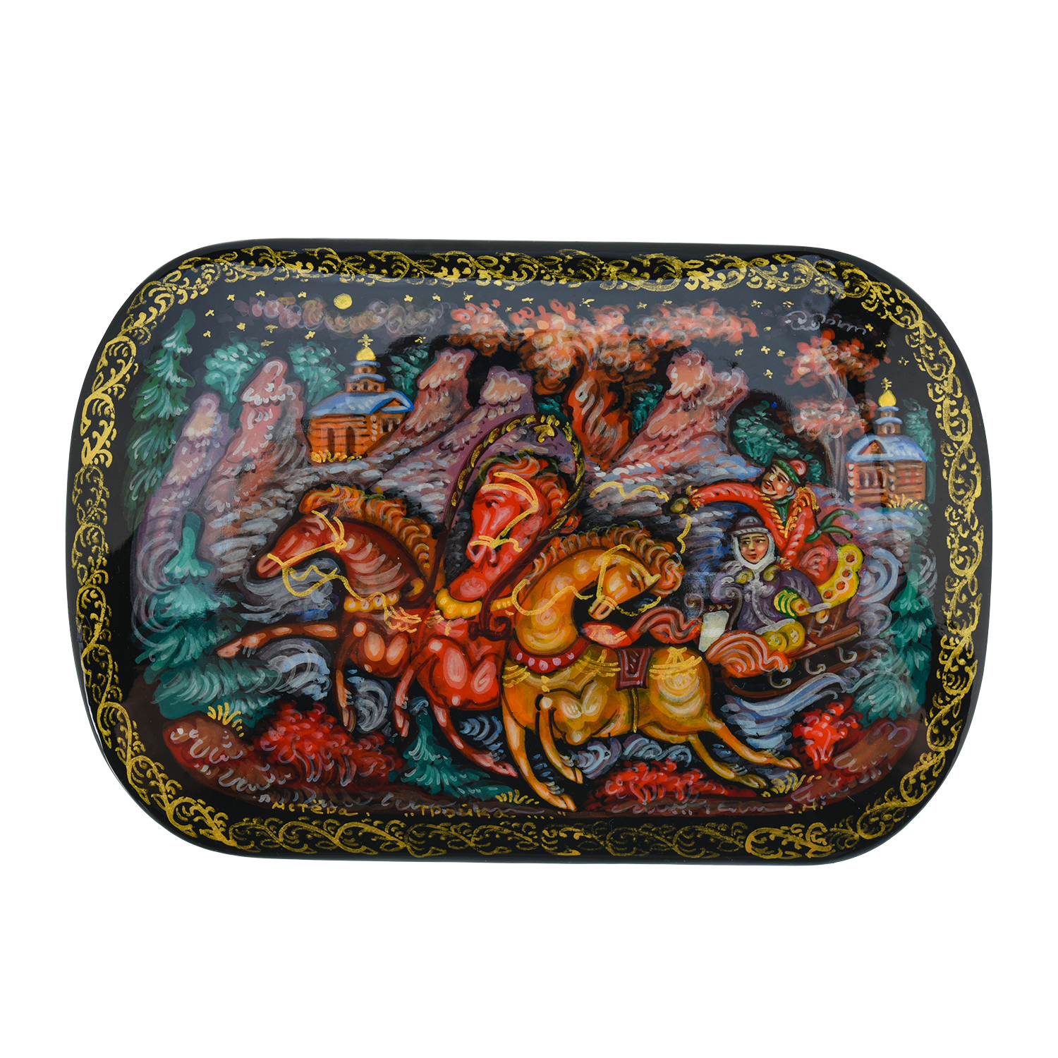 Шкатулка с художественной росписью "Зимняя тройка"