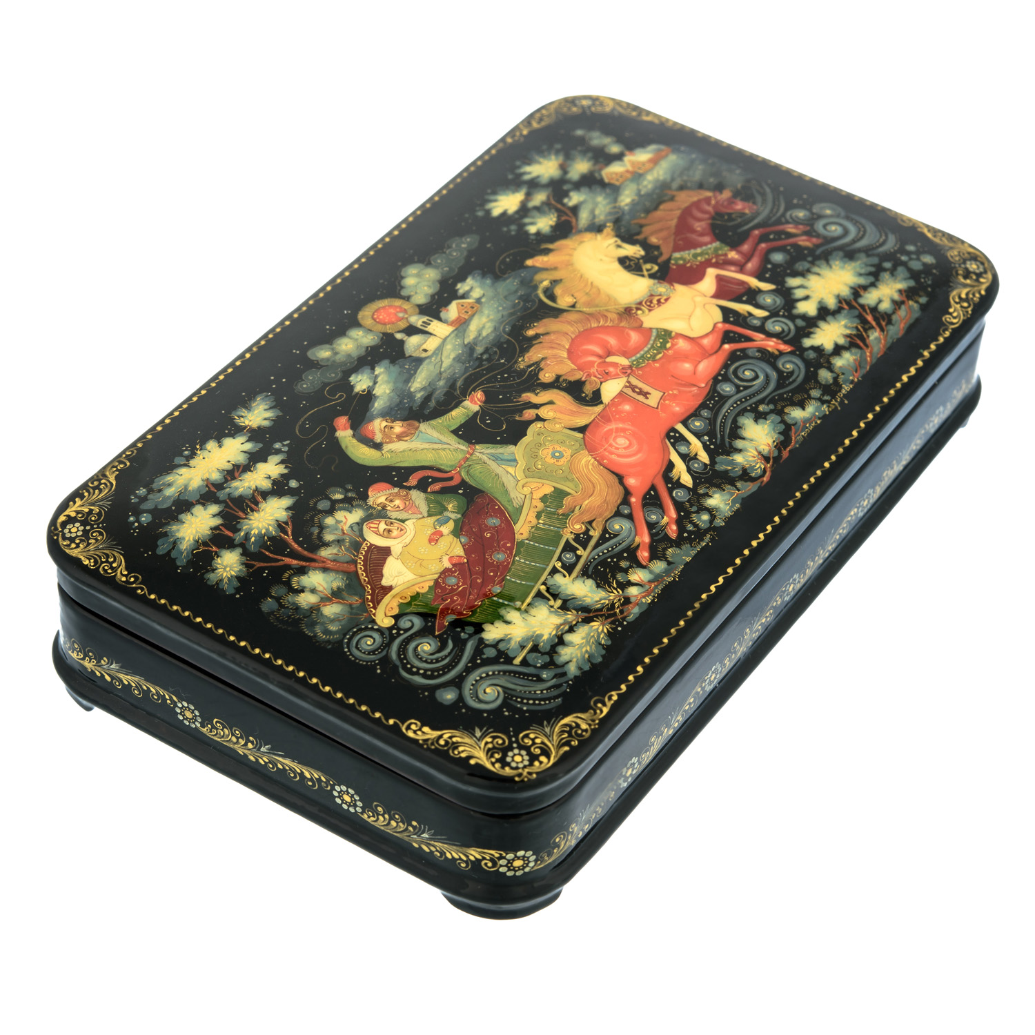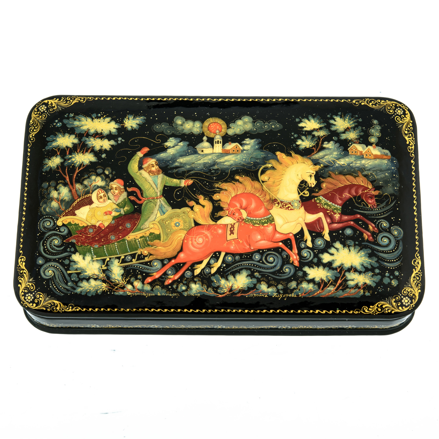 Шкатулка с художественной росписью "Тройка"