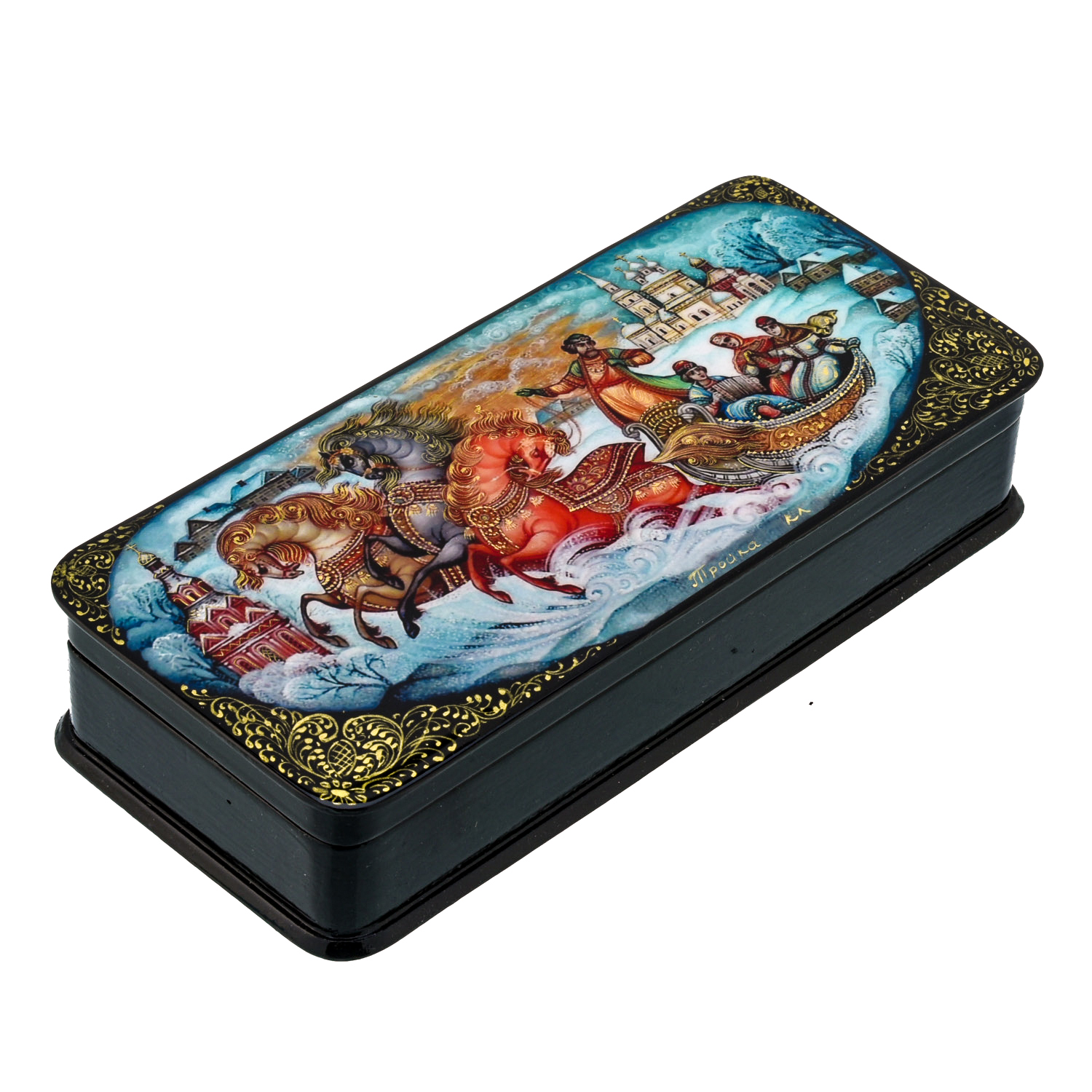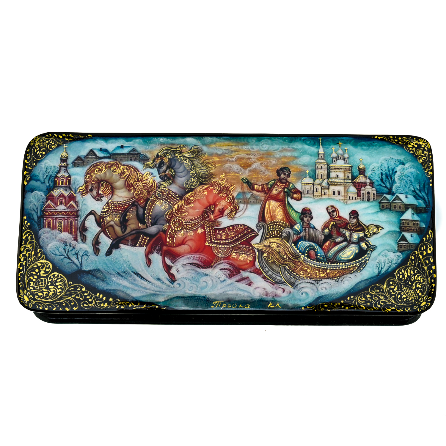 Шкатулка с художественной росписью "Зимняя тройка"