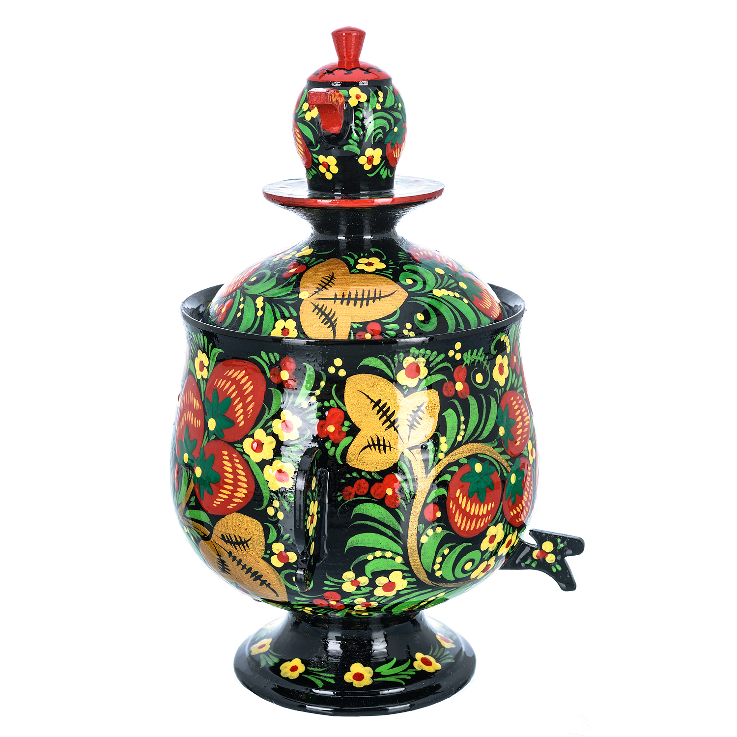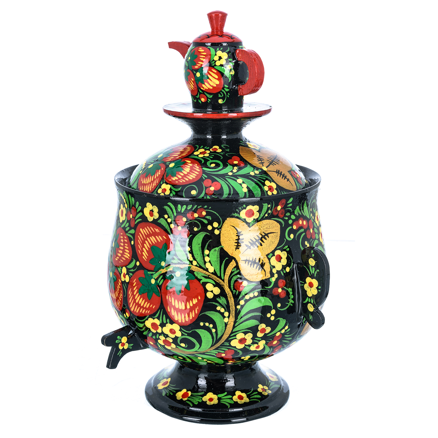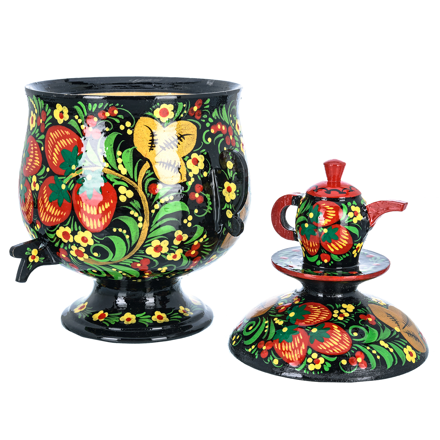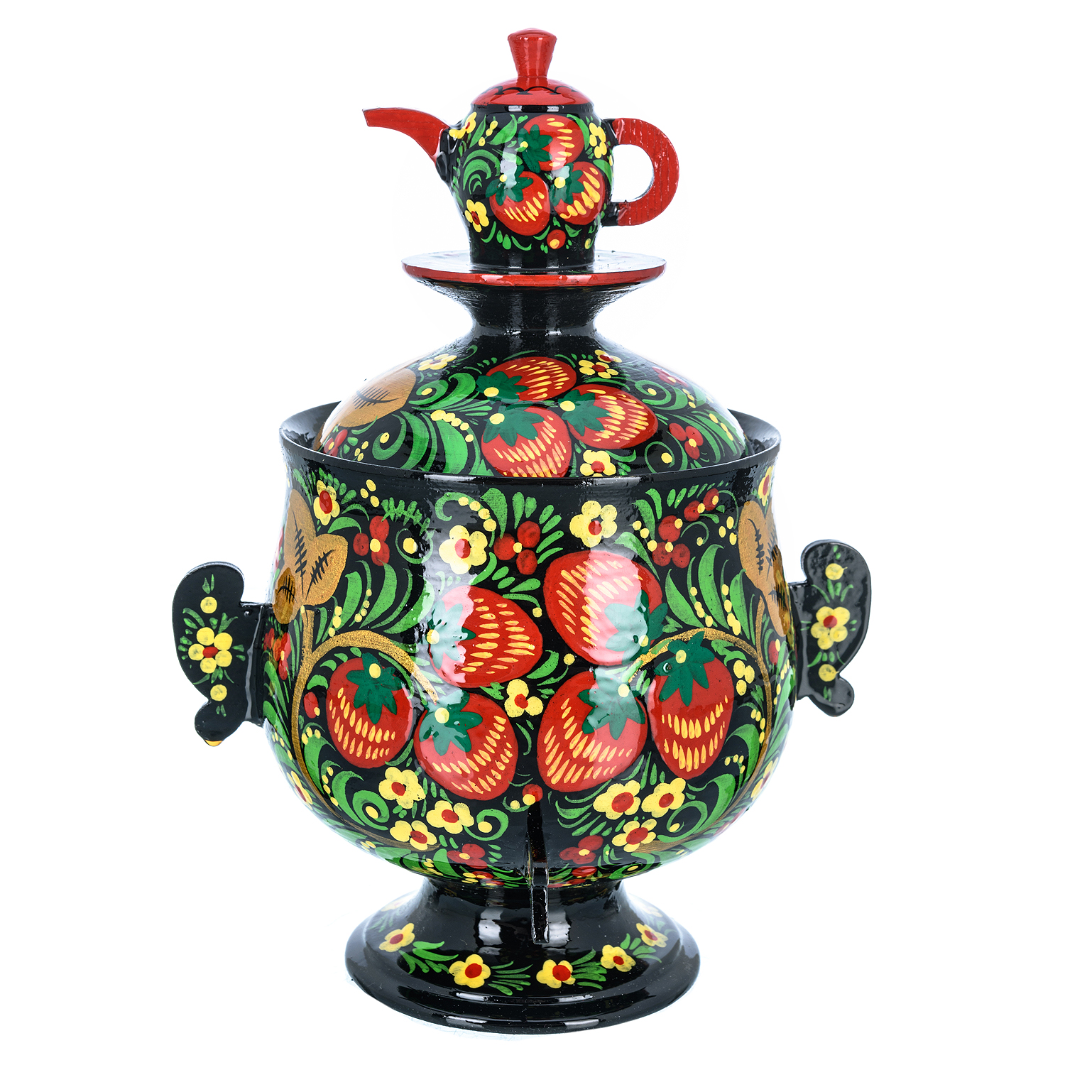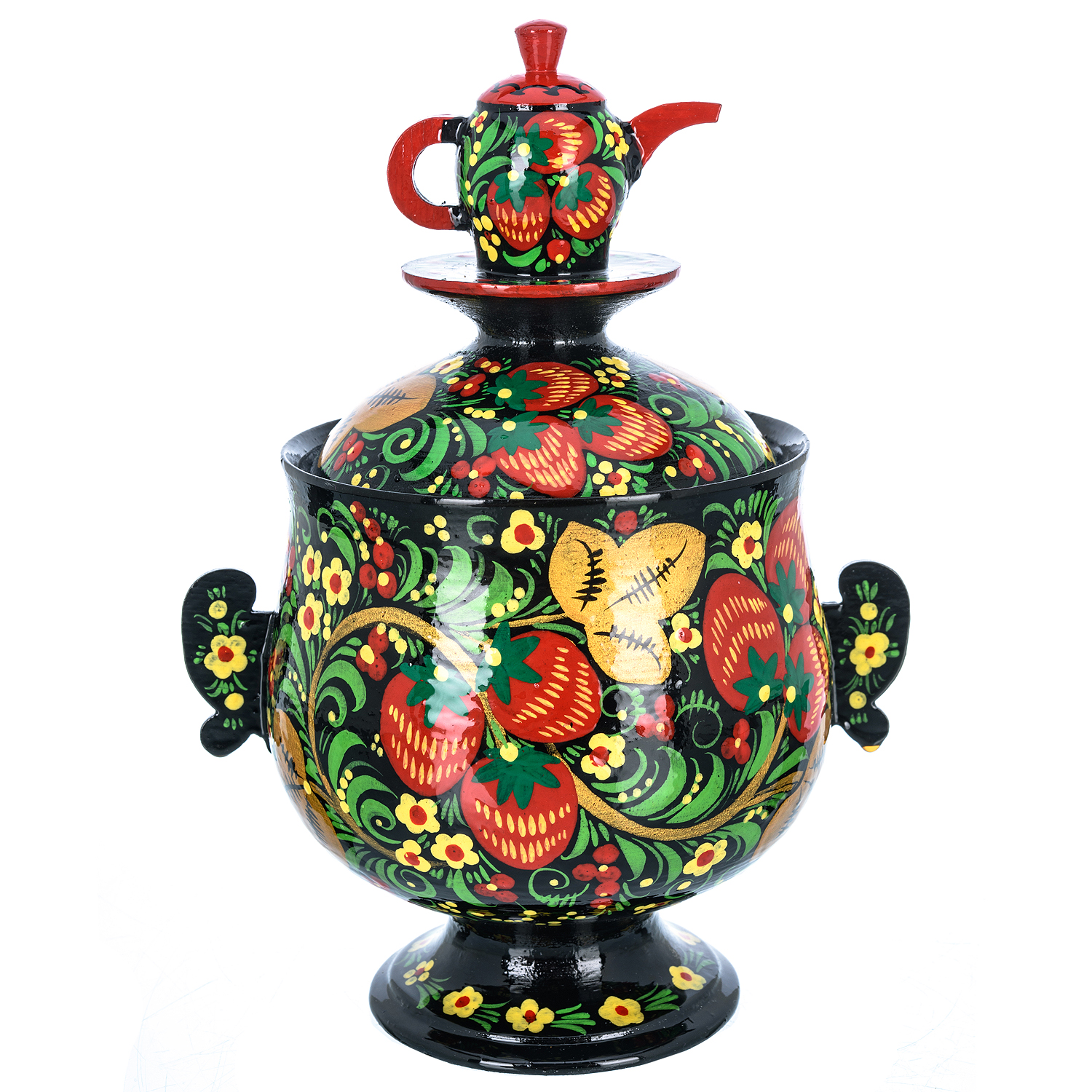 Сувенирный самовар-шкатулка "Клубника". Хохлома