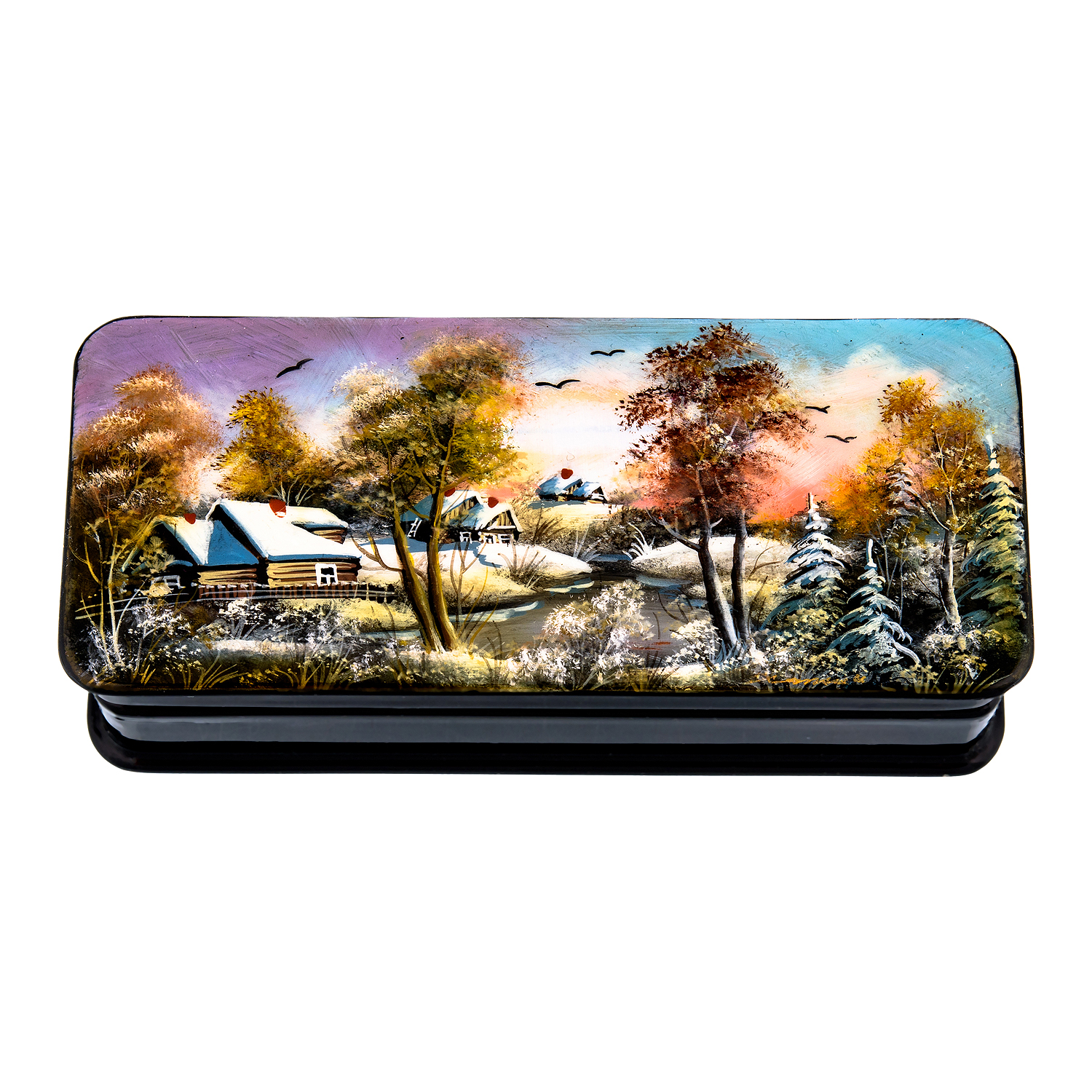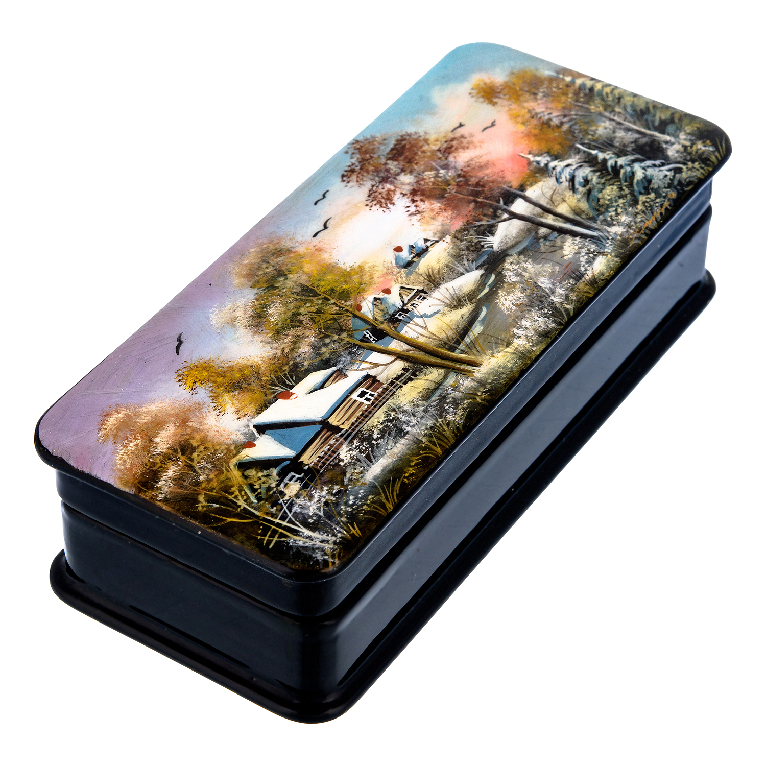 Шкатулка с художественной росписью "Деревенский пейзаж"