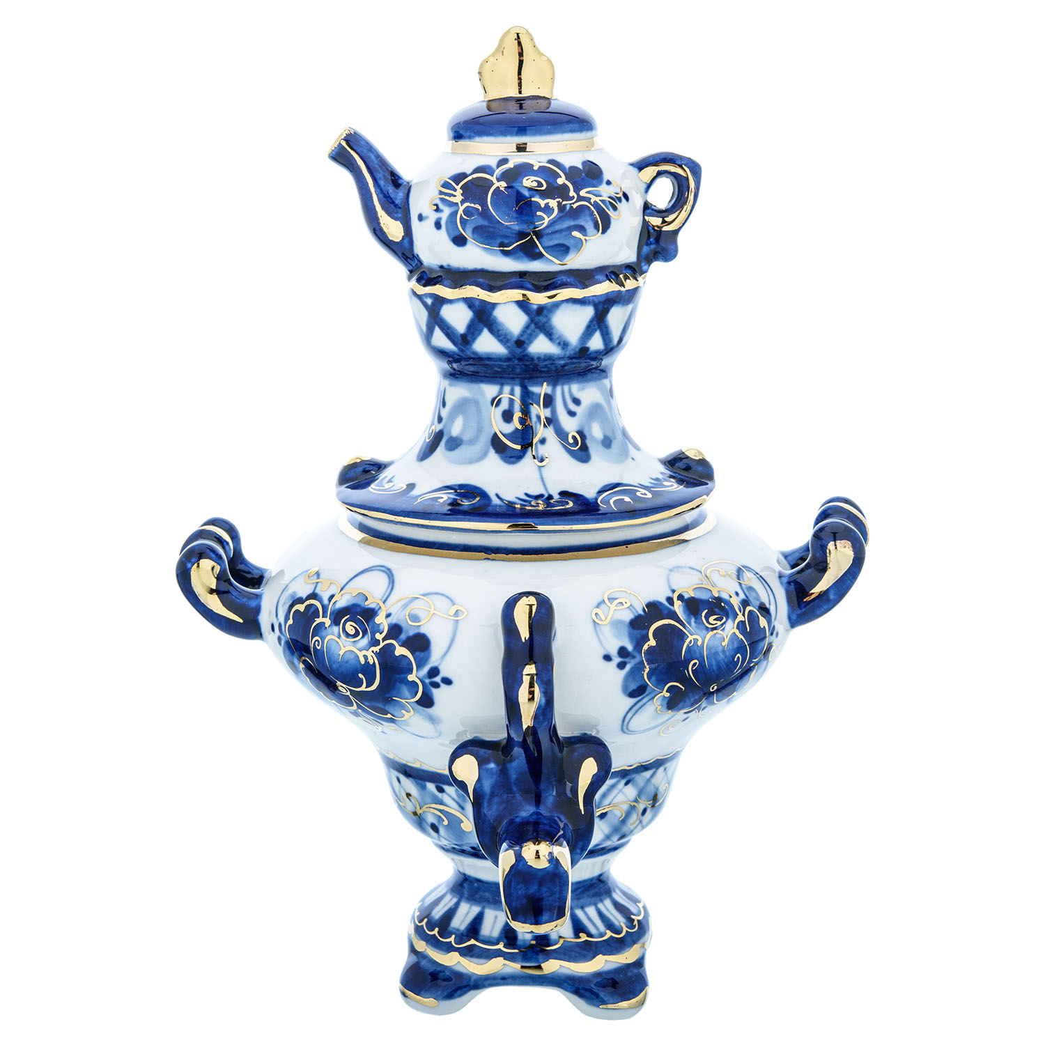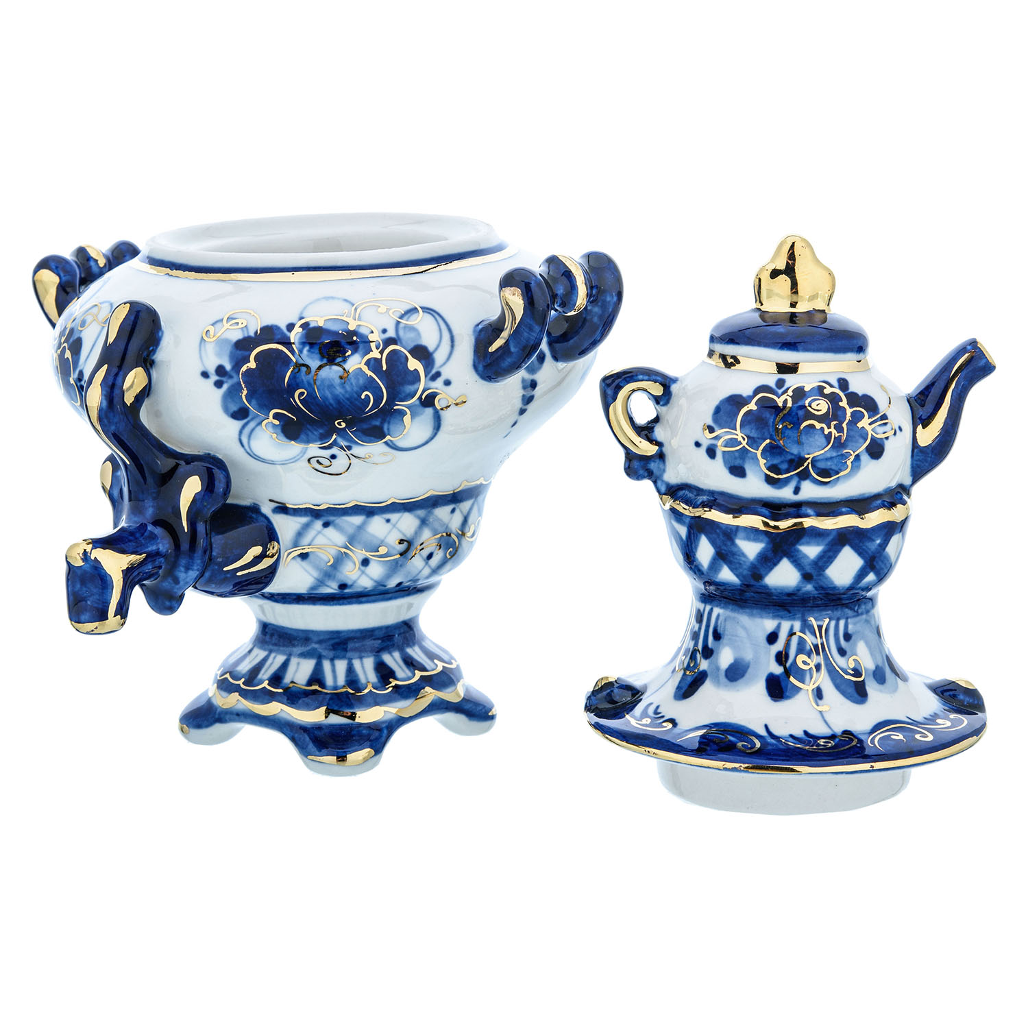 Сувенирный самовар-шкатулка. Гжель в золоте