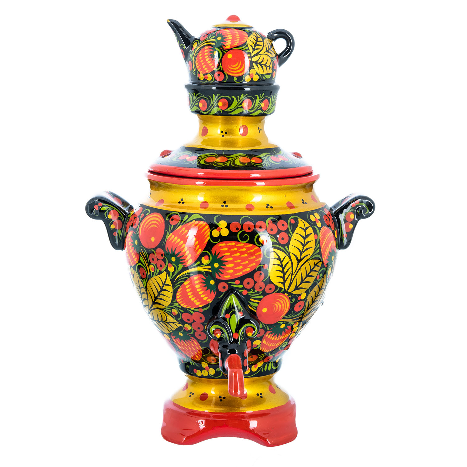 Сувенирный самовар-шкатулка "Клубника". Хохлома