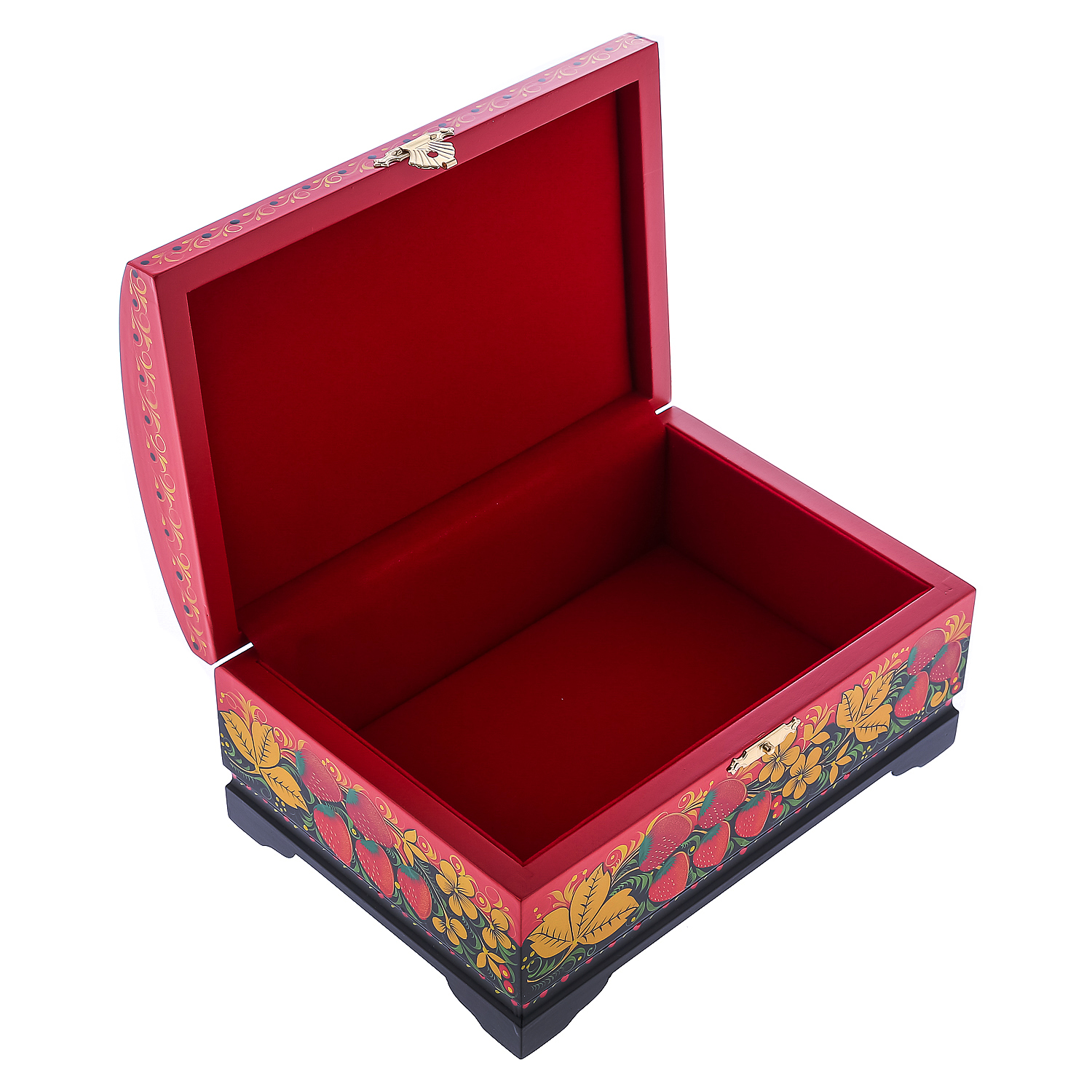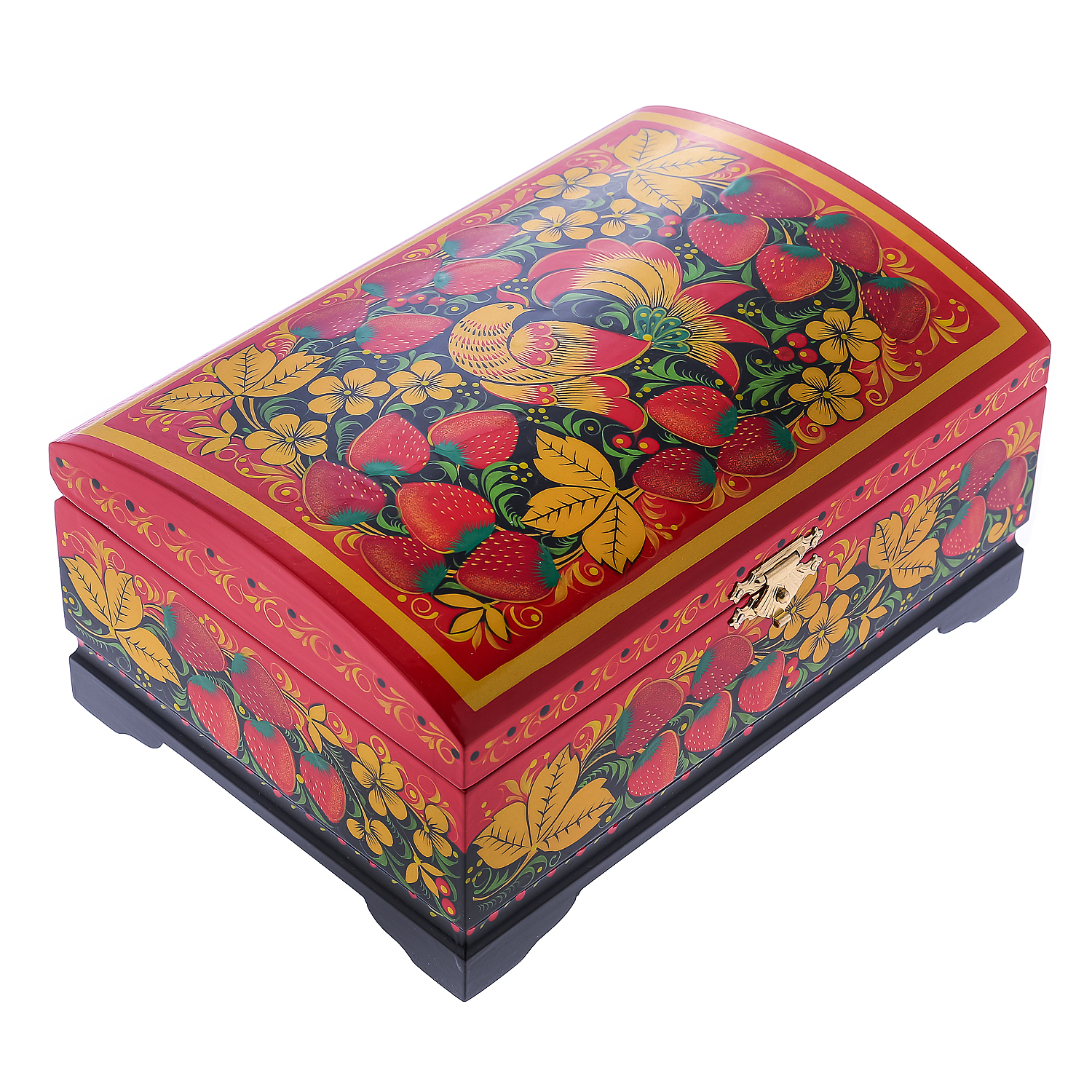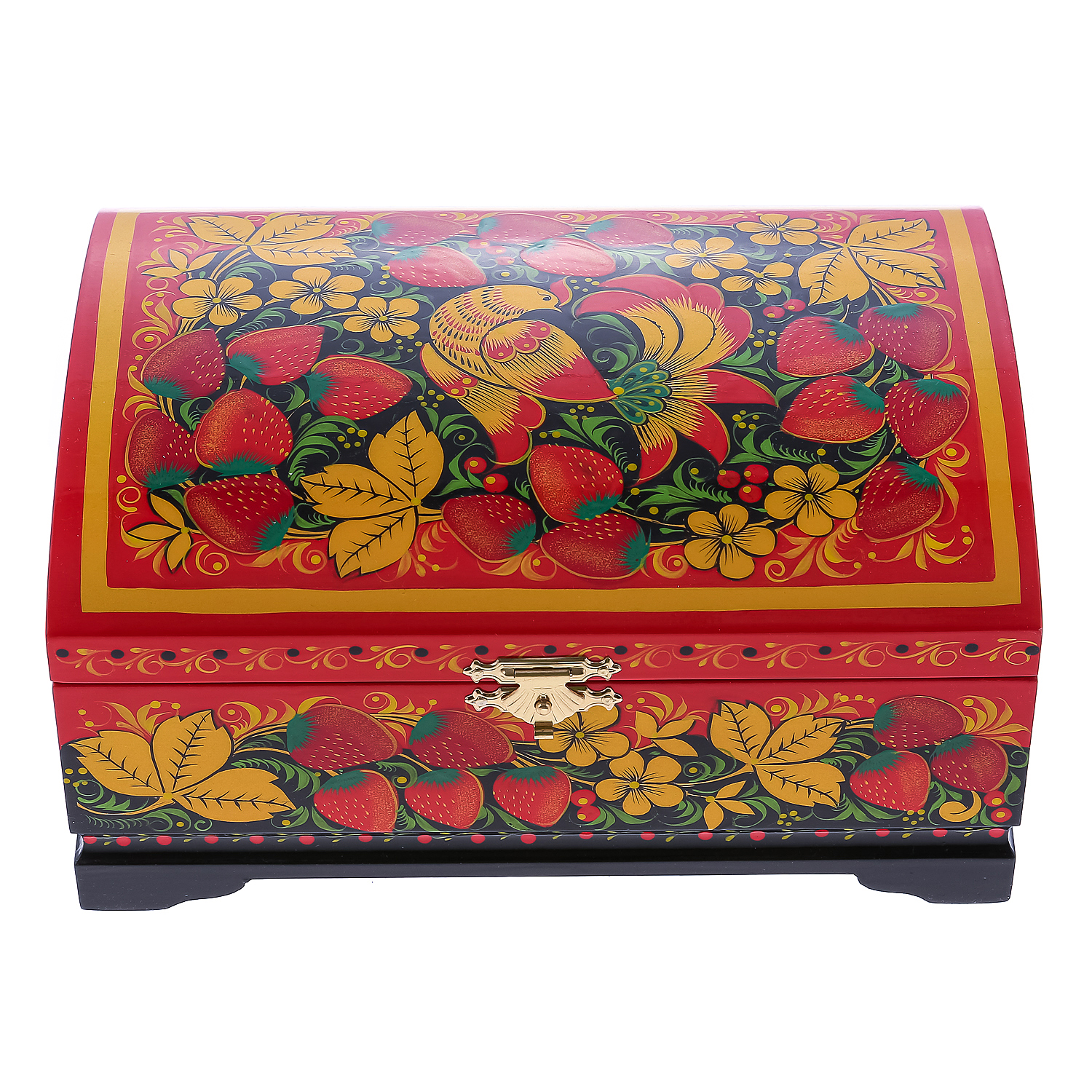 0072750/20*14см Хохлома Шкатулка-сундучок"птица/клубника" красный фон Р21//Р83
