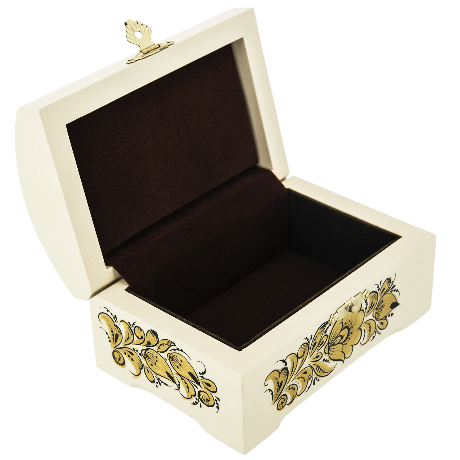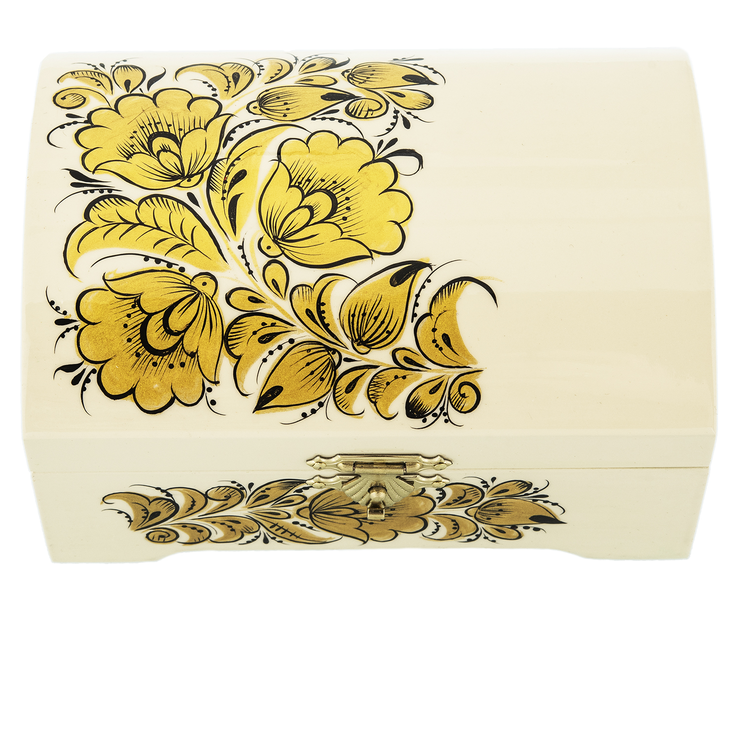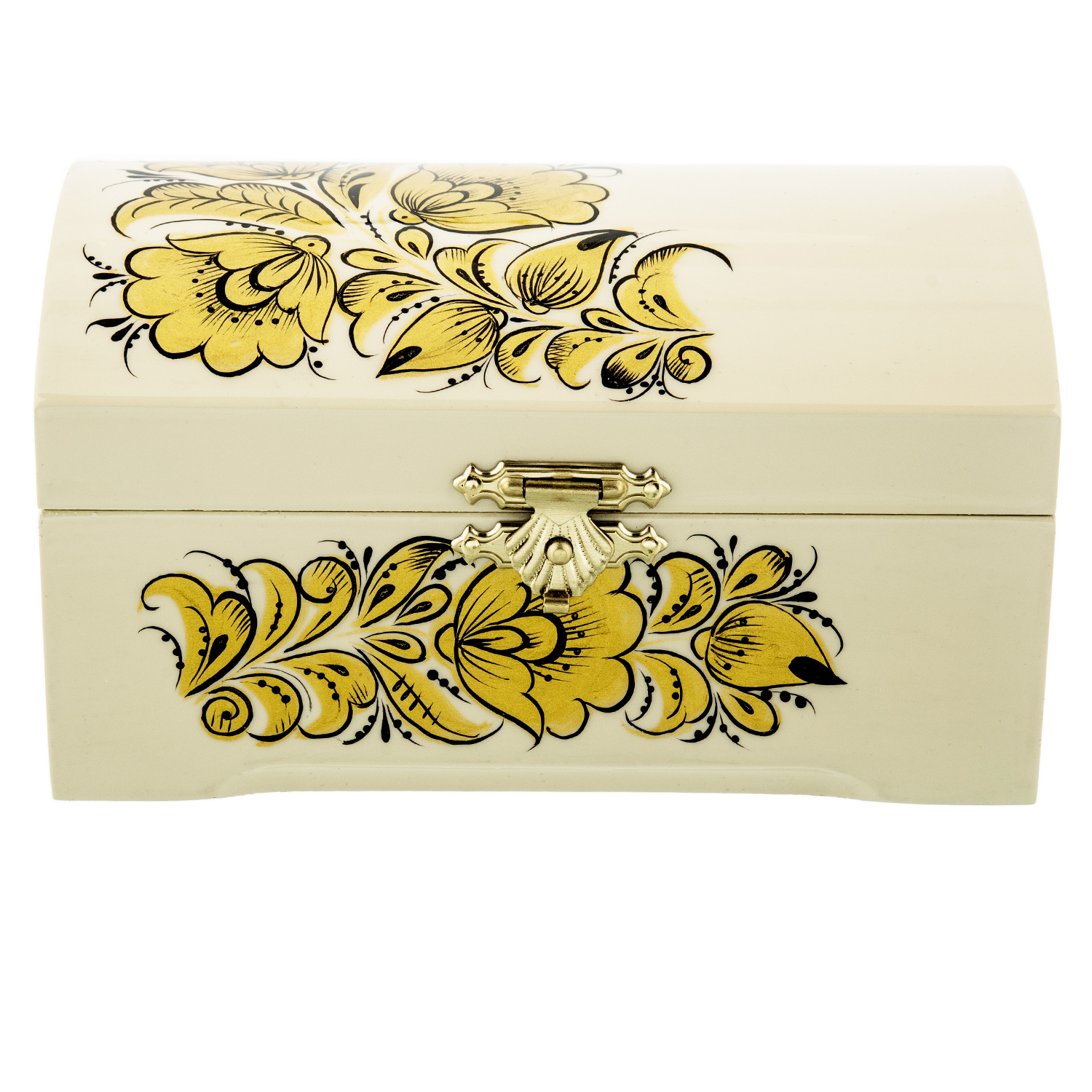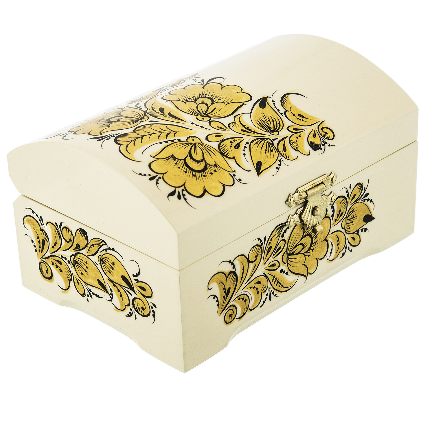 0076977/12*8см Хохлома Шкатулка -сундучок"ЦВЕТЫ ЗОЛОТЫЕ" белая фон Р 2