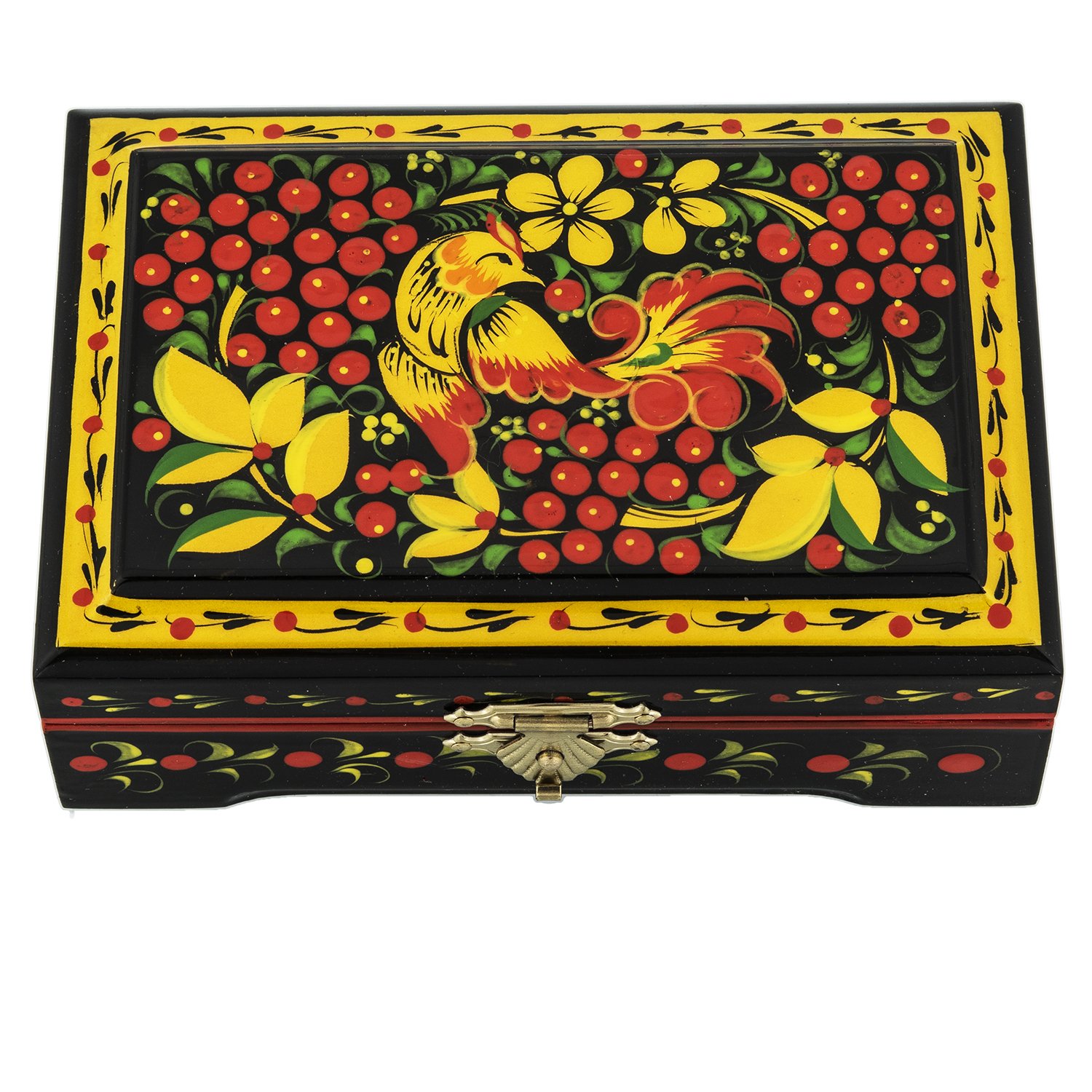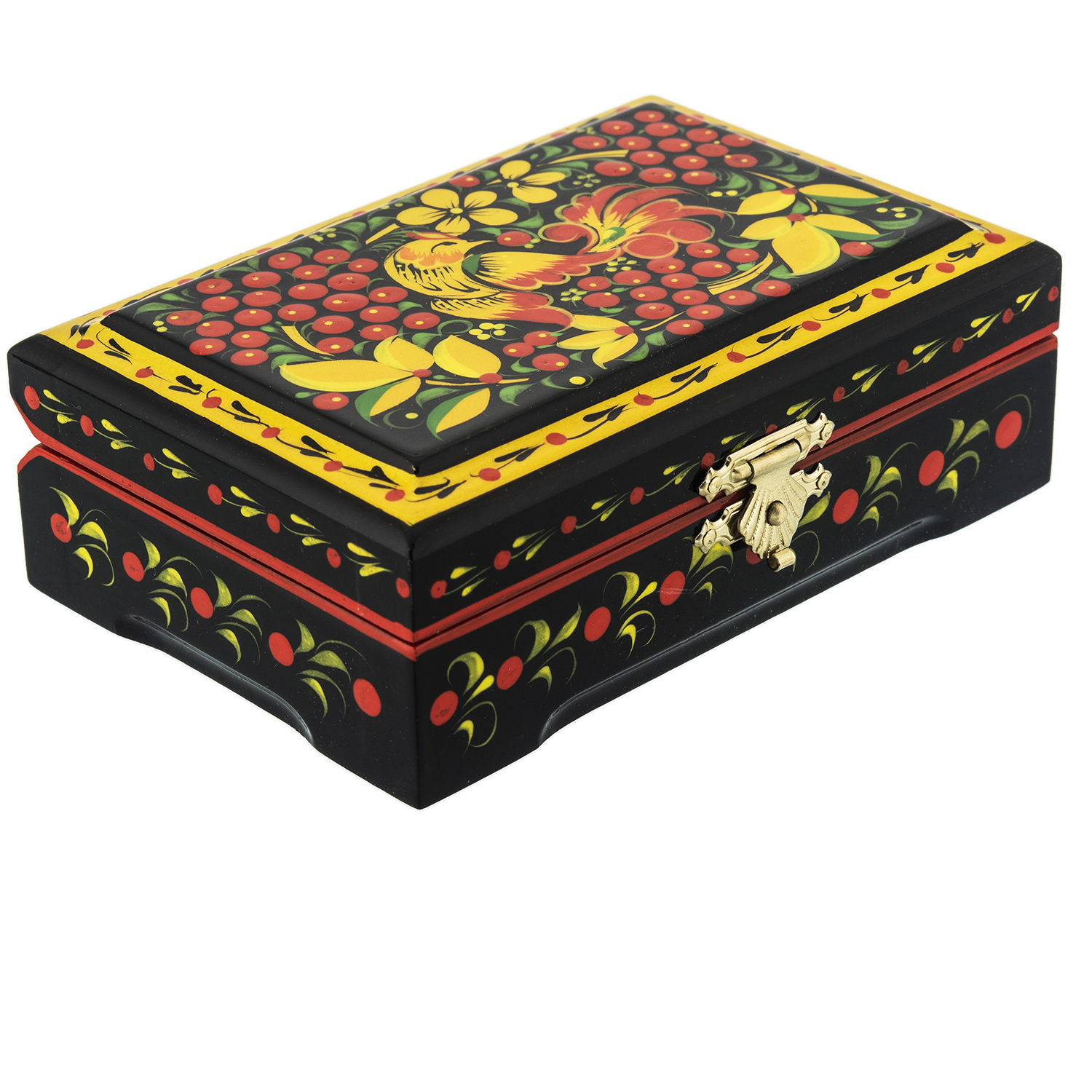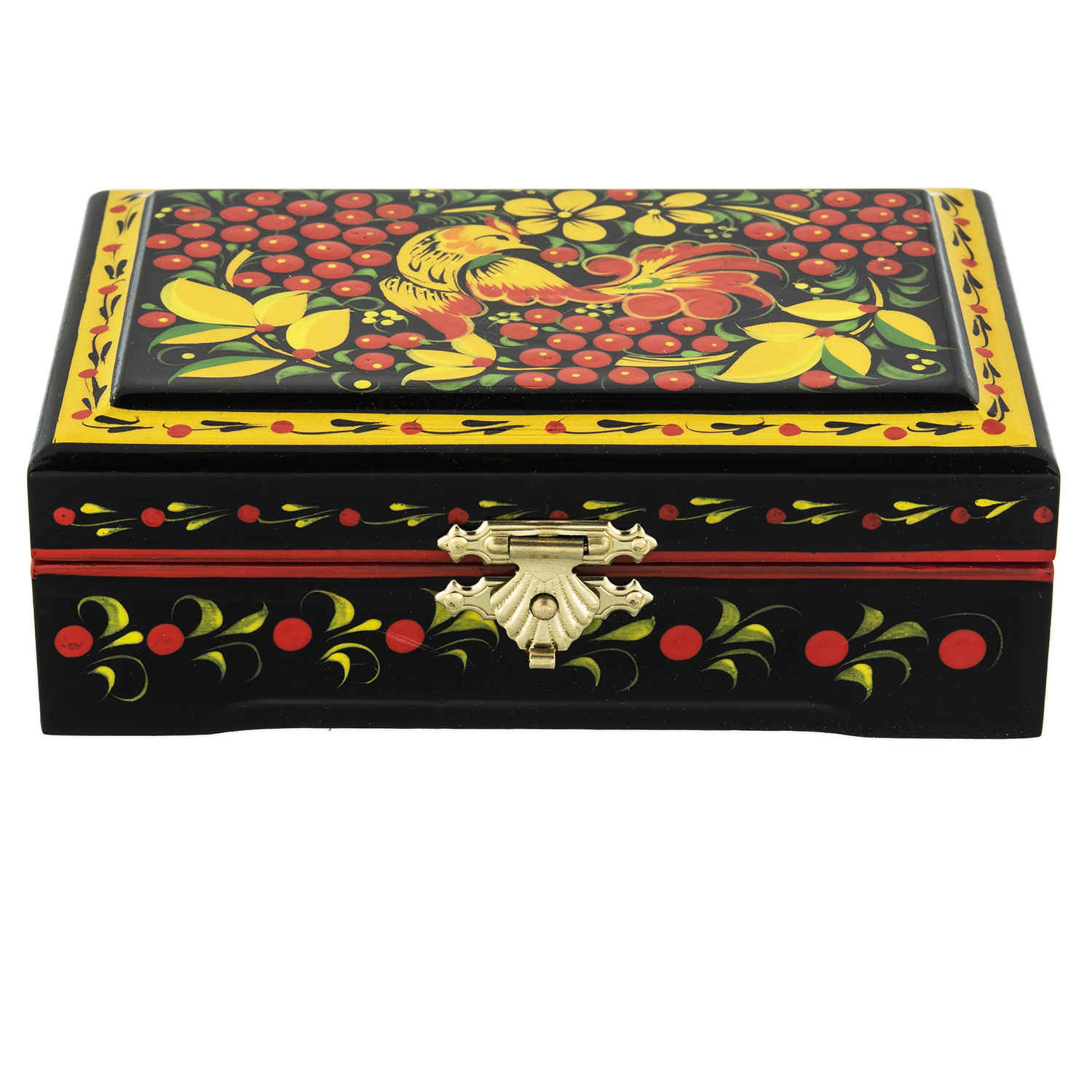 0074837/12*8см Хохлома Шкатулка прямоугольнаяПТИЦА/МАЛИНА12*8*3 см Н0004