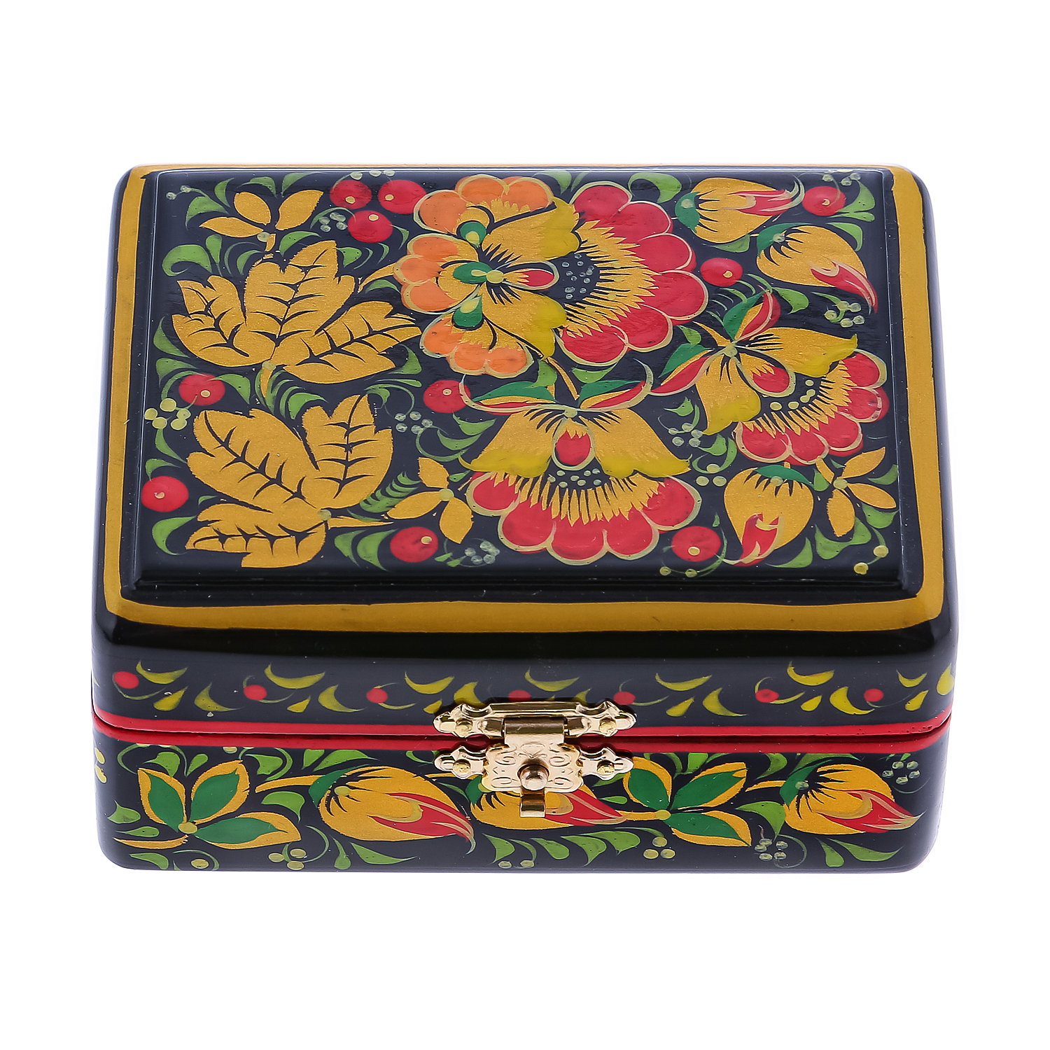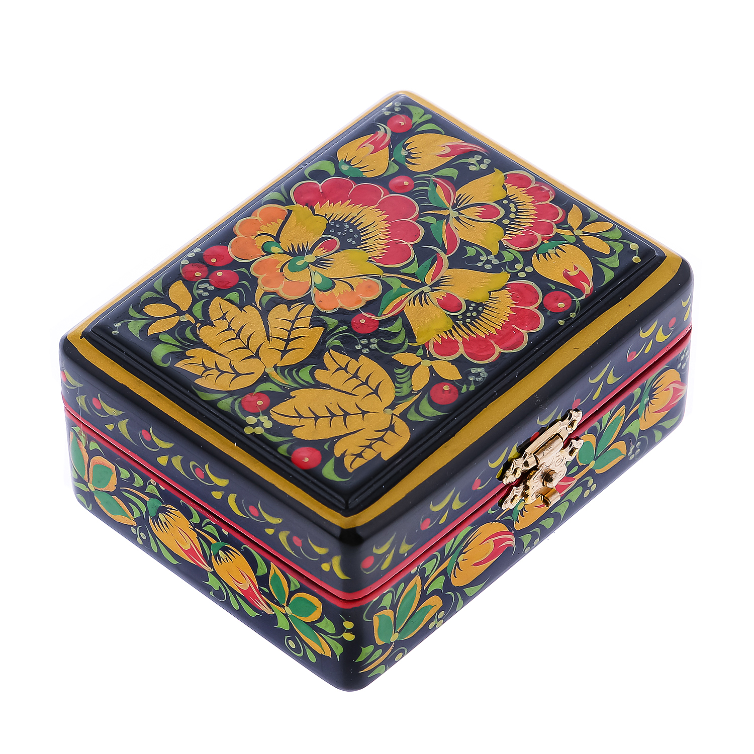 67872/9*7см Хохлома Шкатулка ЦВЕТЫ на черном Р26 Н 0183