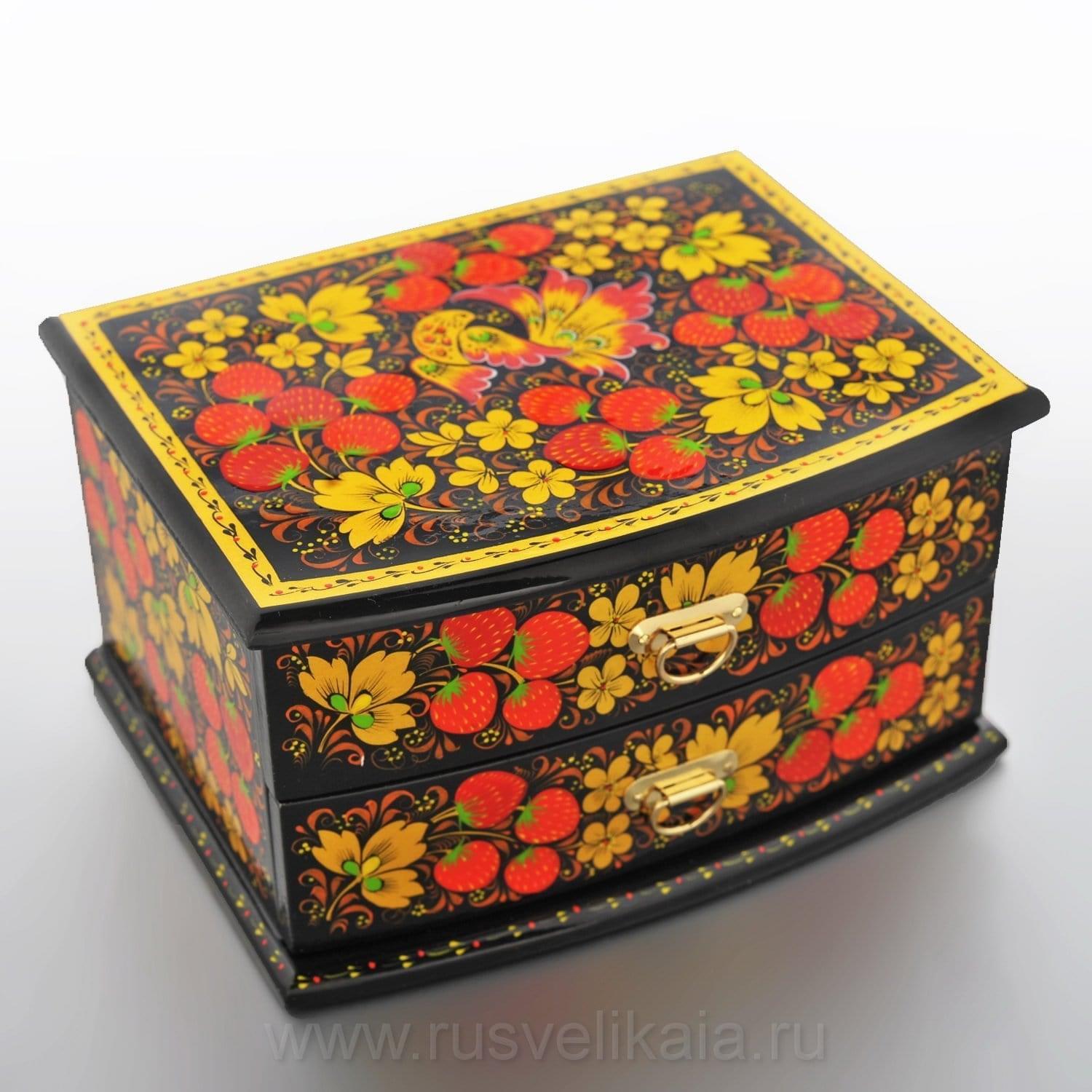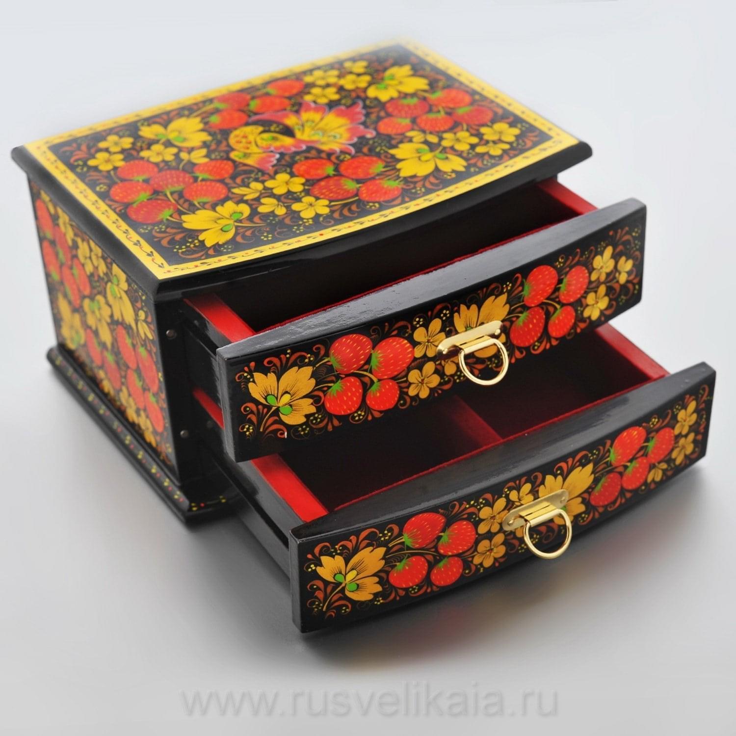 0020719/17*13 Хохлома Шкатулка с выдвижными ящиками в ассортименте (3 ОТДЕЛЕНИЯ) ....Извините, товар отсутствует