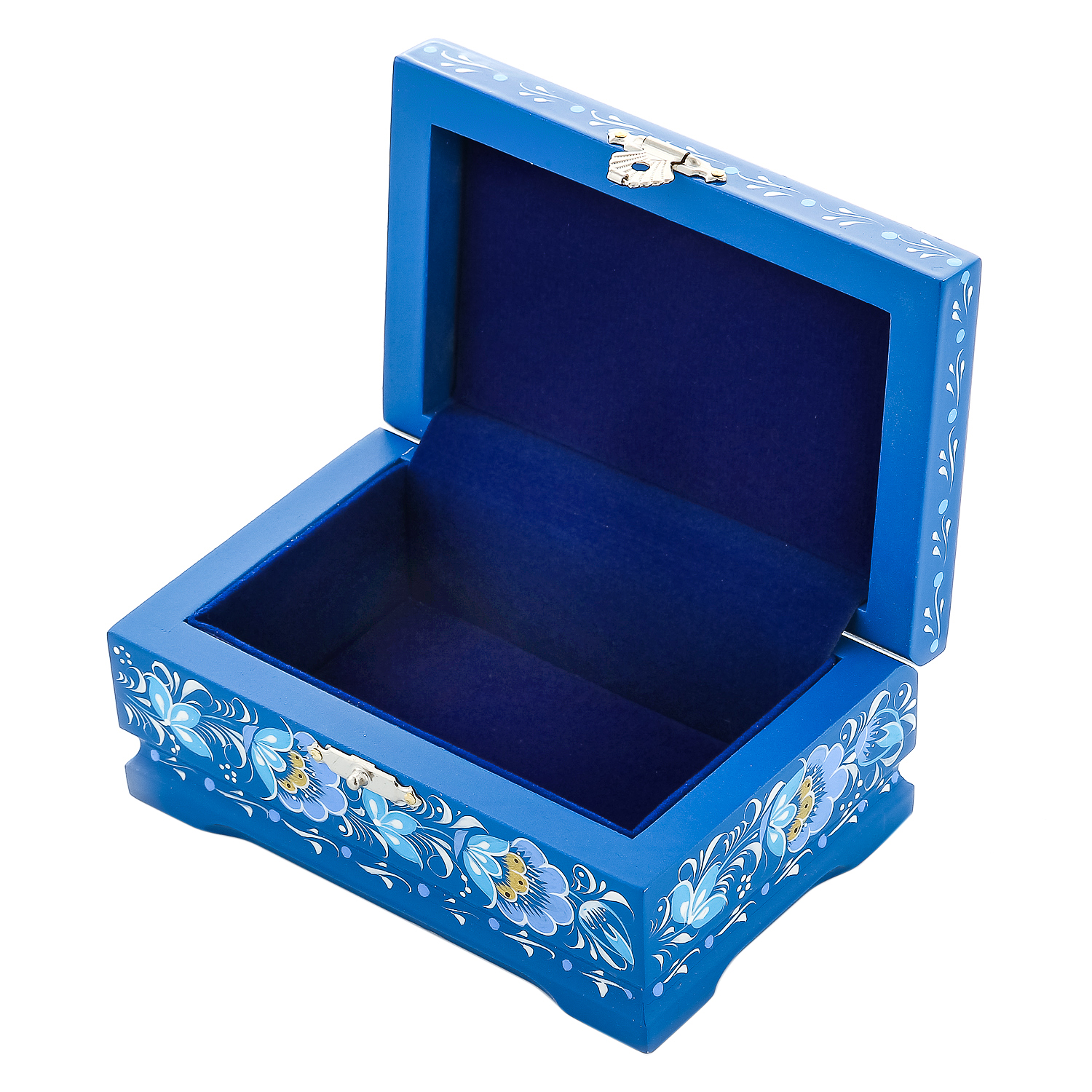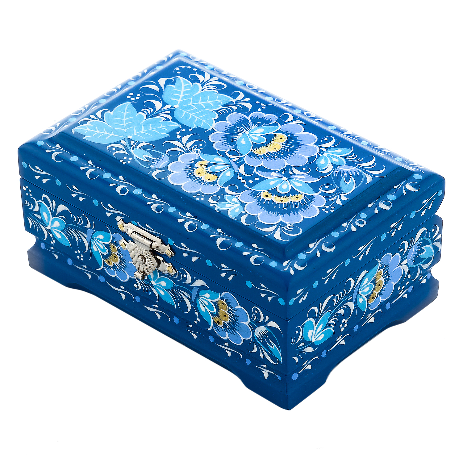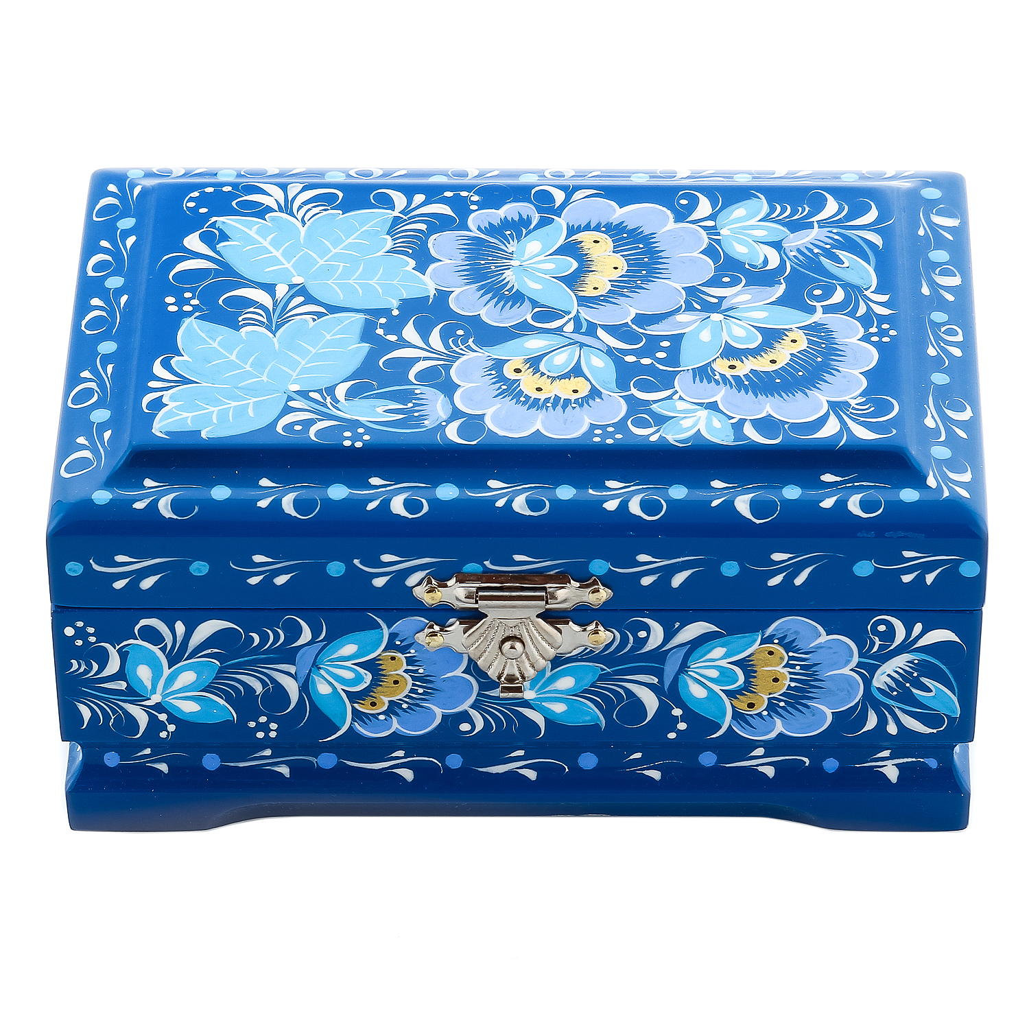 0069965/12*8см-ЗИМА Хохлома Шкатулка ЗИМА/ЦВЕТЫ син Н0003