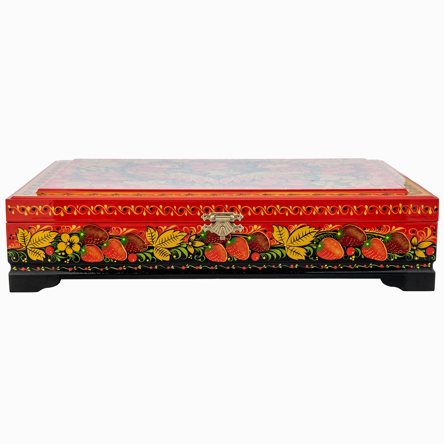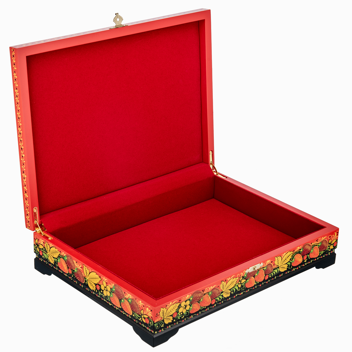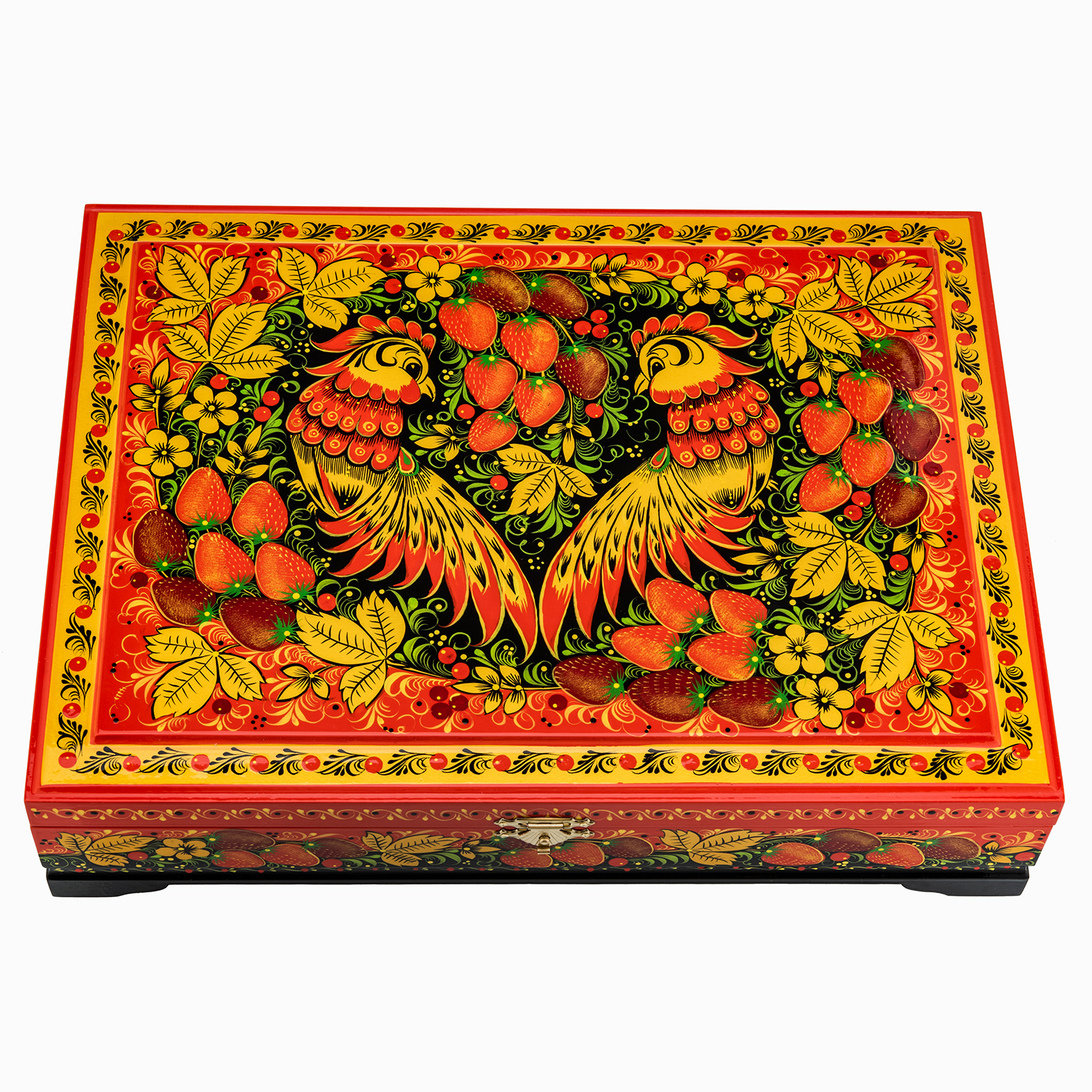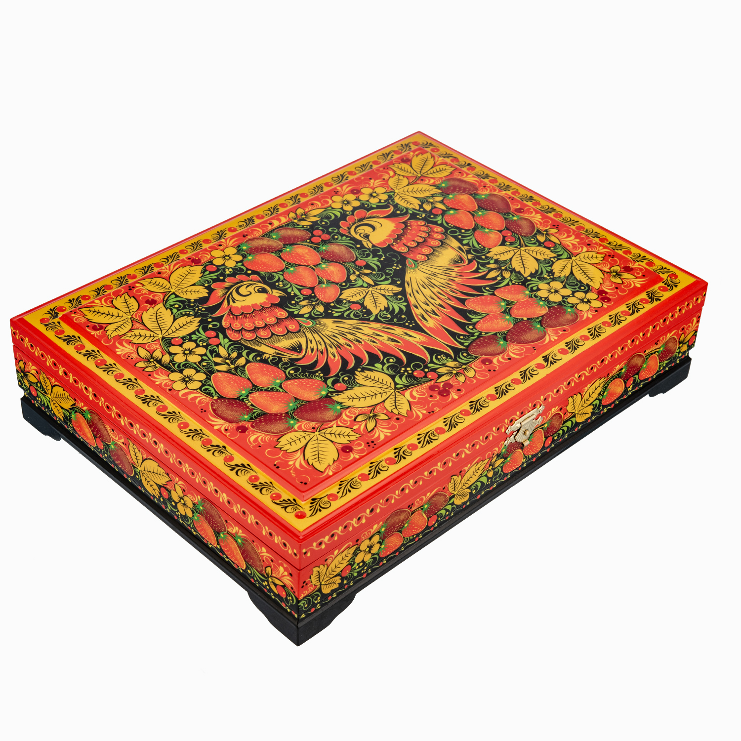 0078405 Хохлома Шкатулка для документов на красном "ПТИЦЫ" 33*24см  Р 15