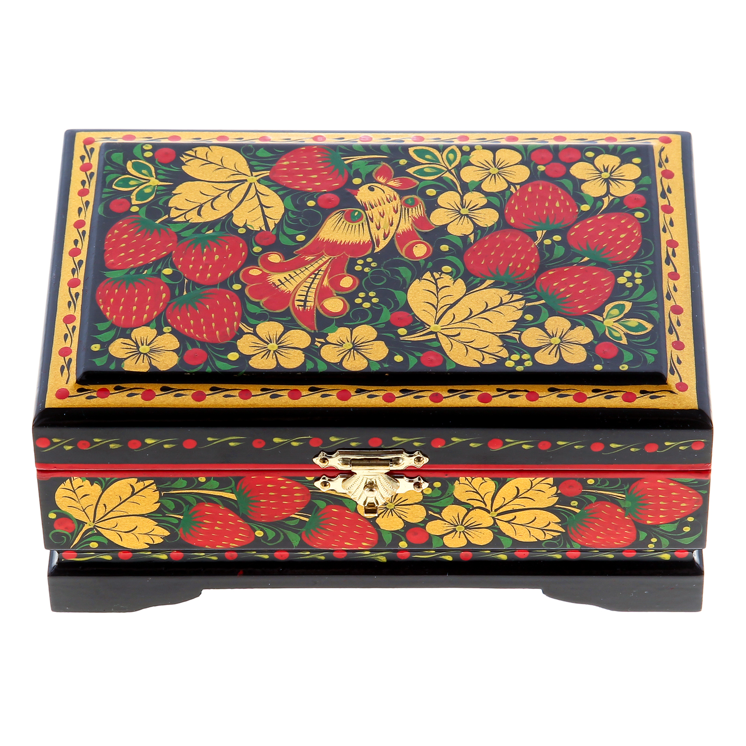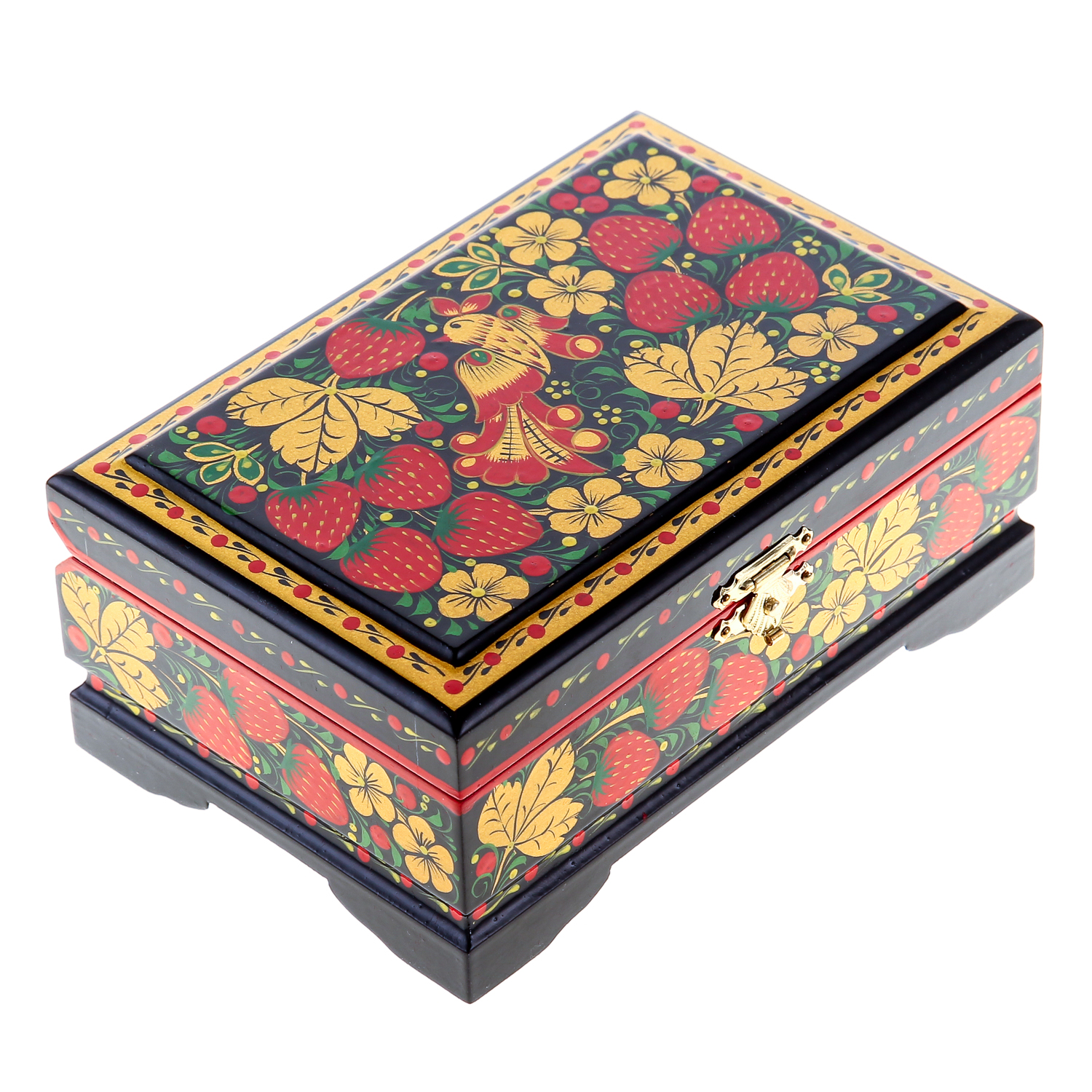 6691/14*9 Хохлома Шкатулка ПТИЦА клубника Р3