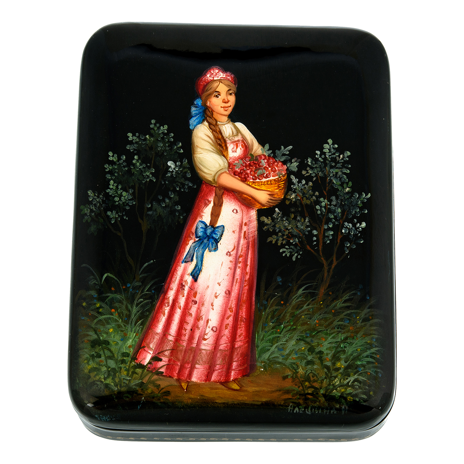 Шкатулка с художественной росписью "Девочка с лукошком"
